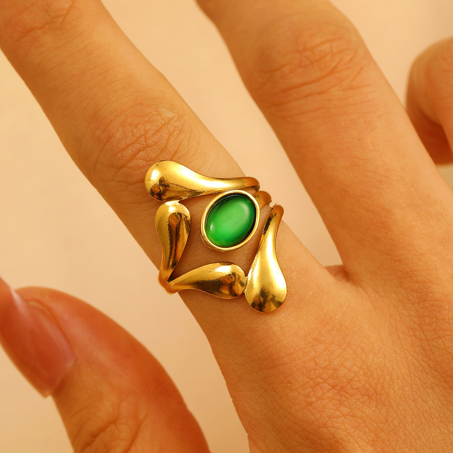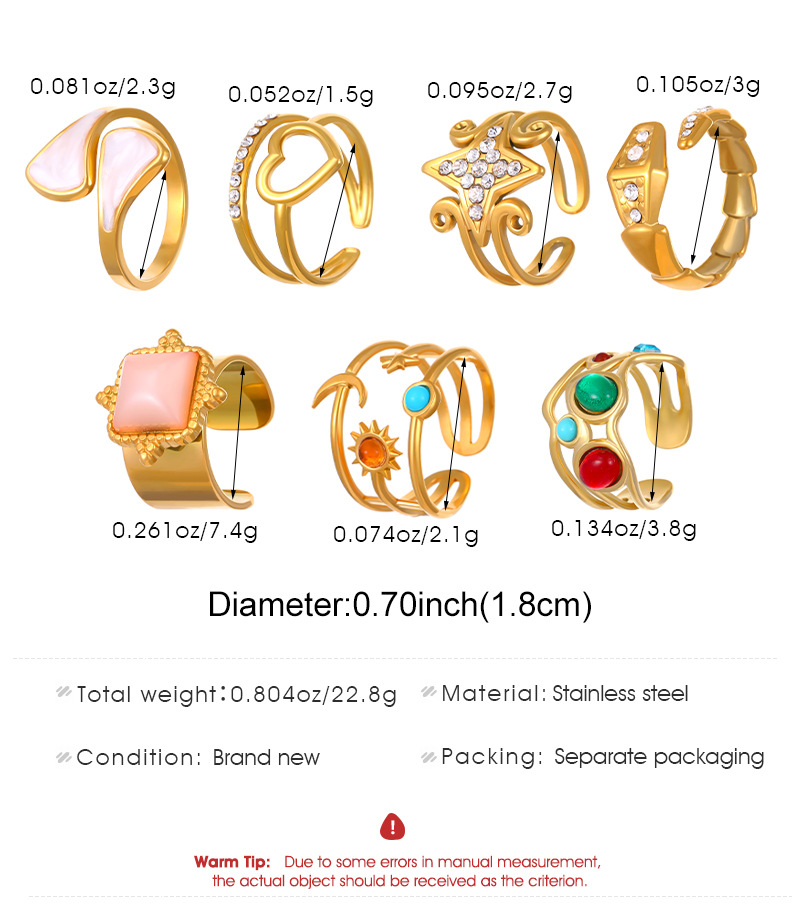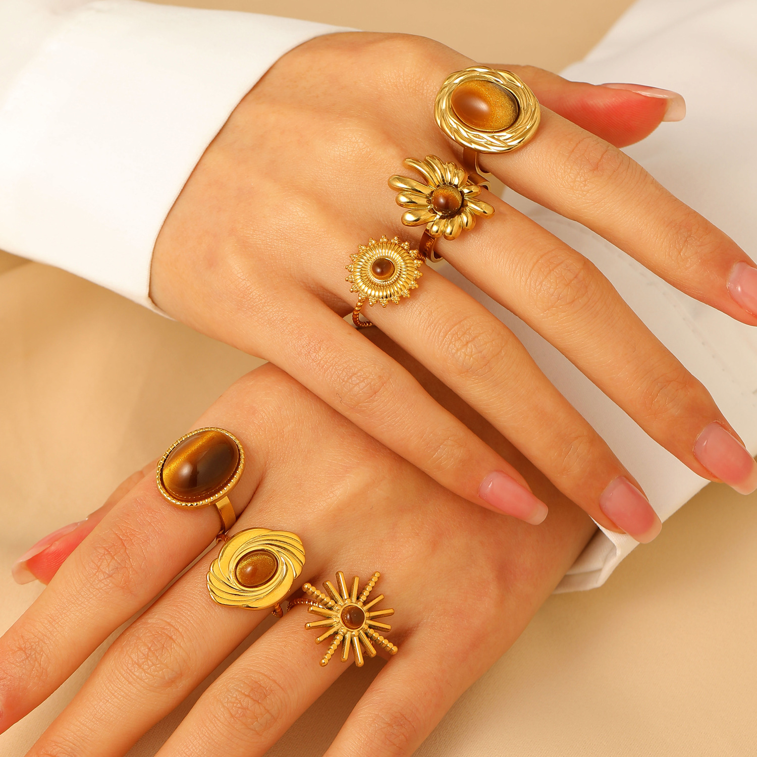 Color: 08ins style irregular tiger eye stone open ring 18k real gold yunduo 6080