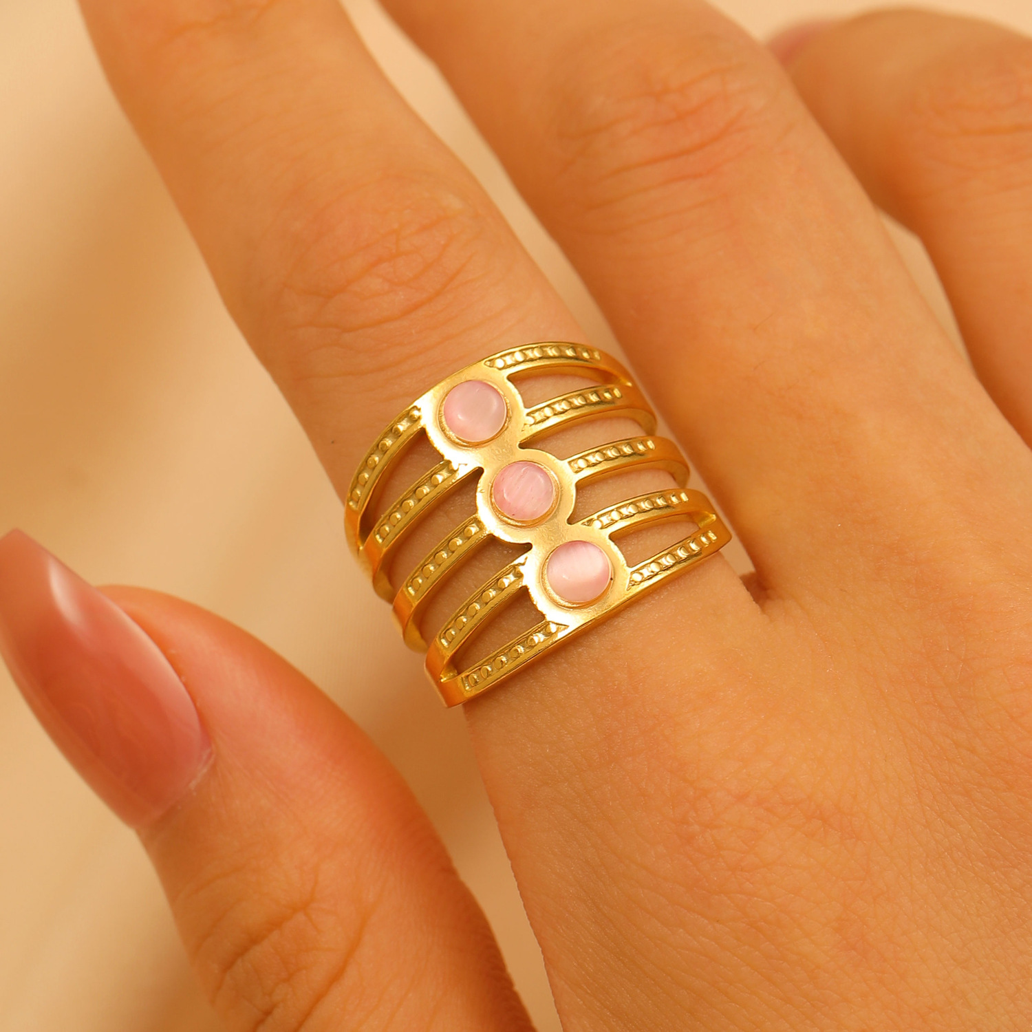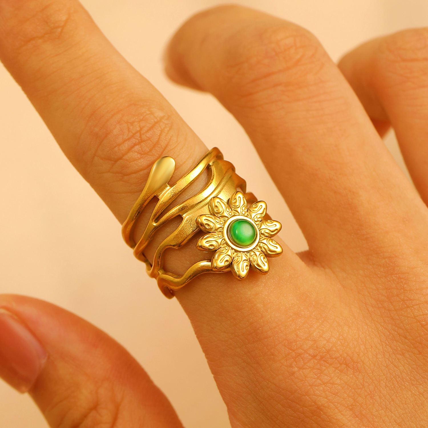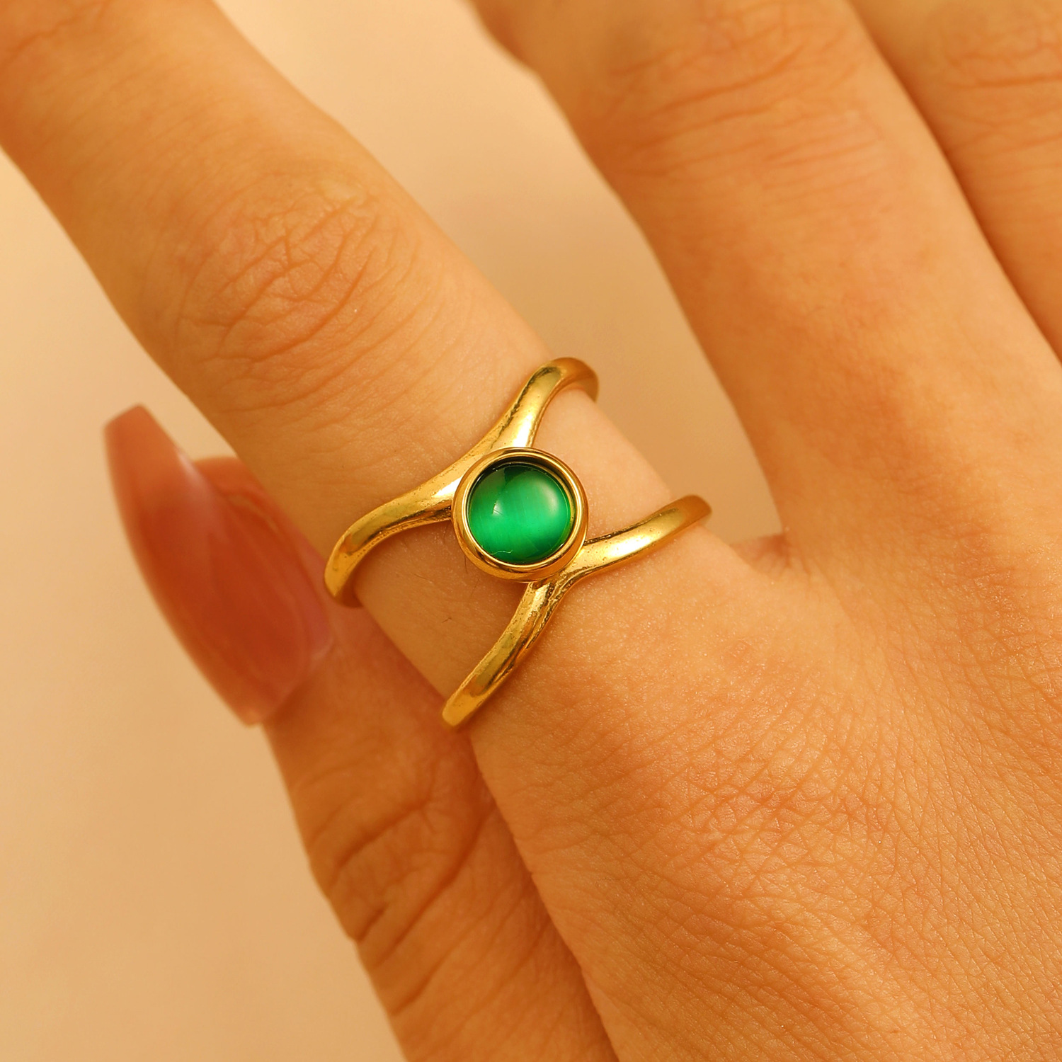 Color: 08ins style irregular tiger eye stone open ring 18k real gold yunduo 6080