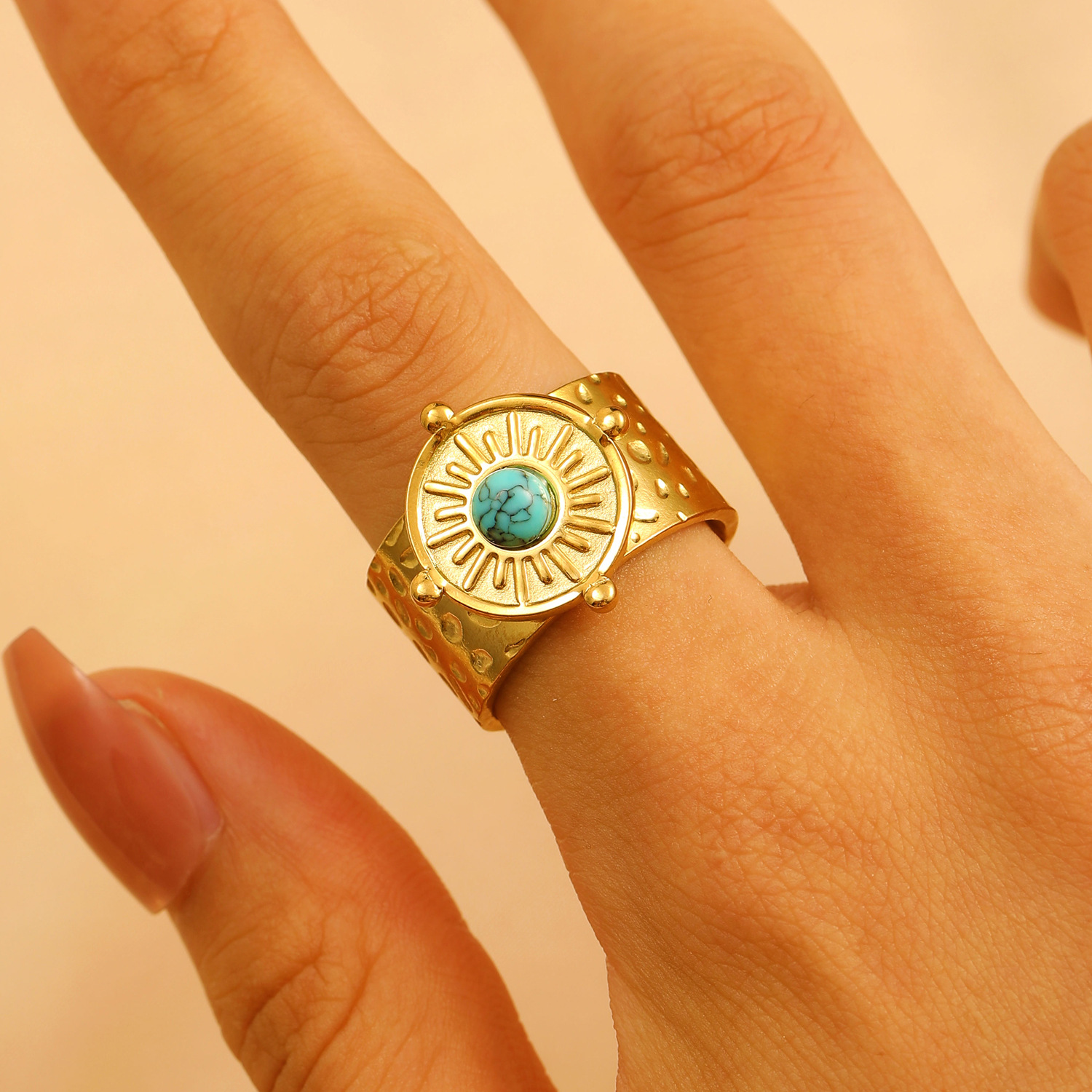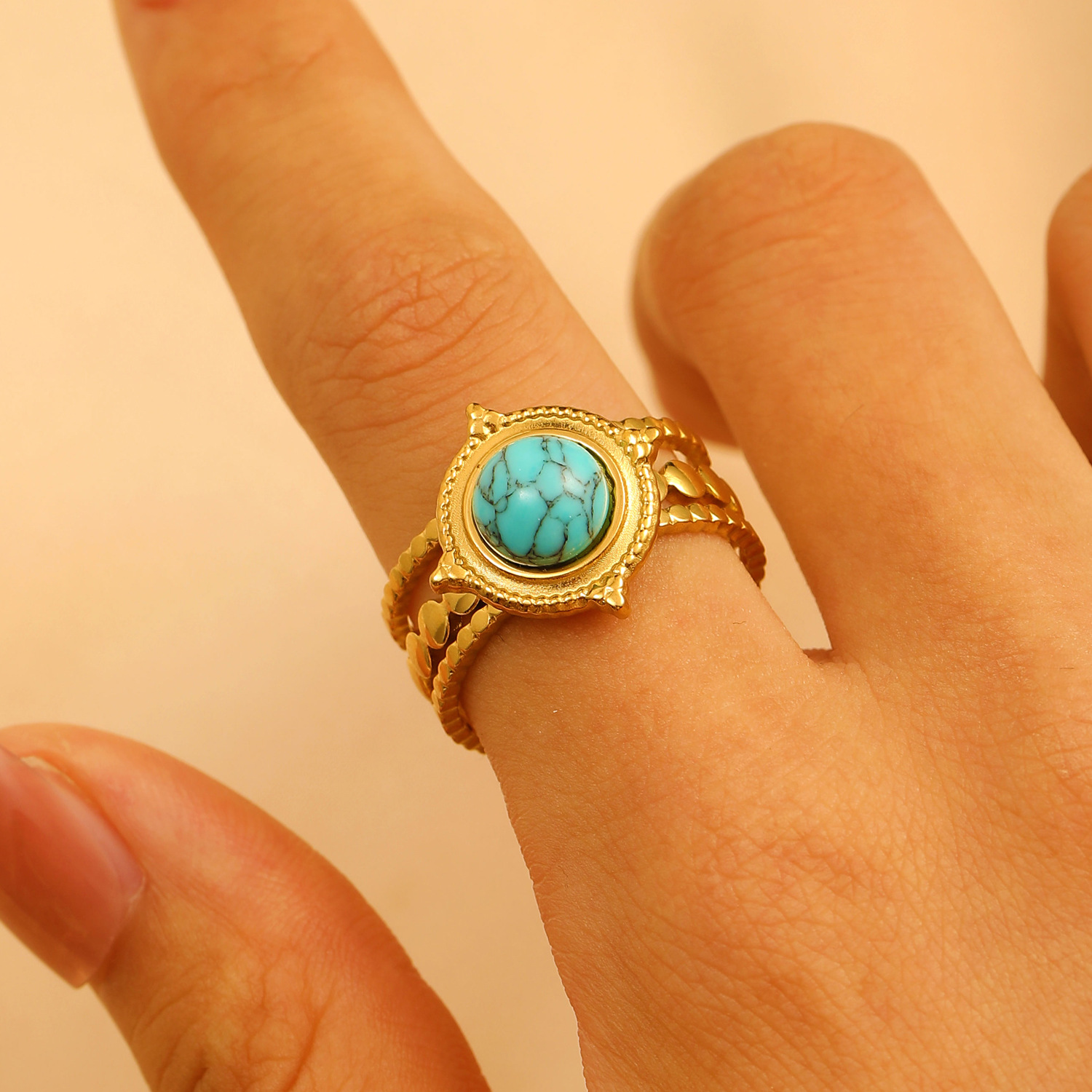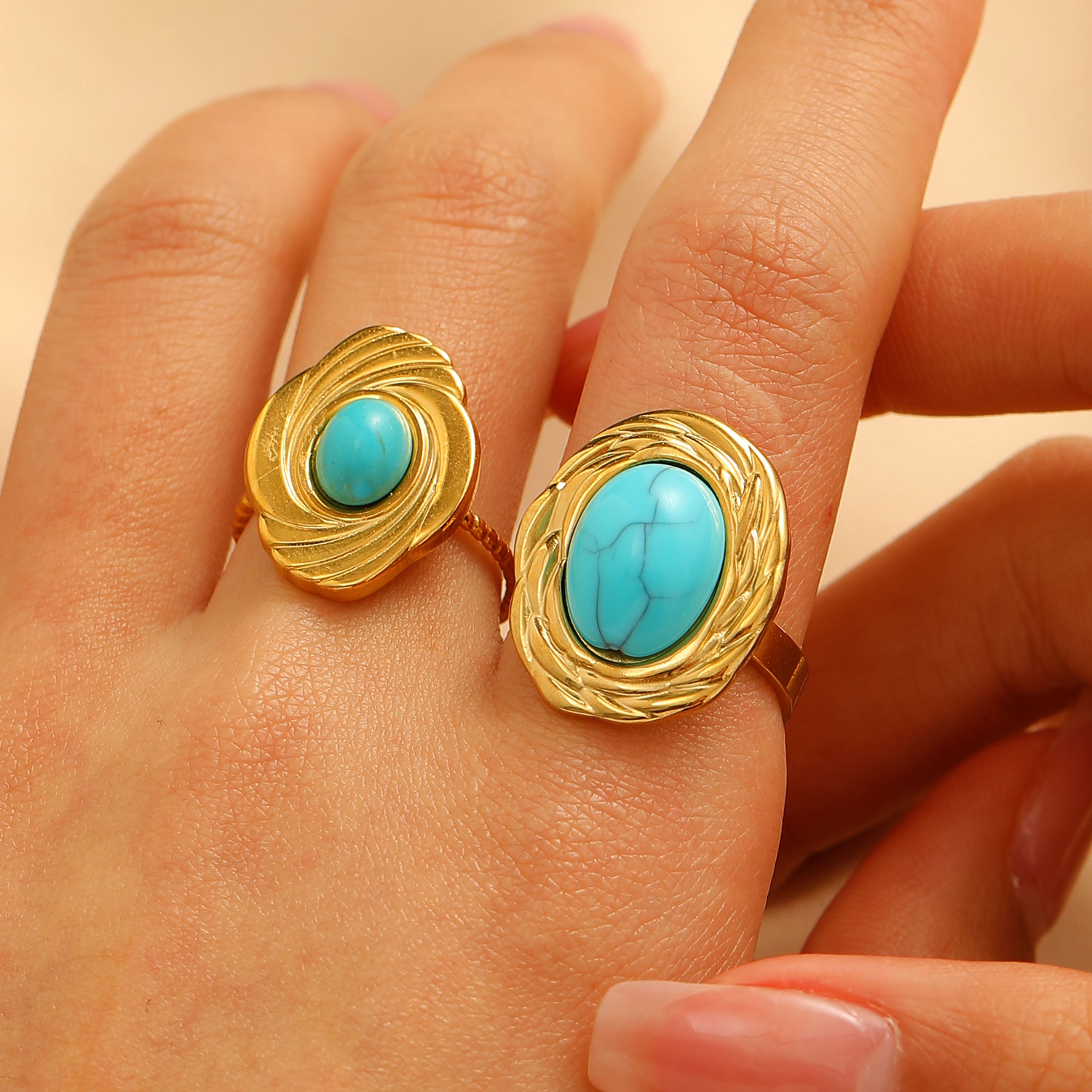 Stainless steel ring: Turquoise ring, maillard style tiger eye ring, stainless steel colored diamond ring