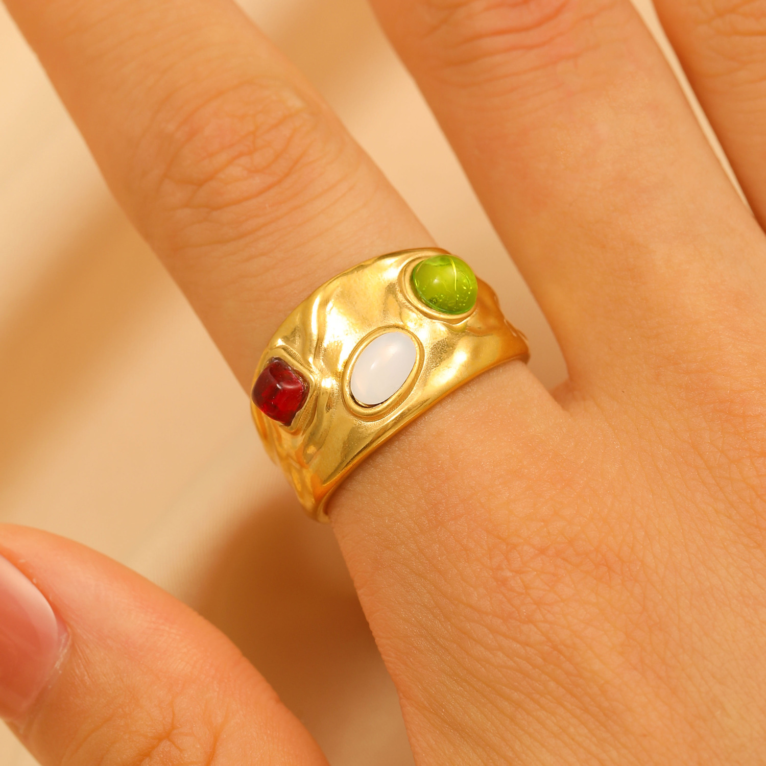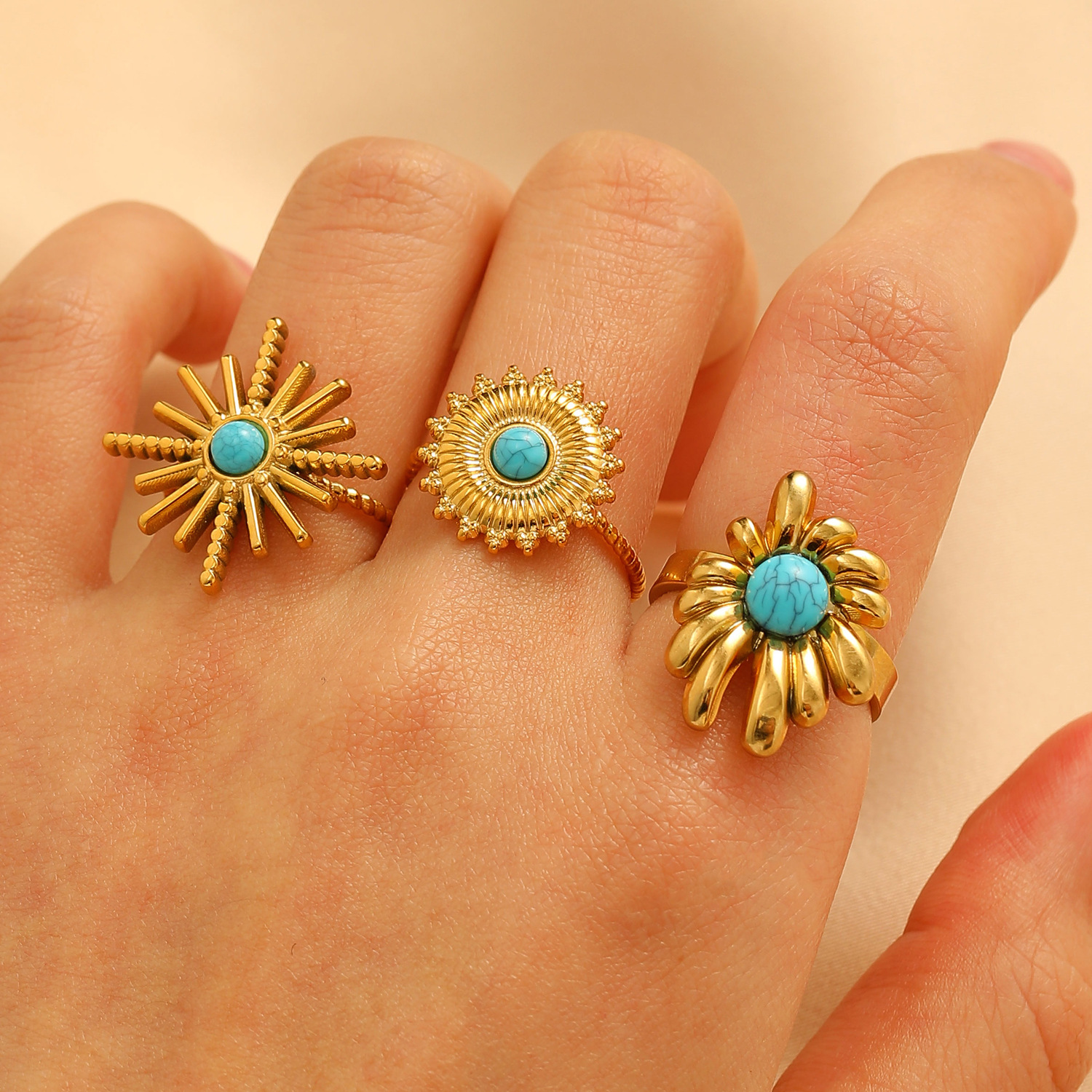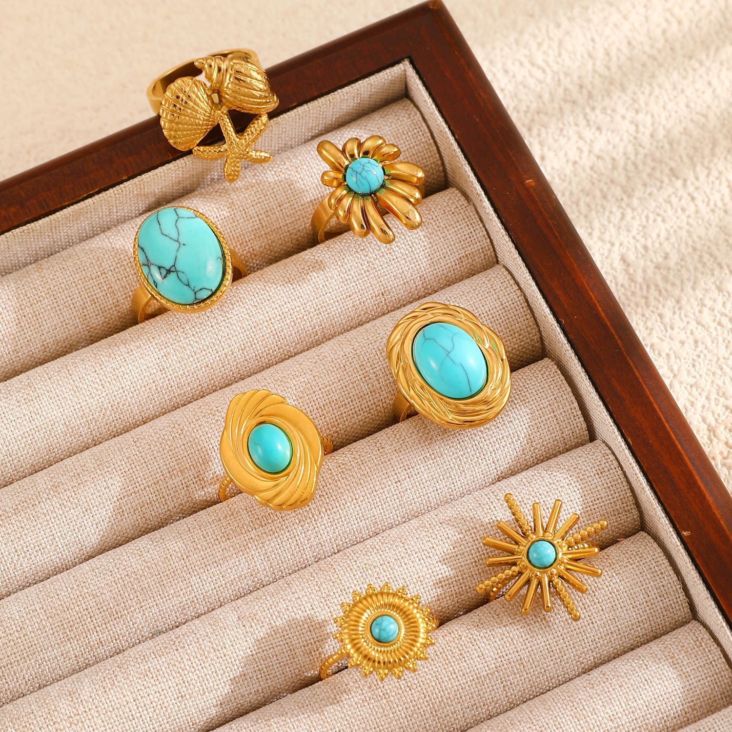 Stainless steel ring: Turquoise ring, maillard style tiger eye ring, stainless steel colored diamond ring