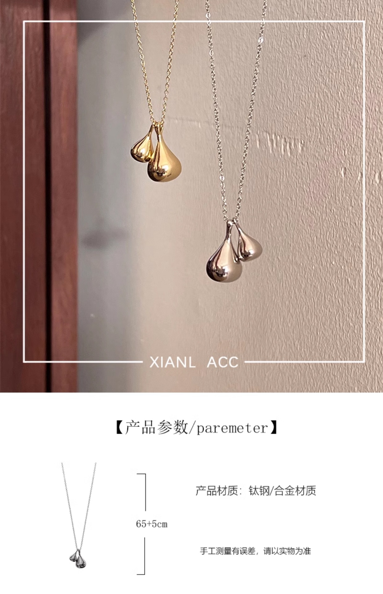 Color: Gold size water drop necklace