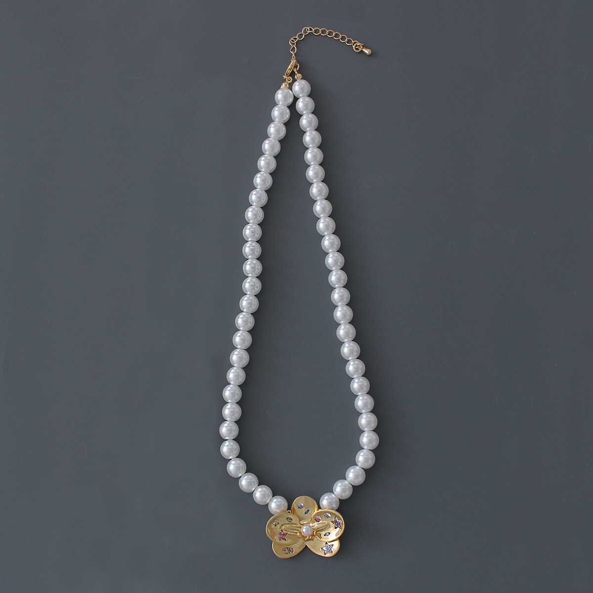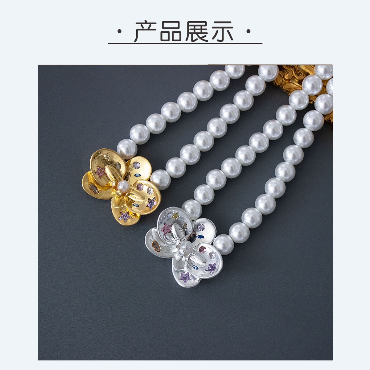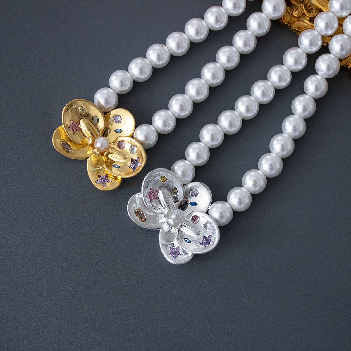 CB Family Zircon Flower Pearl Necklace Spring New Style Simple Elegant High-Level Imitation Family Pearl Clavicle Chain