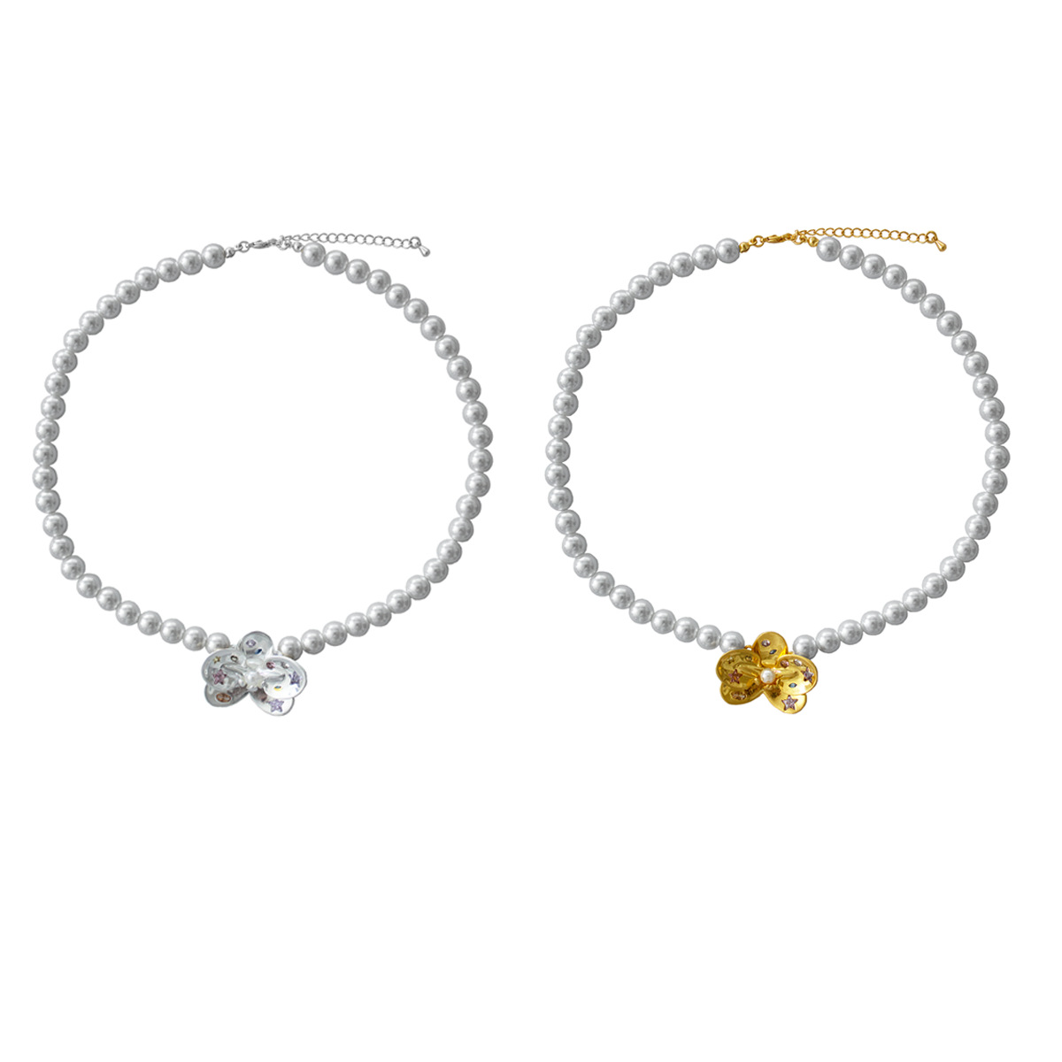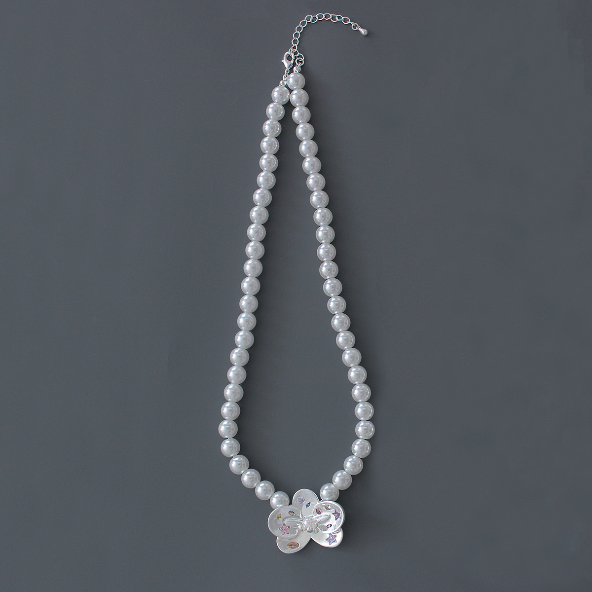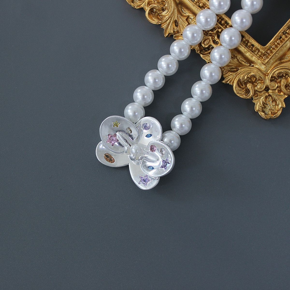 CB Family Zircon Flower Pearl Necklace Spring New Style Simple Elegant High-Level Imitation Family Pearl Clavicle Chain