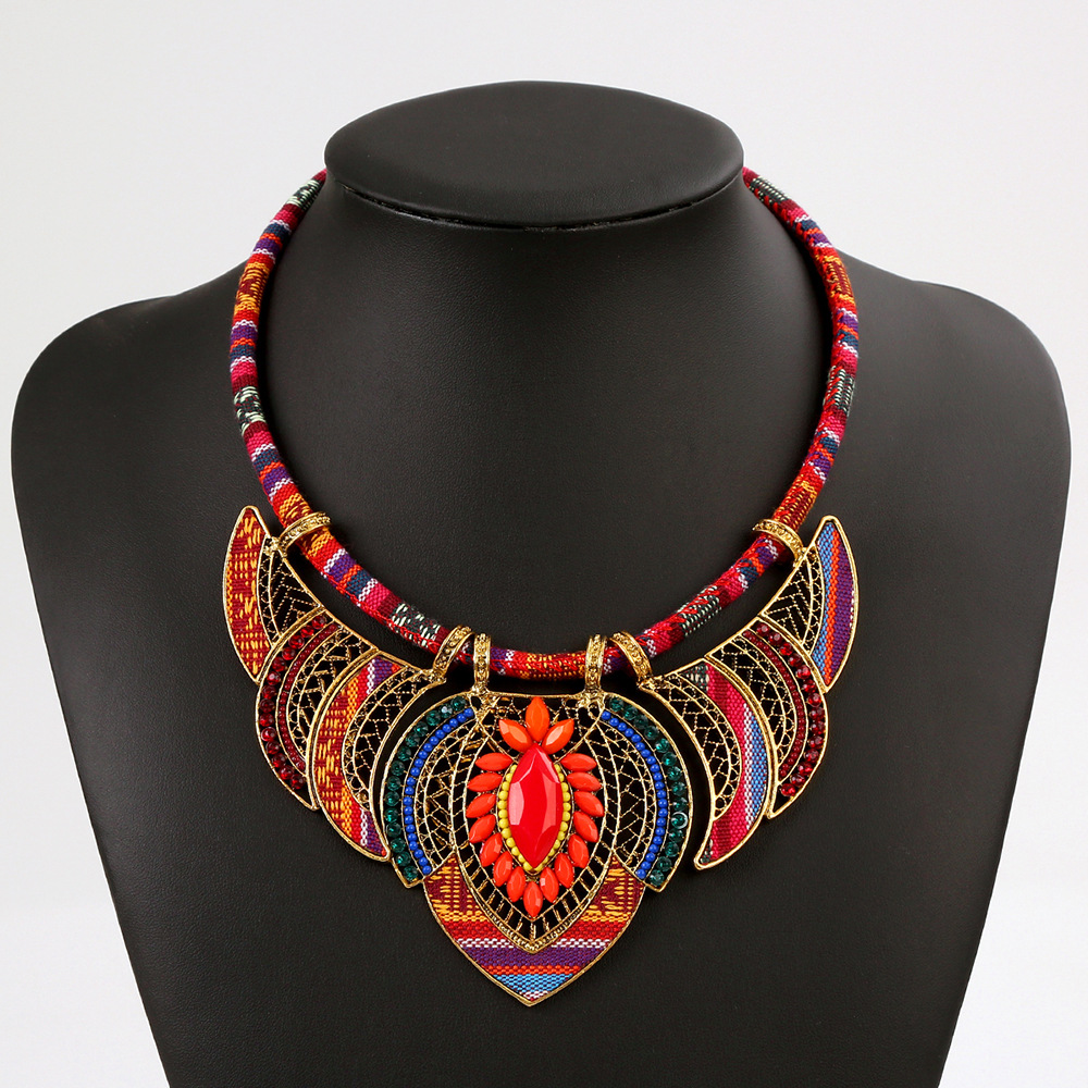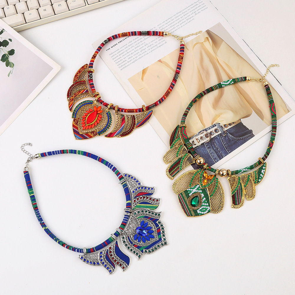 European and American Cross-border LAZADA Ethnic Style Necklace Color Rope and Diamond Bohemian Necklace Women's Fashion Jewelry