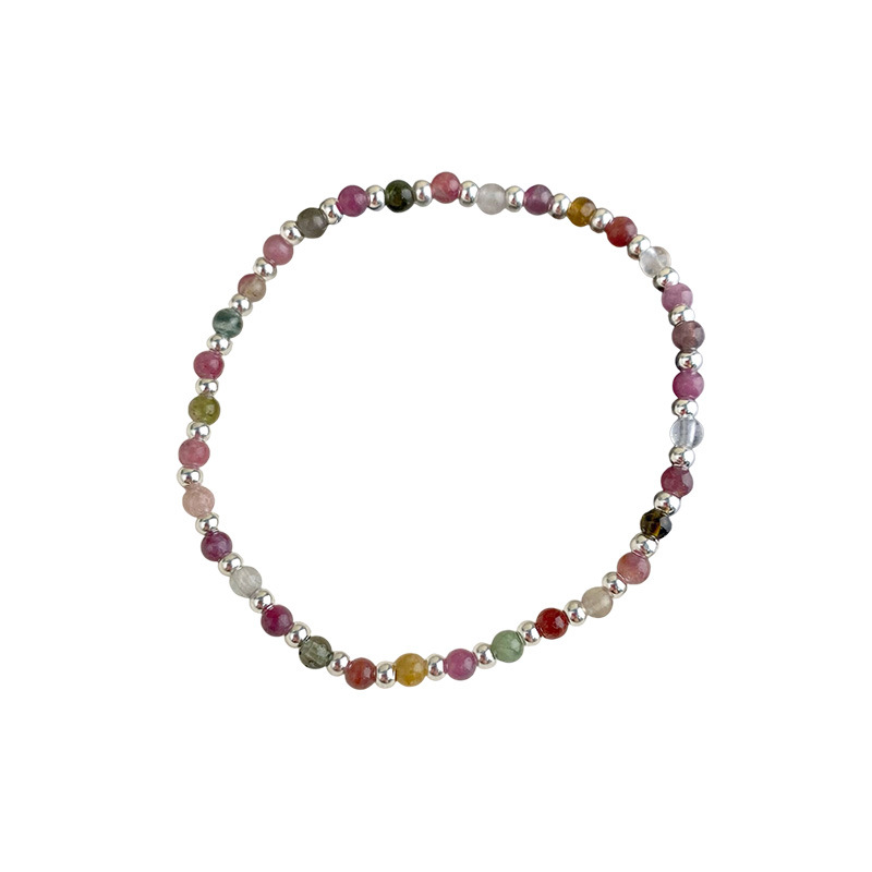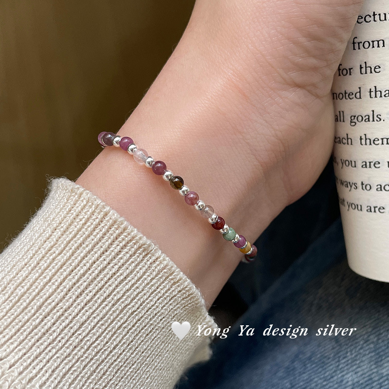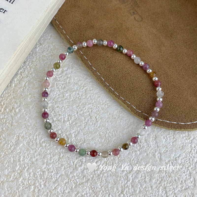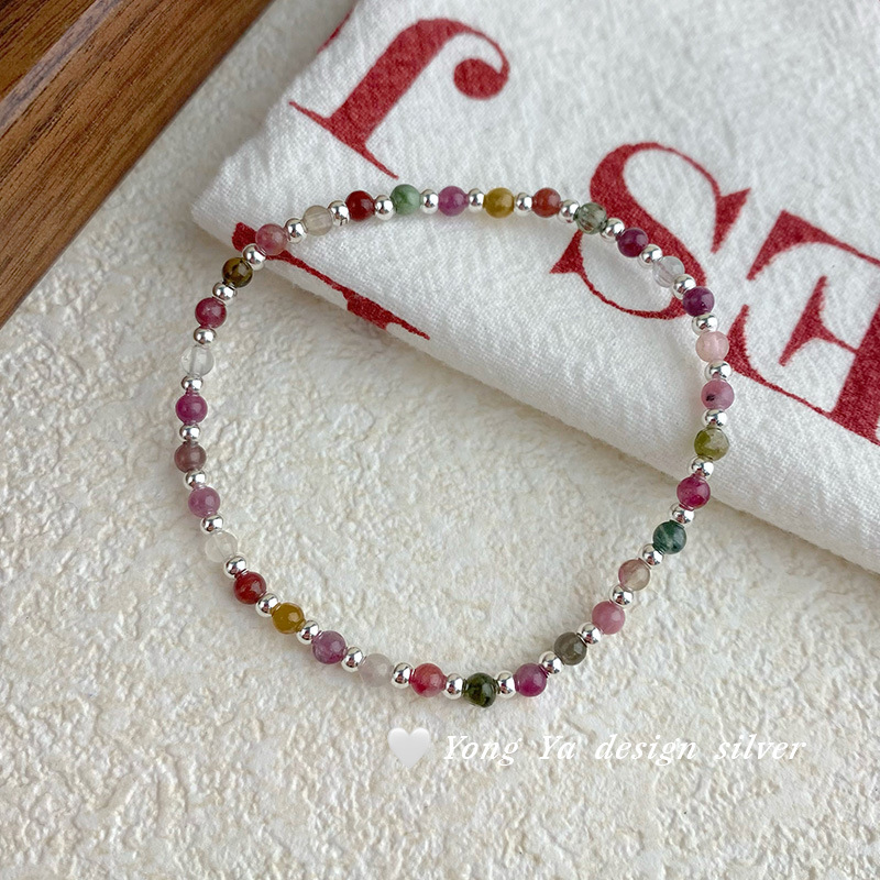 S999 Foot Silver Tourmaline Bracelet Colorful Dopamine Small Fresh Artistic Temperament Girl High-end Feeling Bracelet Generation Hair