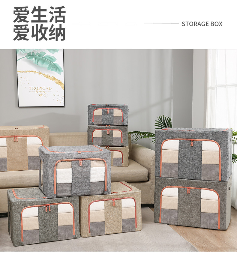 Order Production | Cotton and Linen Clothes Storage Box Household Folding Fabric Steel Frame Box Moisture-Proof and Dust-Proof Quilt Storage
