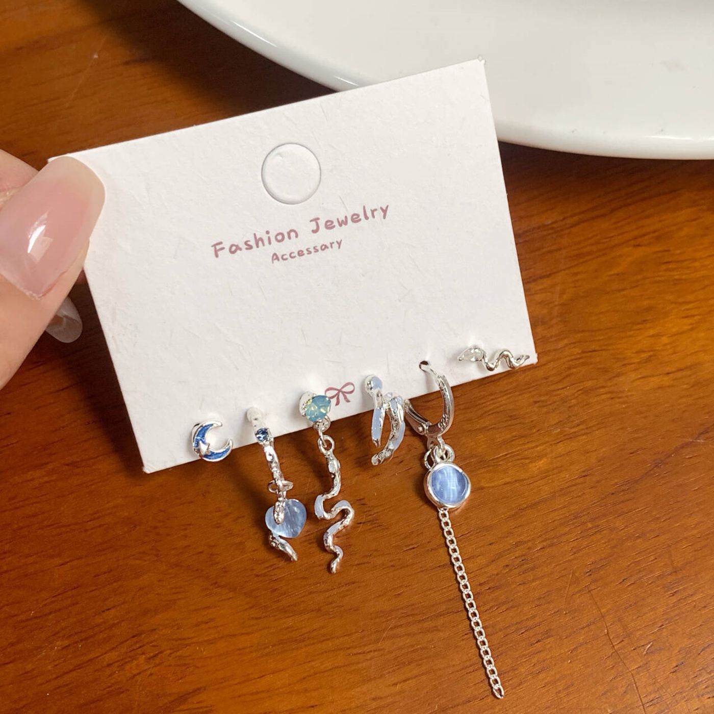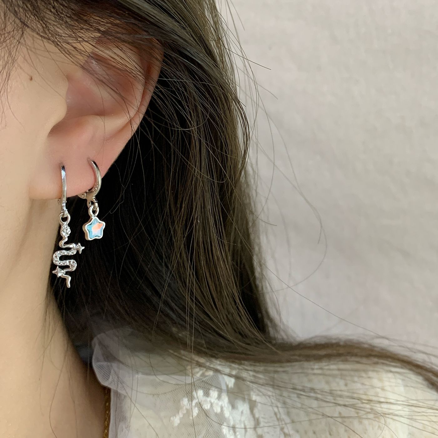 New Aurora Magic Blue Snake Ear Buckle suit Women's Silver Needle Irregular Distinctive Earrings Sweet Cool Minimalist Earrings