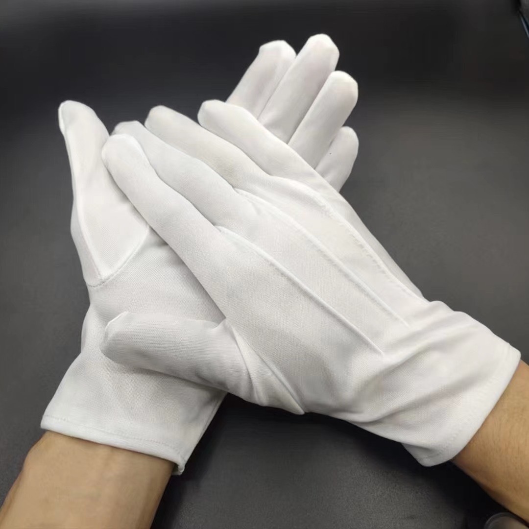 White three-tendon gloves military training performance command cotton gloves jewelry text play with buckle MC homework etiquette gloves