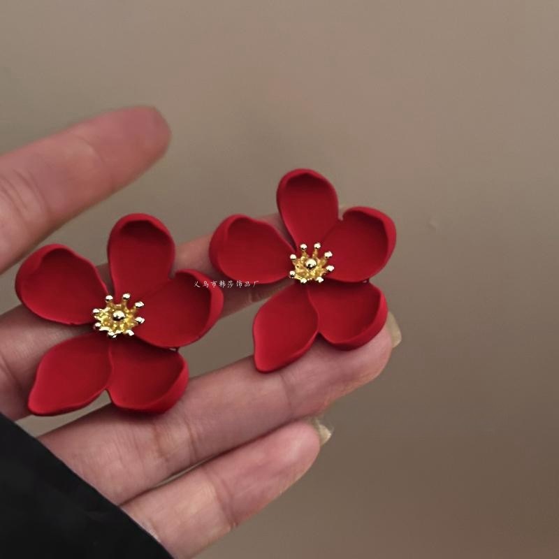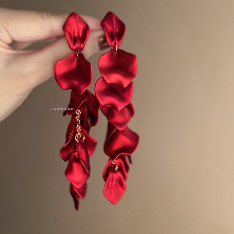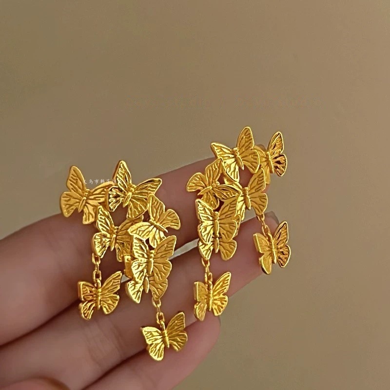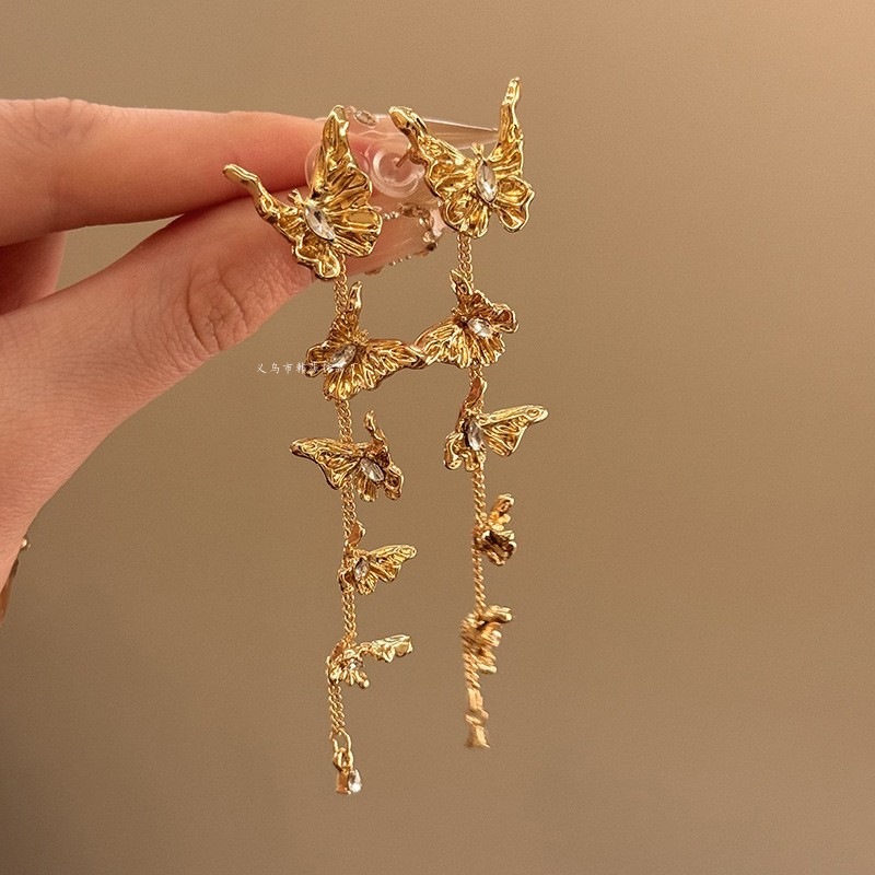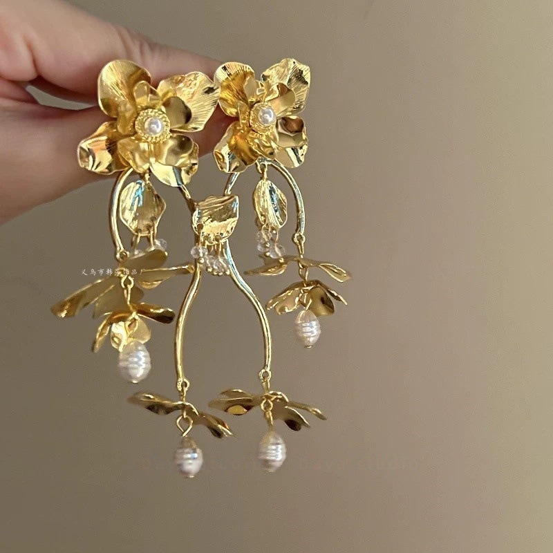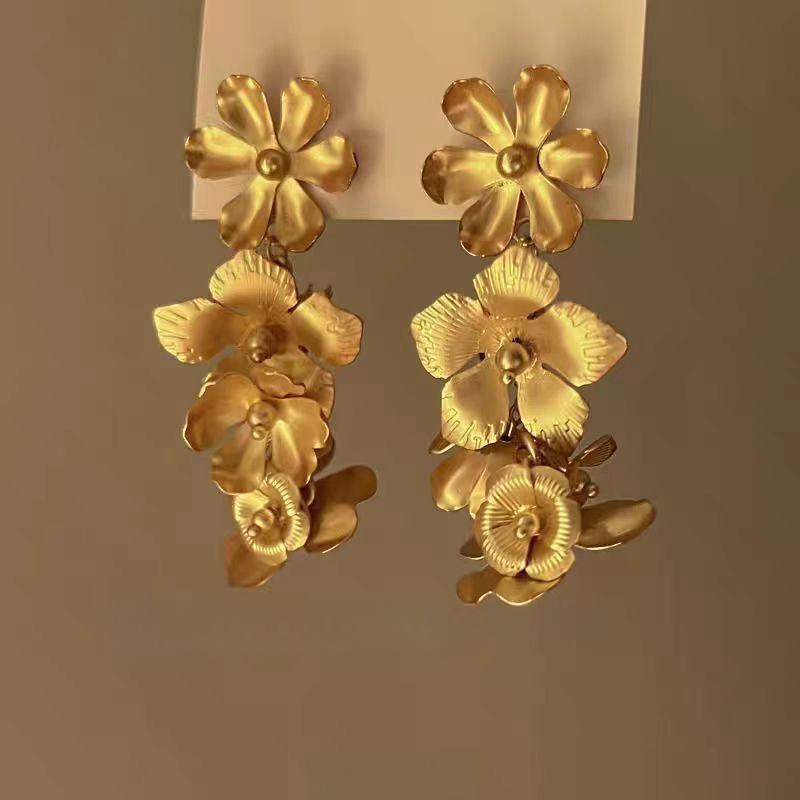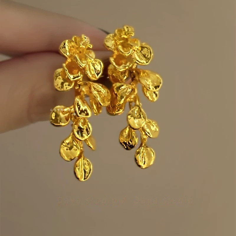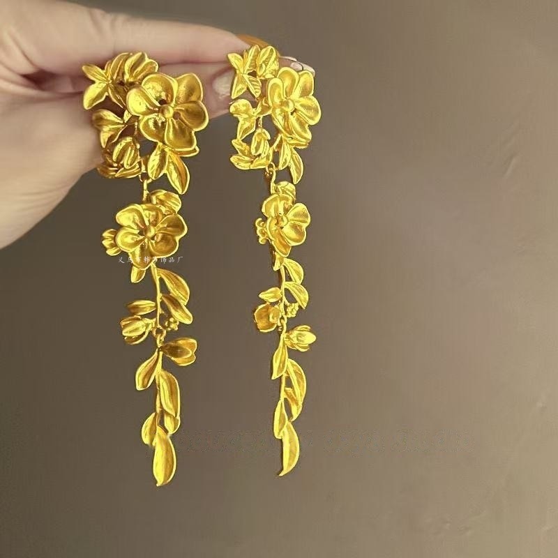 Flower Golden Tassel Earrings Women's Light Luxury Exaggerated Ear Studs Autumn and Winter High-end Sense 2024 New Hot Earrings