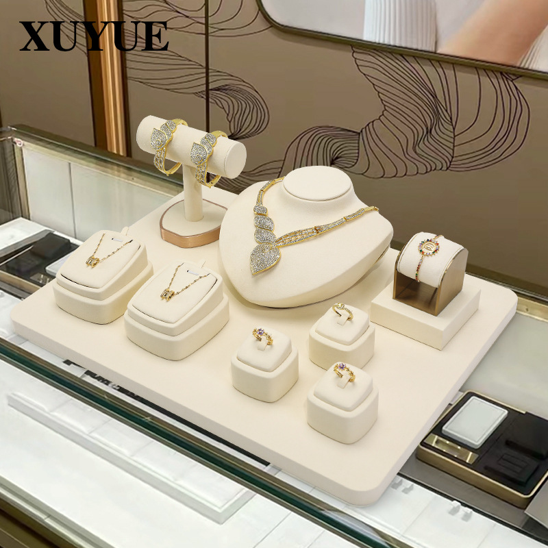 Xuyue Jewelry Counter Jewelry Display Props creamy-white Microfiber Earrings Bracelet Bracelet High-end Jewelry Display Stand