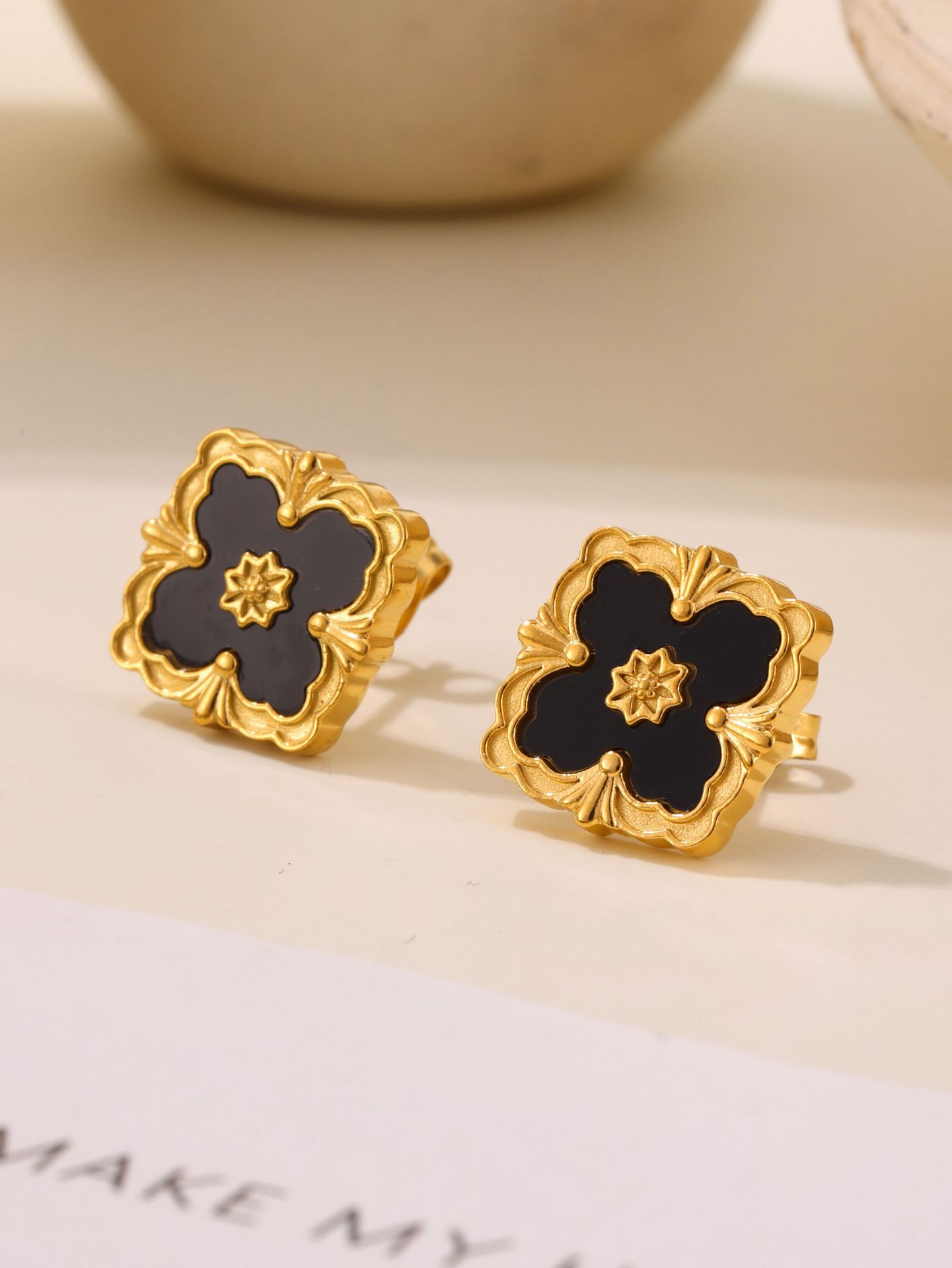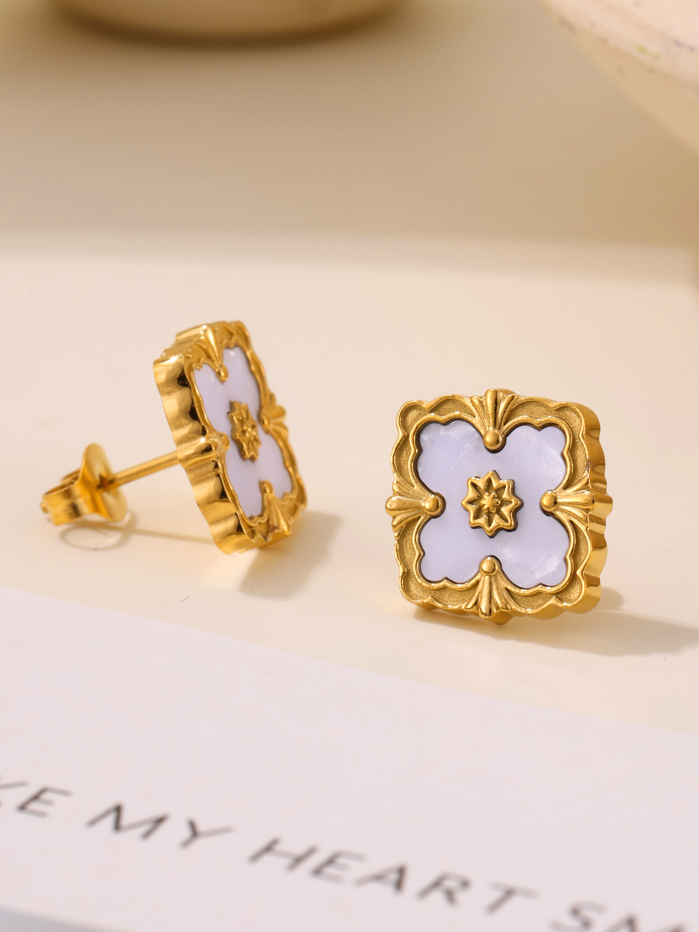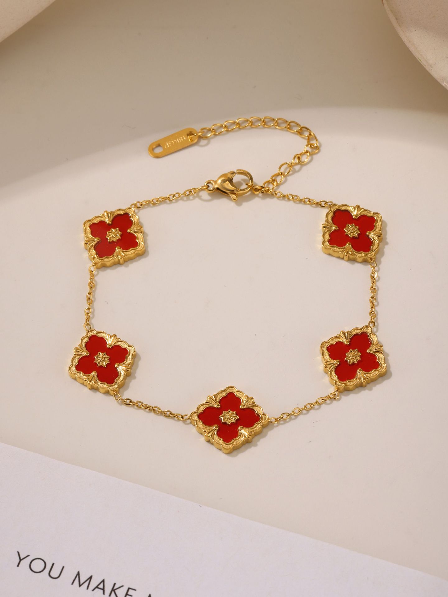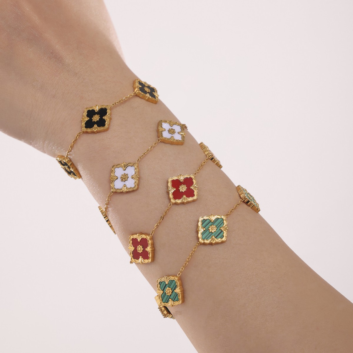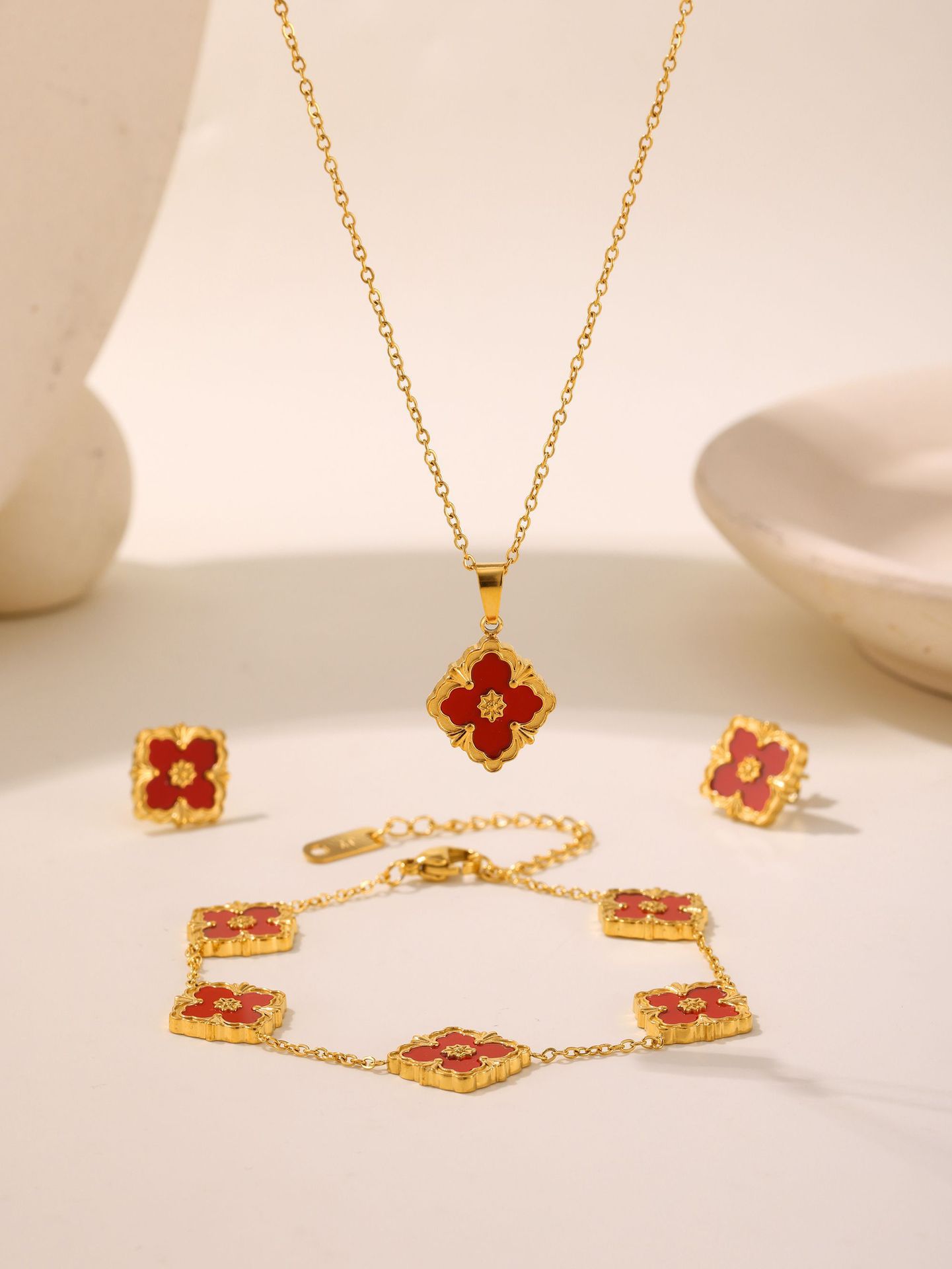 Diamond Court Style Four-leaf Flower Bracelet Necklace Earrings suit CNC High Version Quality Plating 18k Real Gold Craft