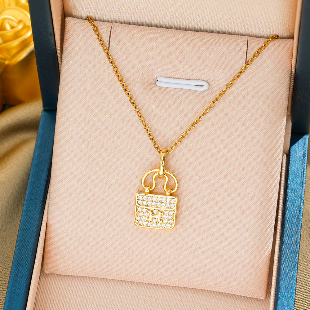 H bag titanium steel necklace: Titanium steel material, real gold plating in the furnace 18k - anti-allergic and color-preserving