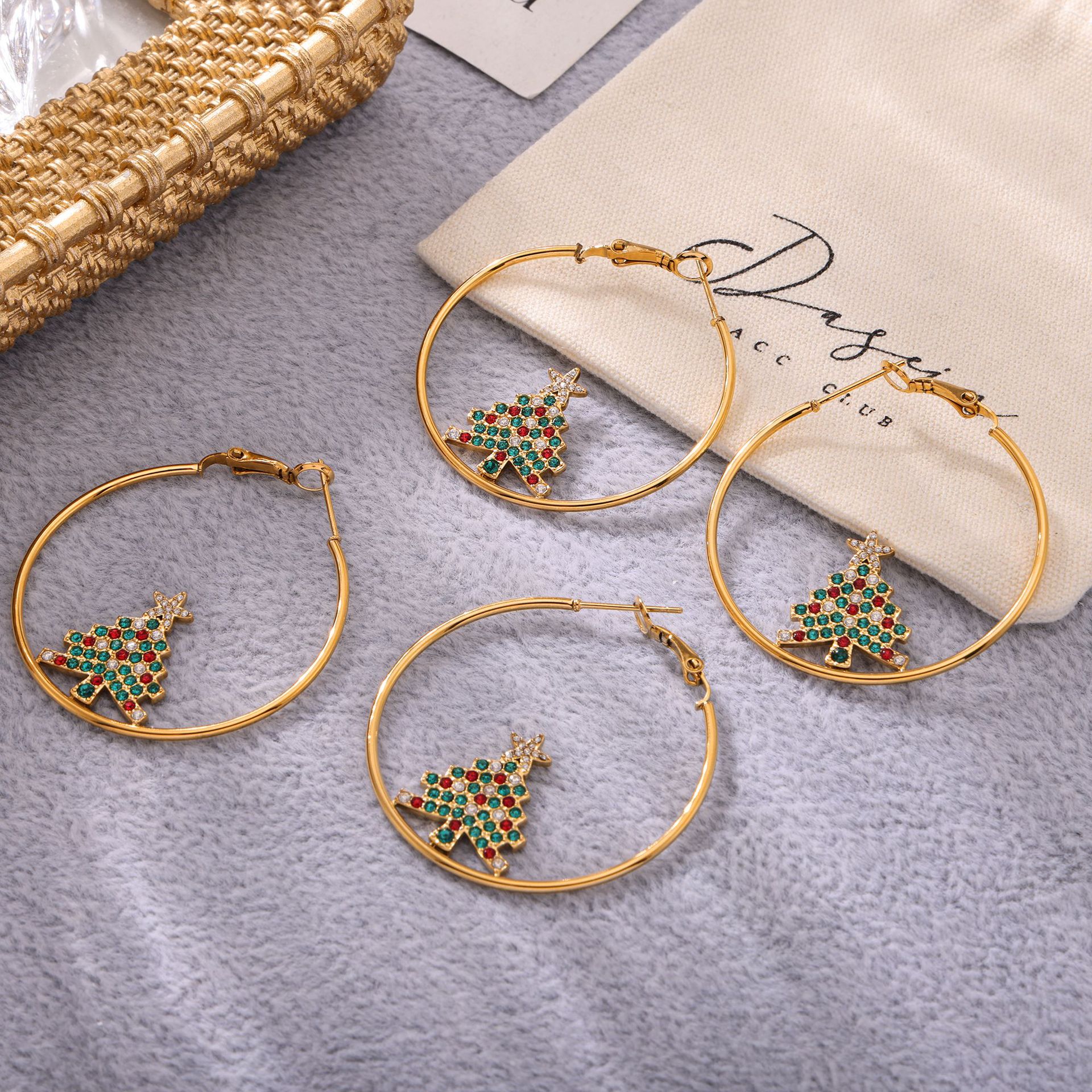 Color: P1675-Golden Christmas tree set zircon DIY necklace
