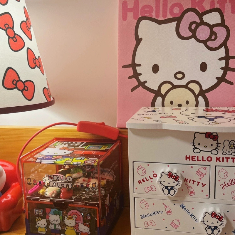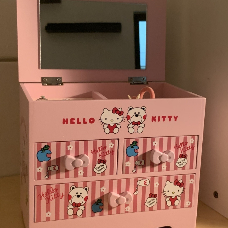 Cute Hairpin Storage Girlfriend Self-use hellokitty Storage Box with Mirror Jewelry Box Bedroom Decorations