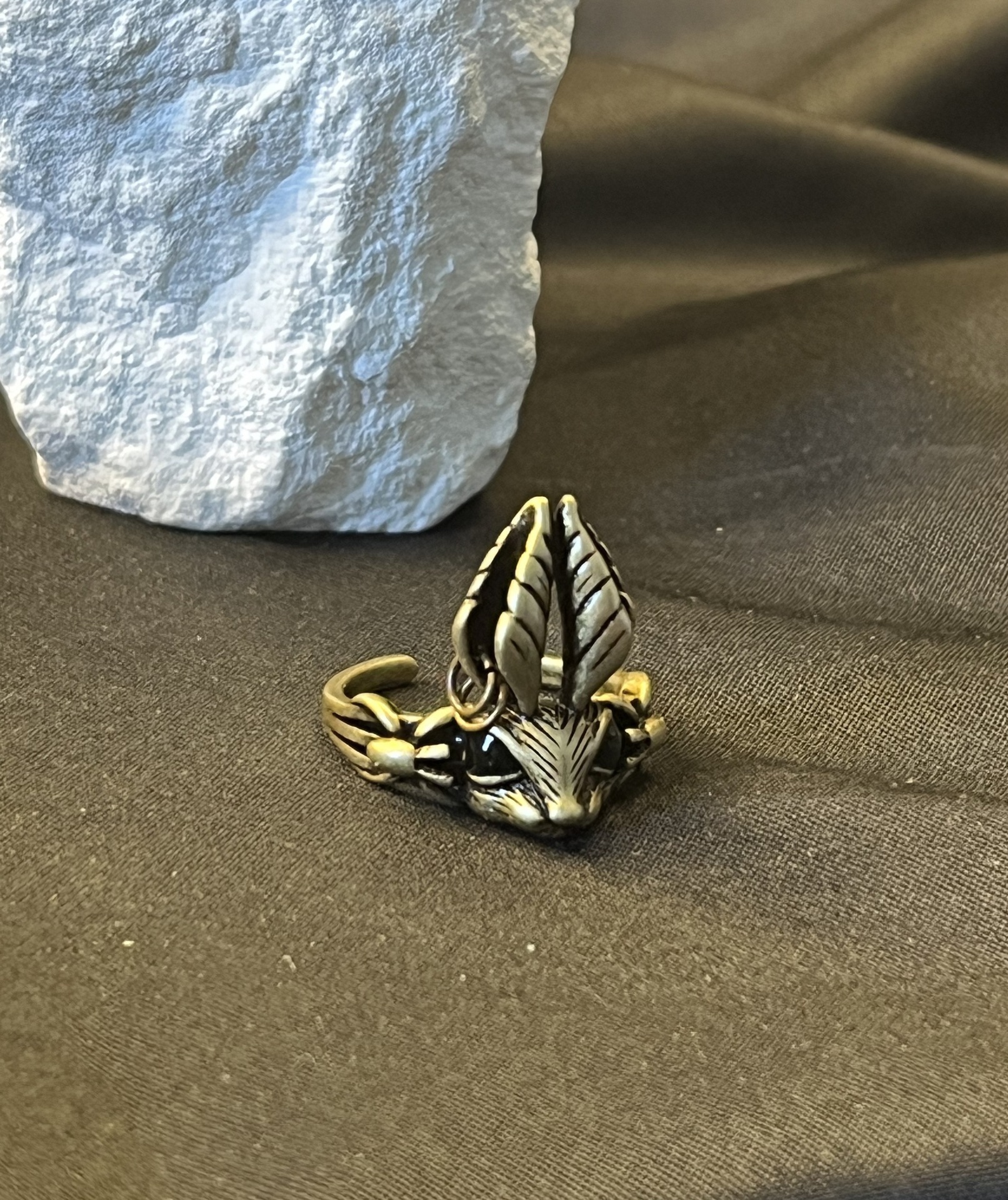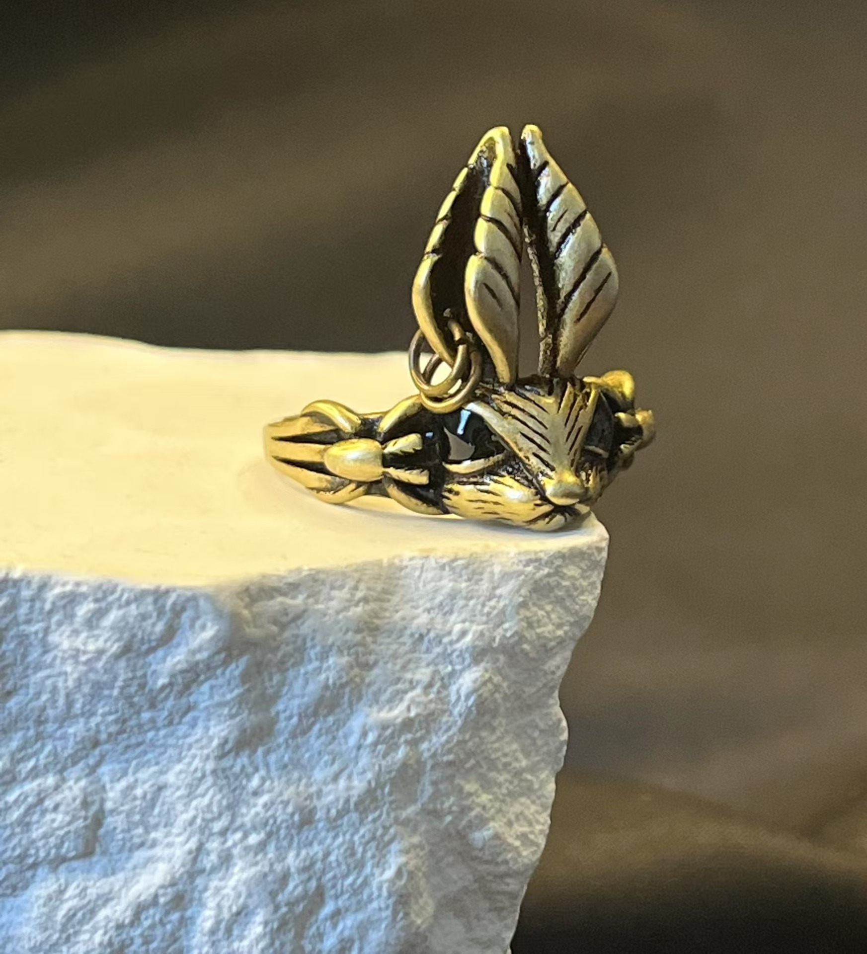 Retro Black and Gold Alice Rabbit Open Ring Ring European and American Big Ears Red Eye Rabbit Ring for Men and Women