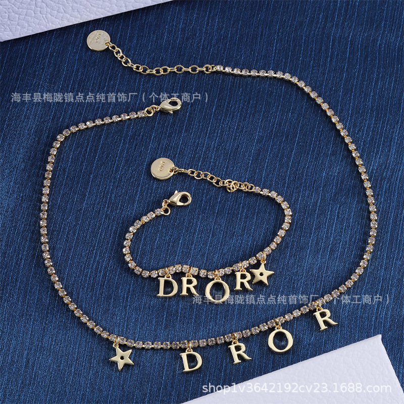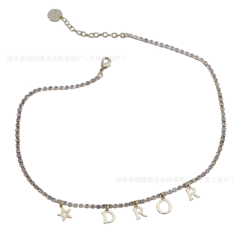 Dijia European and American Fashion Accessible Luxury Full Diamond Chain Necklace Five-Pointed Star English Letter Pendant Simple and Versatile Jewelry