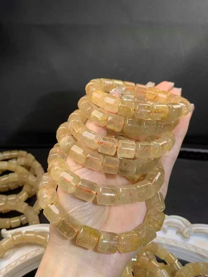 Golden crystal barrel bead bracelet domineering full hair clear natural golden crystal barrel bead bracelet manufacturers wholesale