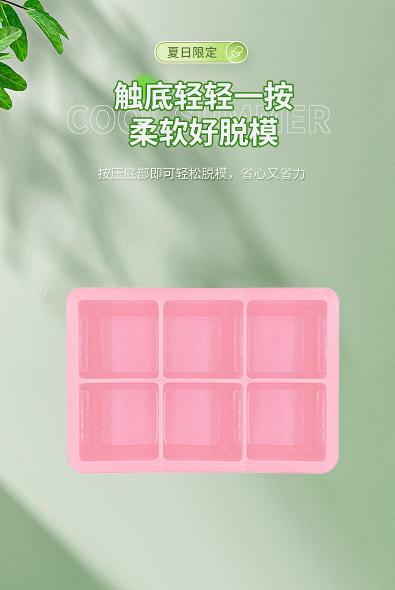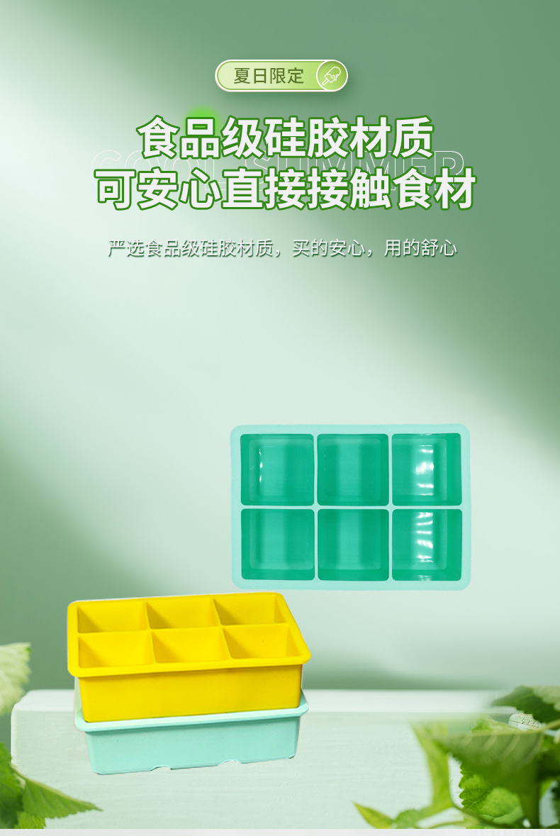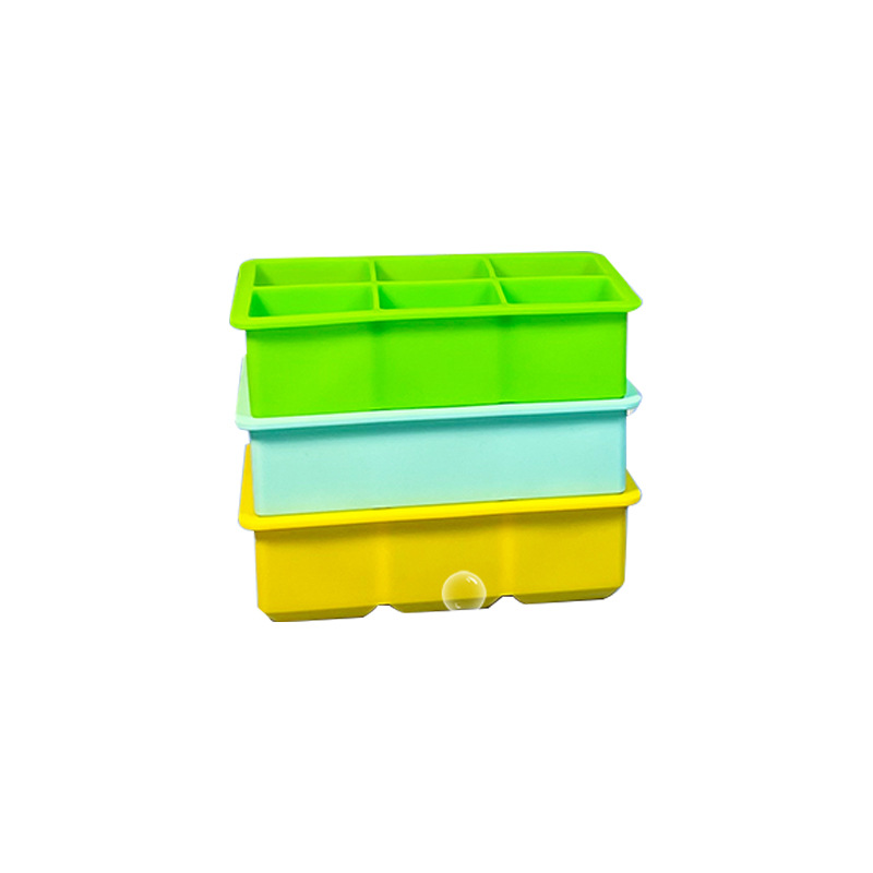 Six-Grid Square Ice Tray Food-Grade Customized Large-Capacity Silicone Ice Tray Whiskey Ice Cube Mold Ice Box