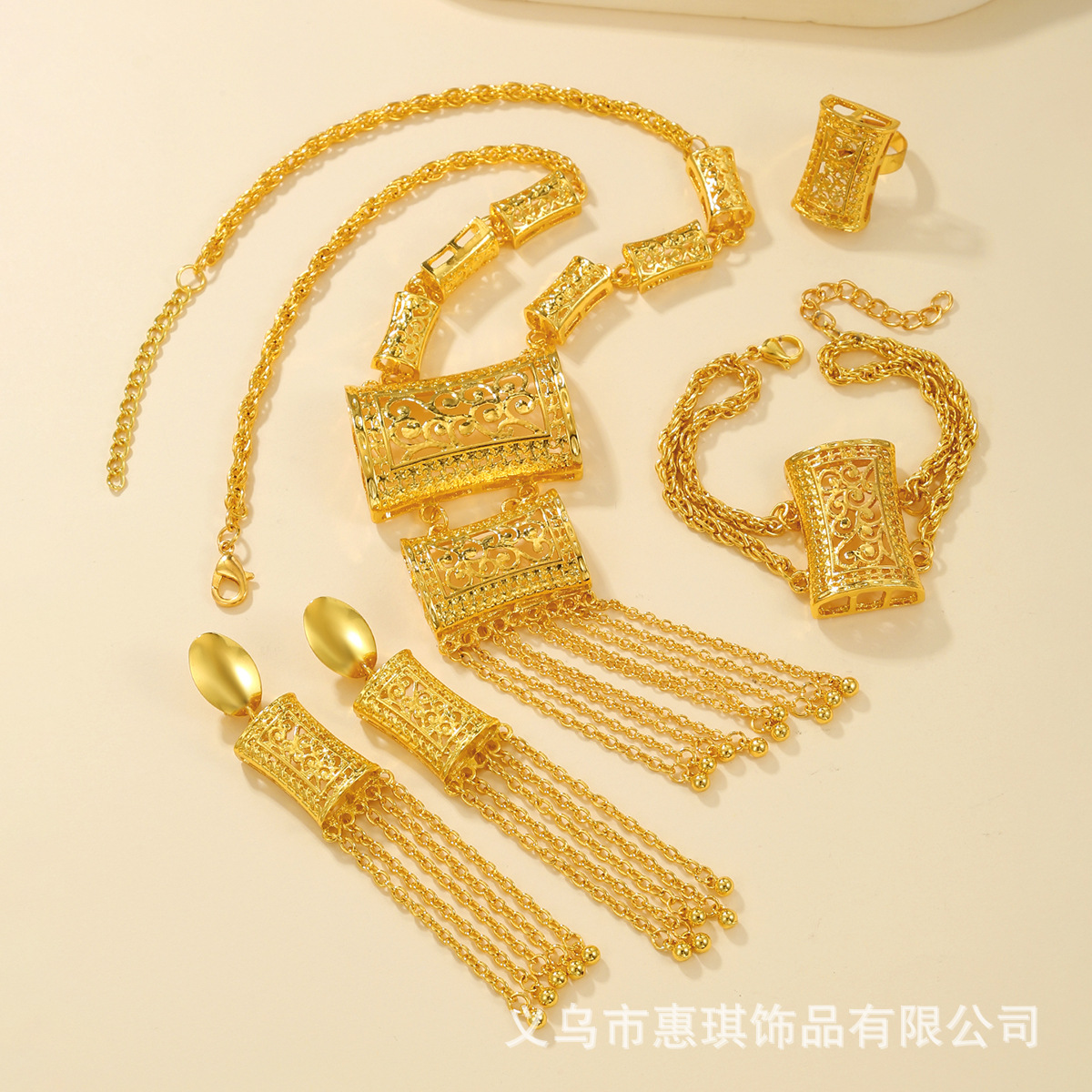 Amazon Explosions Long Tassel Dubai Gold Plated Necklace Earrings Bracelet Ring suit Africa India Bride Jewelry