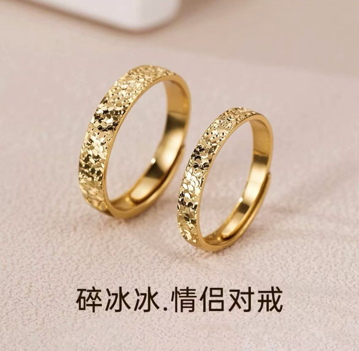 New flash broken ice couple pair ring broken ice opening ring men's and women's fashion copper gold-plated jewelry wholesale