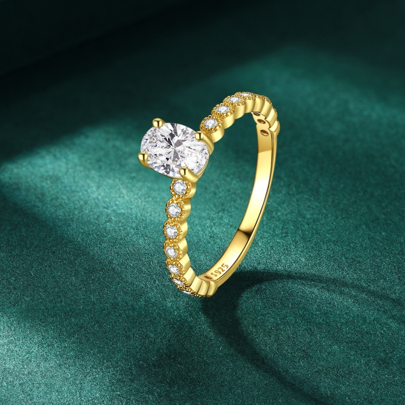 Cross-border New Shining Simple Zircon Ring Women's Fashion S925 Sterling Silver Plated Platinum Gold Ring Jewelry