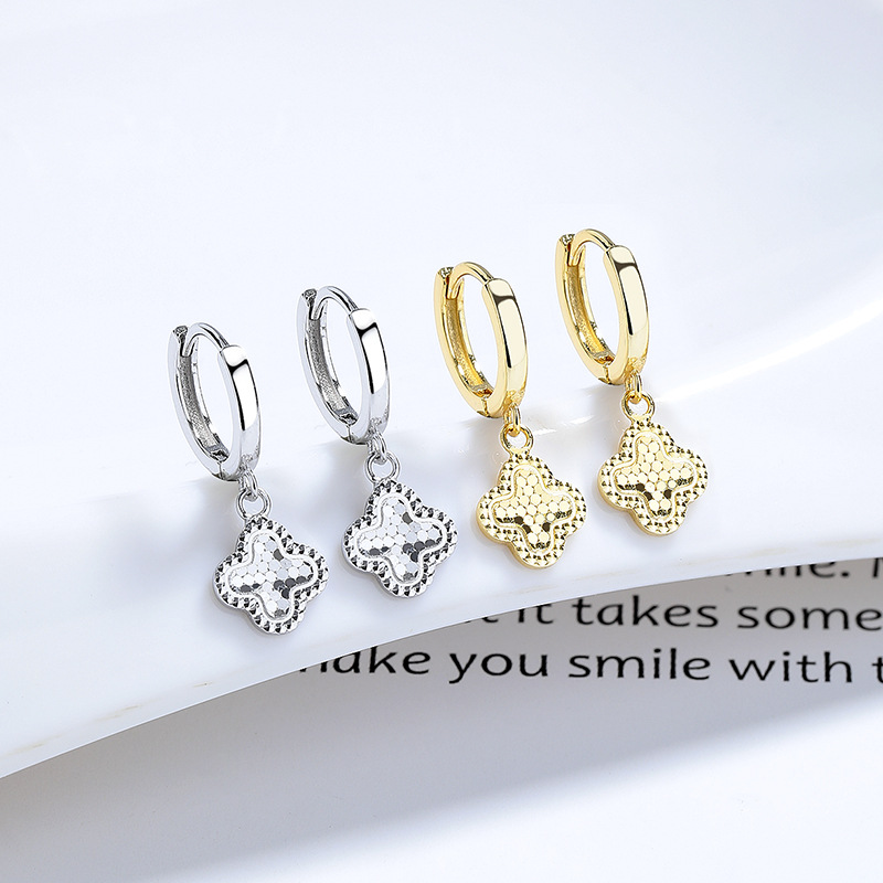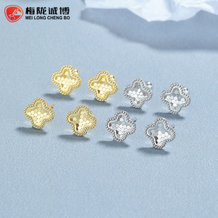 S925 Sterling Silver Ins Light Luxury Fashion High-grade All-match Ice Ice Crushed Four-leaf Grass Earrings 2025 New Ear Accessories