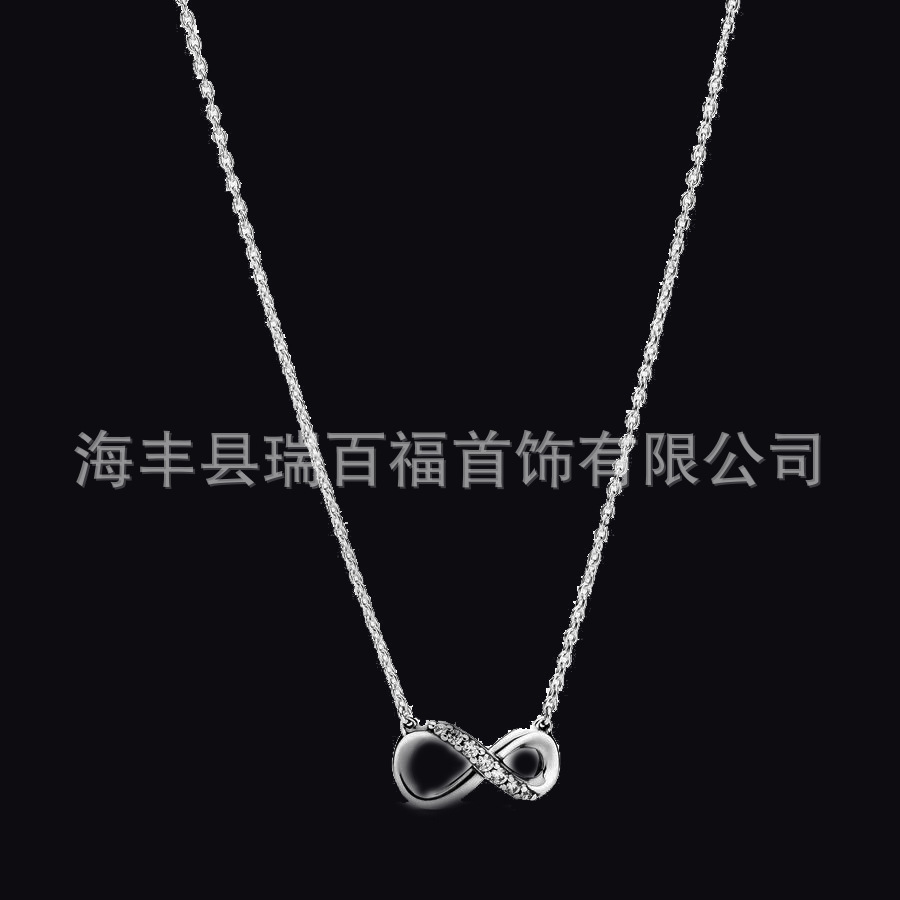 Cross-border Foreign Trade Panjia New Eternal Symbol Copper Plated 925 Silver Necklace Versatile Clavicle Chain Necklace Earrings suit
