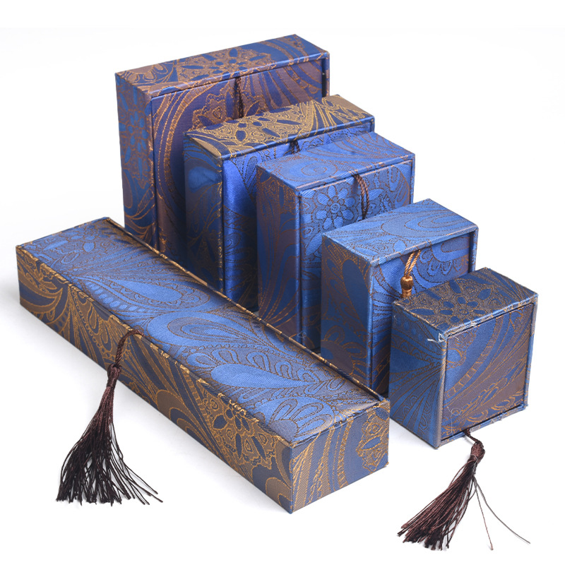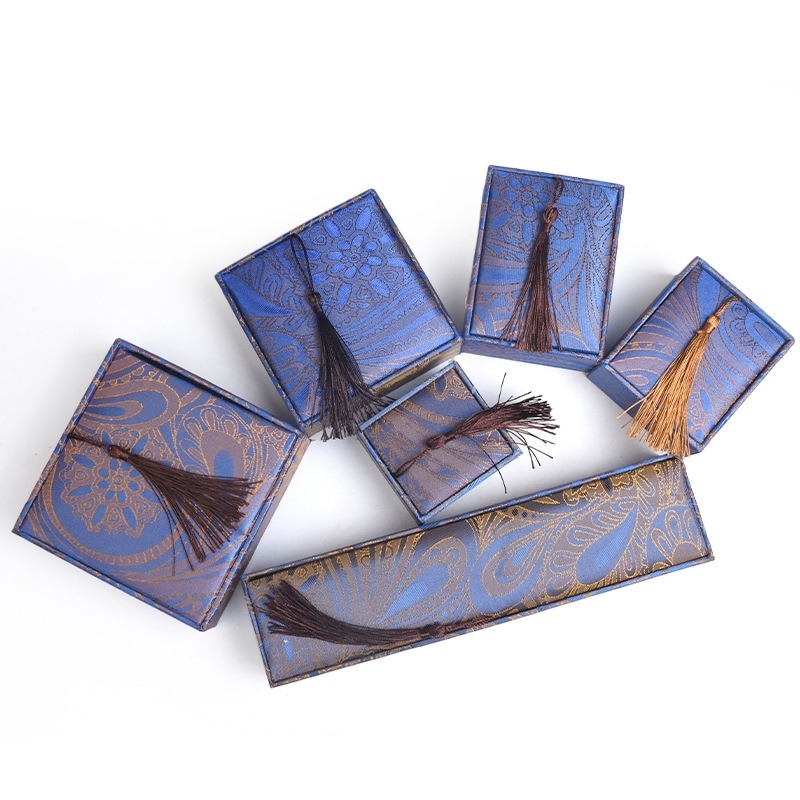 Specification model: Necklace box 6x24cm; blue peacock pattern