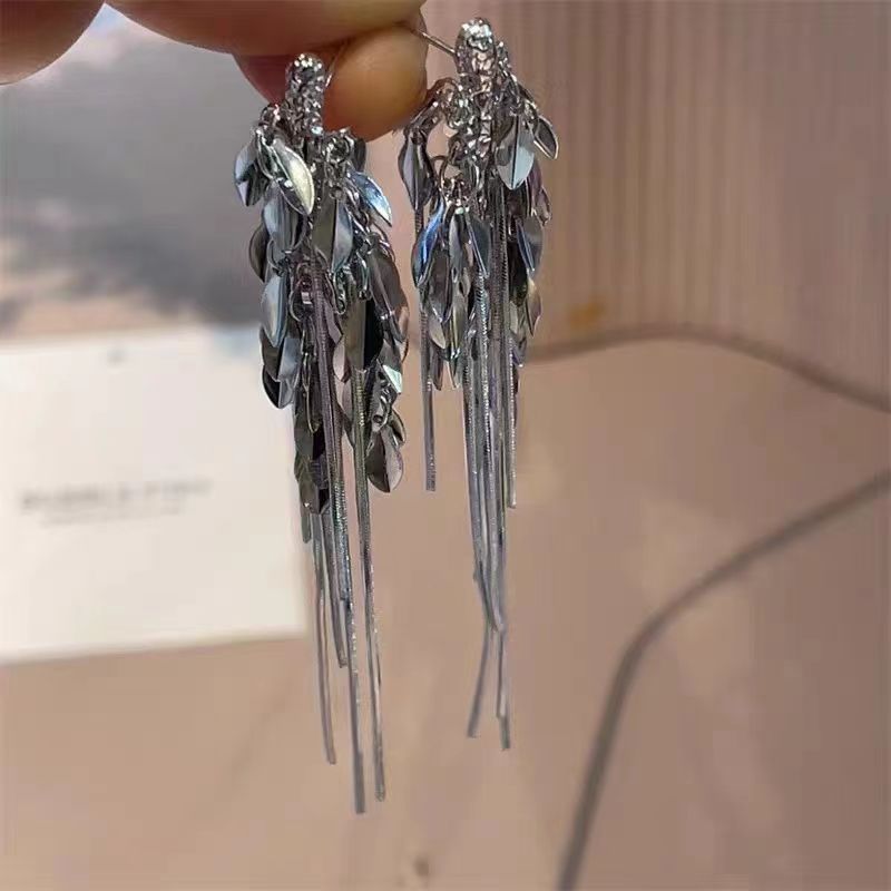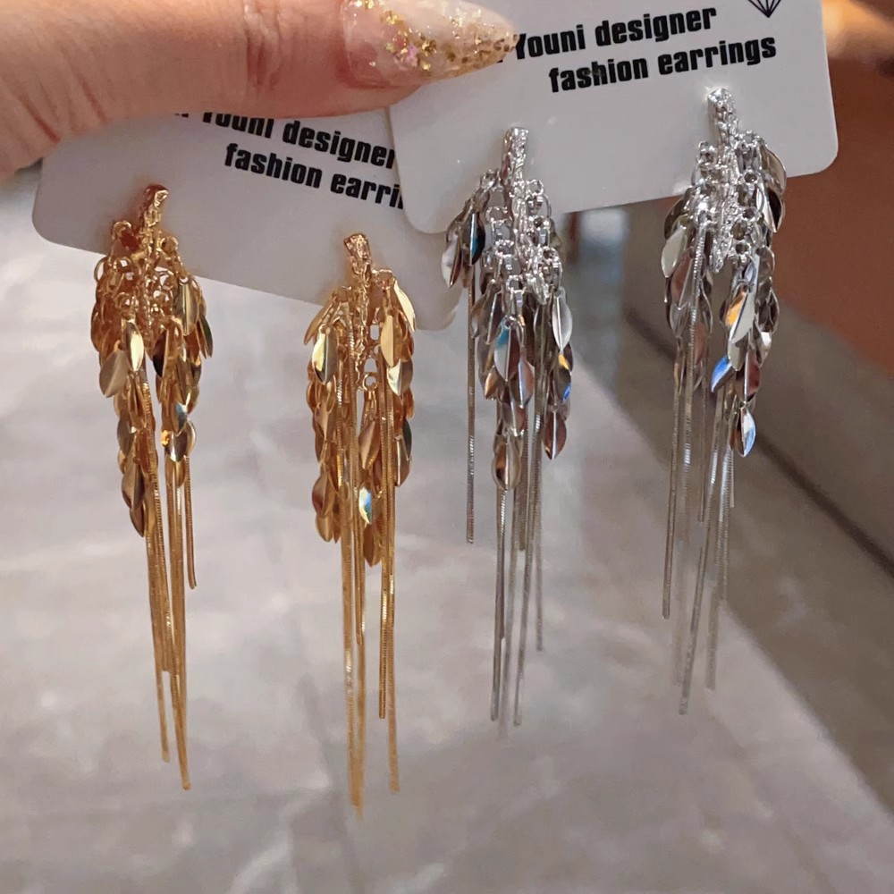 European and American-style long wheat tassel earrings elegant exaggerated Internet celebrity high-end unique fashion earrings for women