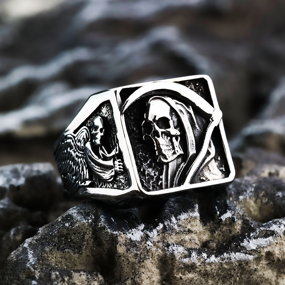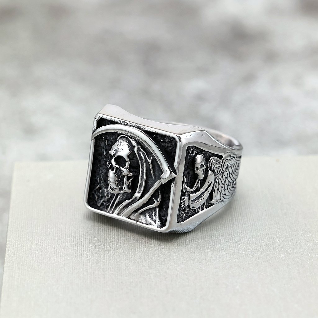 European and American Retro Stainless Steel Punk Ring Solid Halloween Death Skull Ring