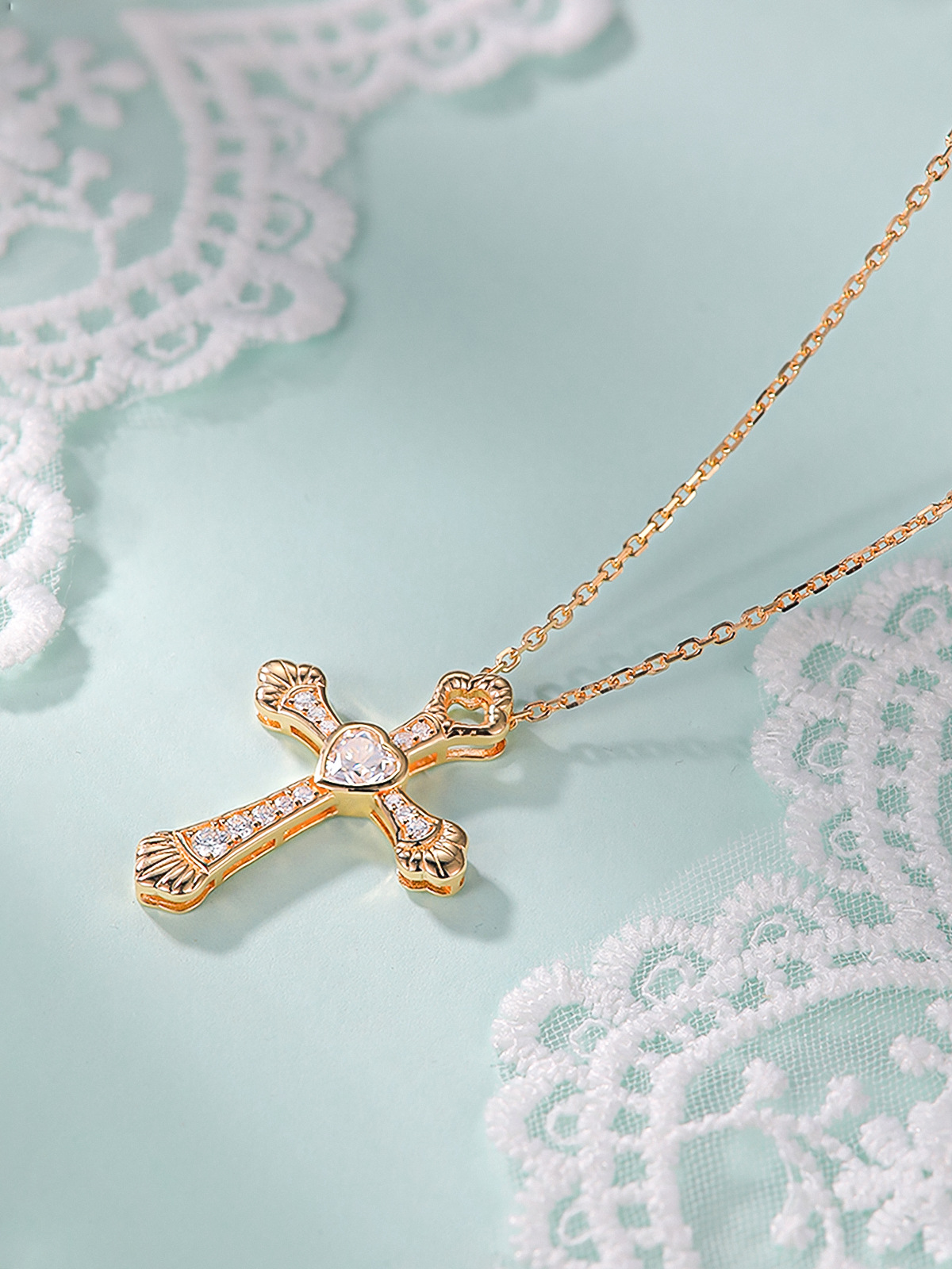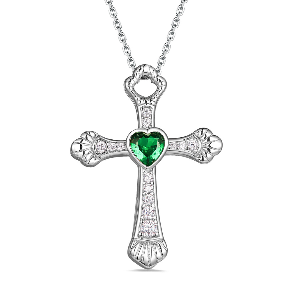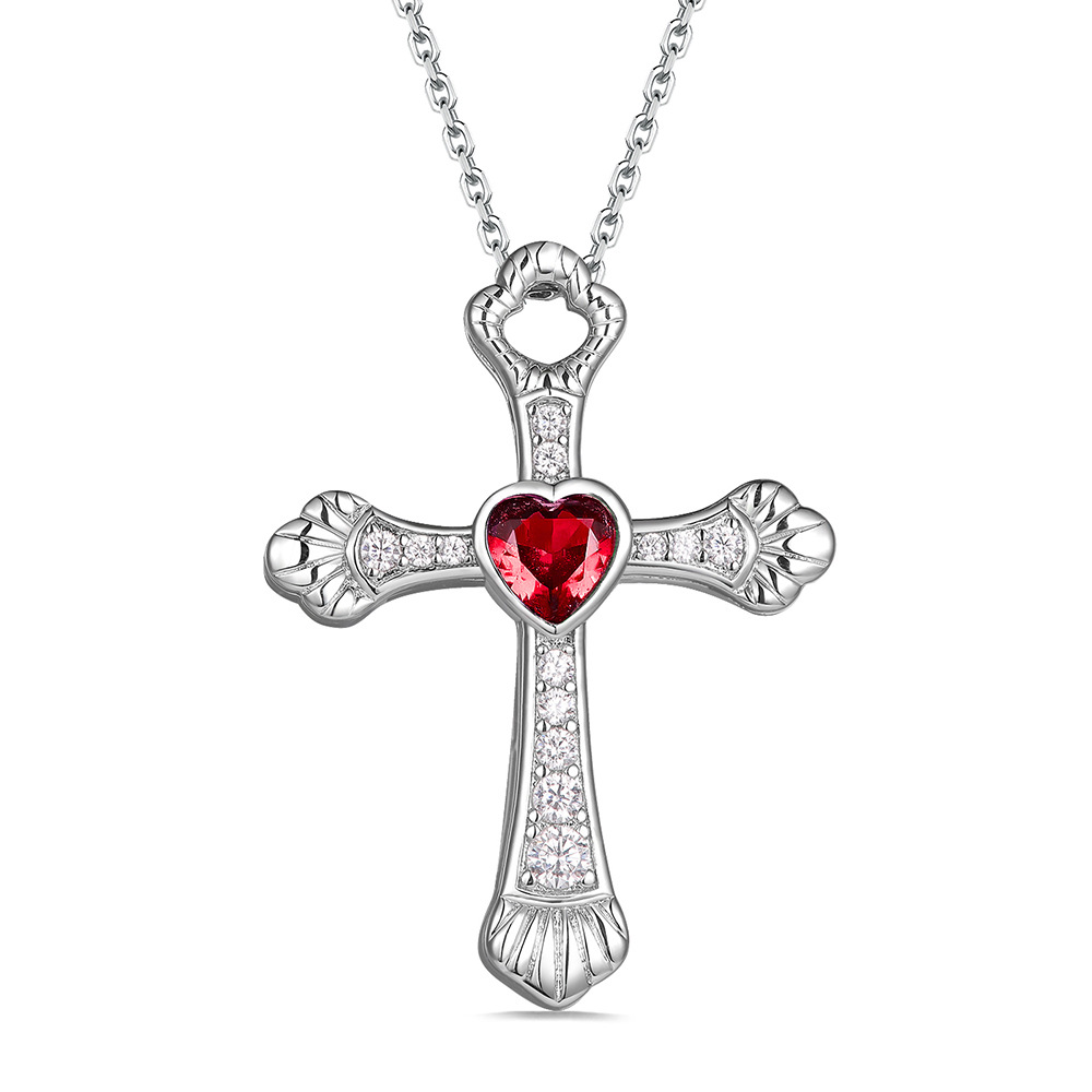 Cross-border Hot Cross Pendant Explosions s925 Silver Moissanite Red/Blue/Emerald Love Women Necklace