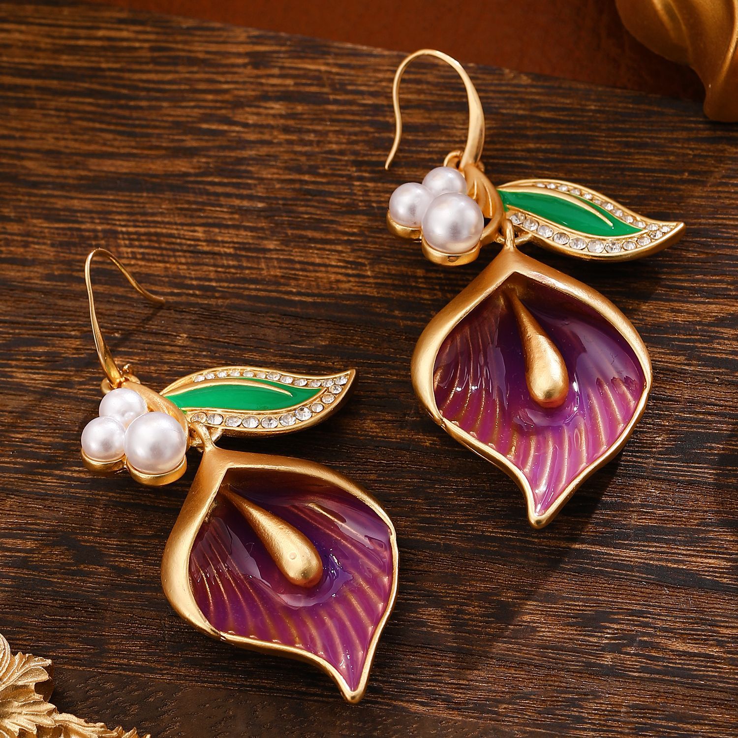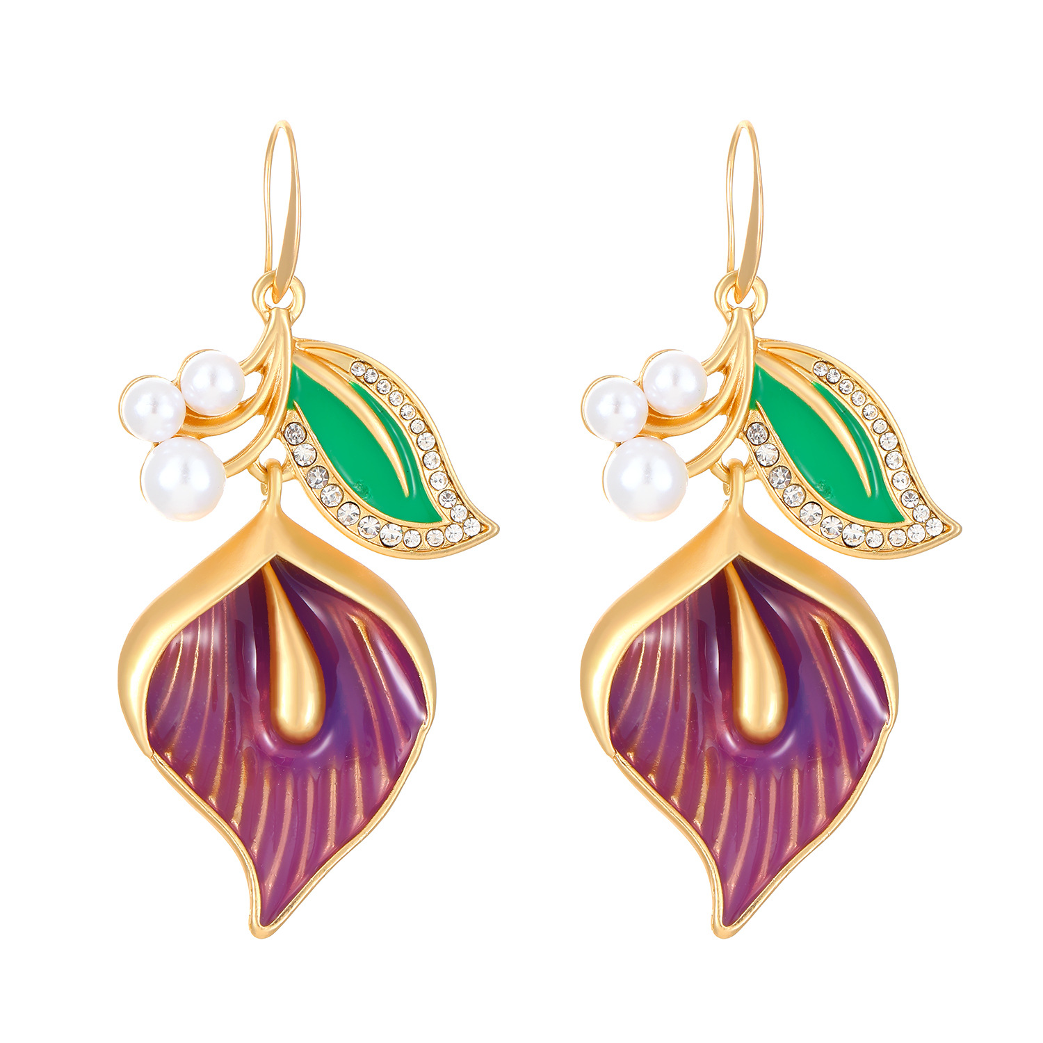 European and American Fashion Pearl Calla Flower Earrings Enamel Dropping Glaze Light Luxury High-end Sense Earrings Women's Middle Ancient Court