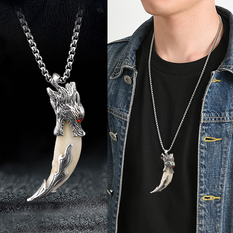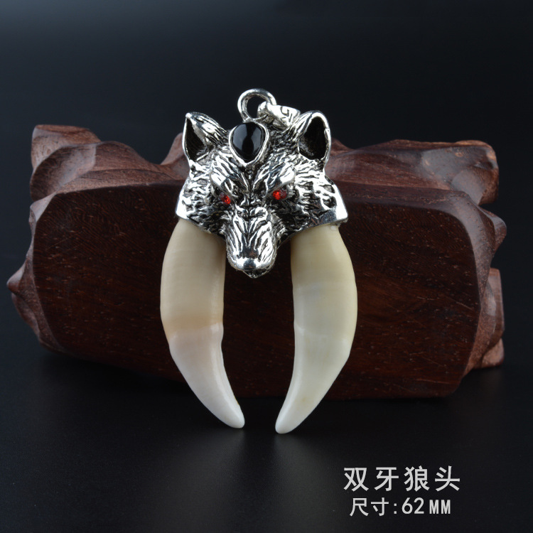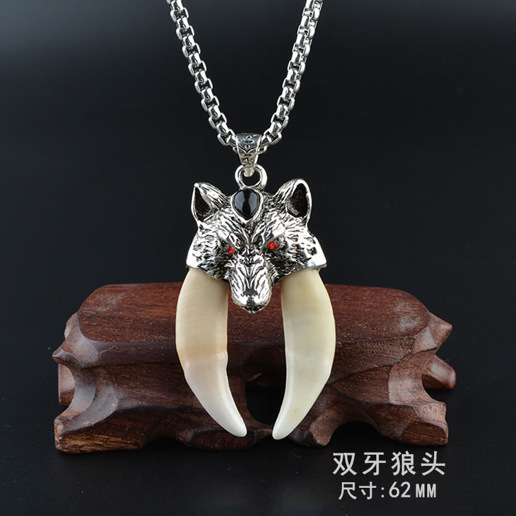 Double-tooth wolf head (comes with wax rope + titanium steel chain)