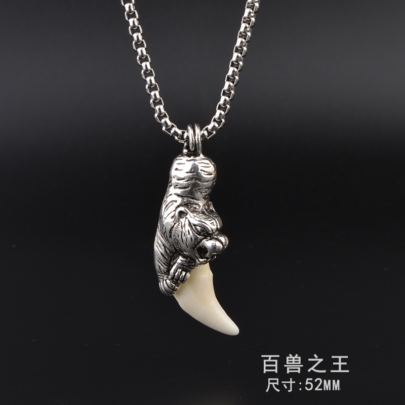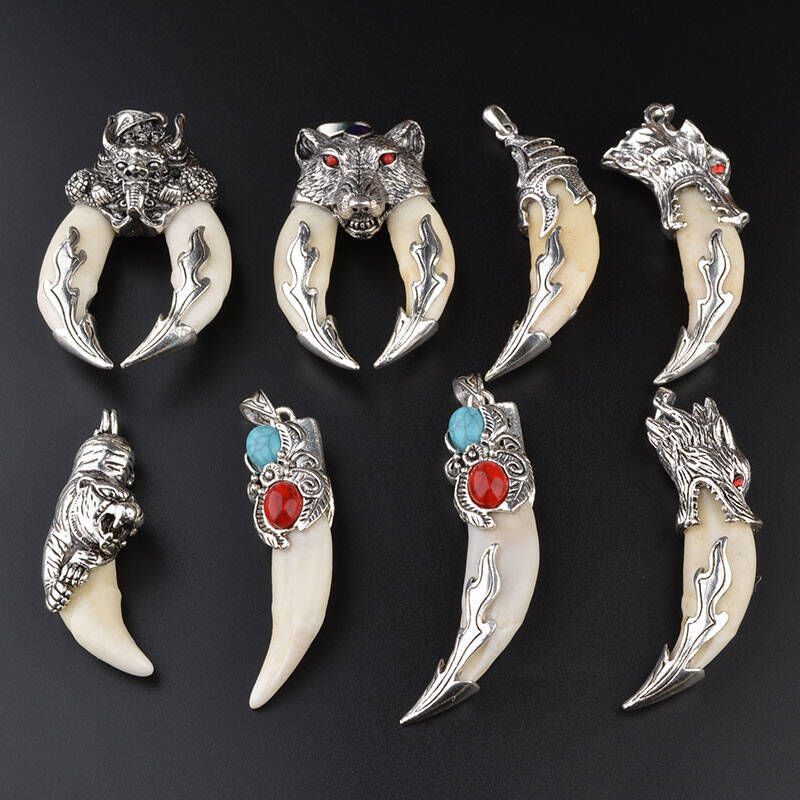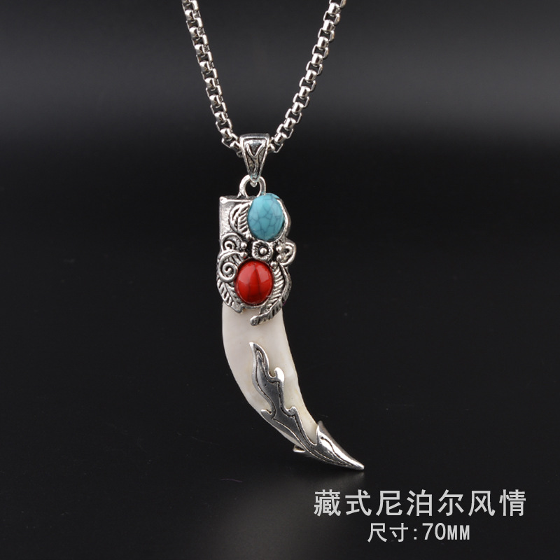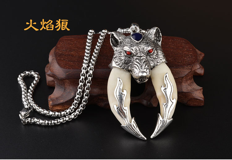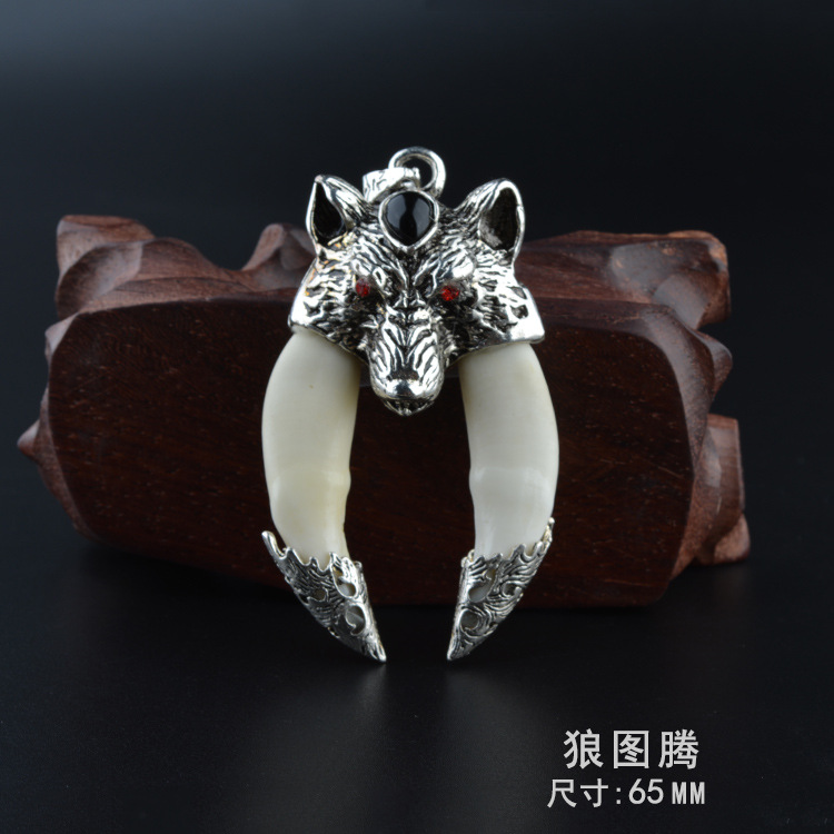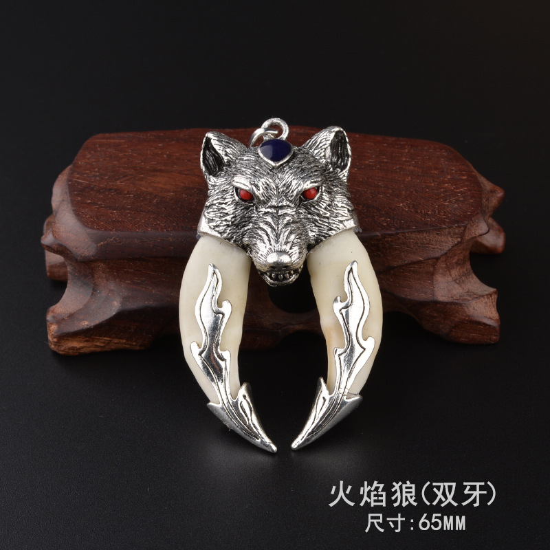 Wholesale Xizang Silver Plated Set with Accessories Dog Teeth Tip Women Necklace Xizang Mastiff Wolf Head Ethnic Style Spike Pendant Men