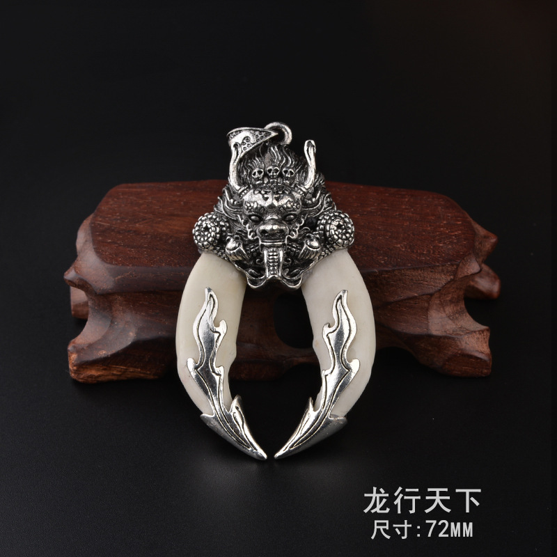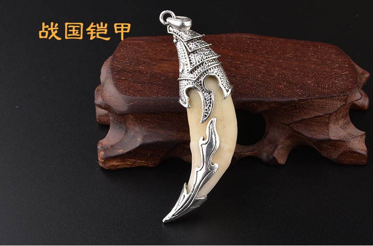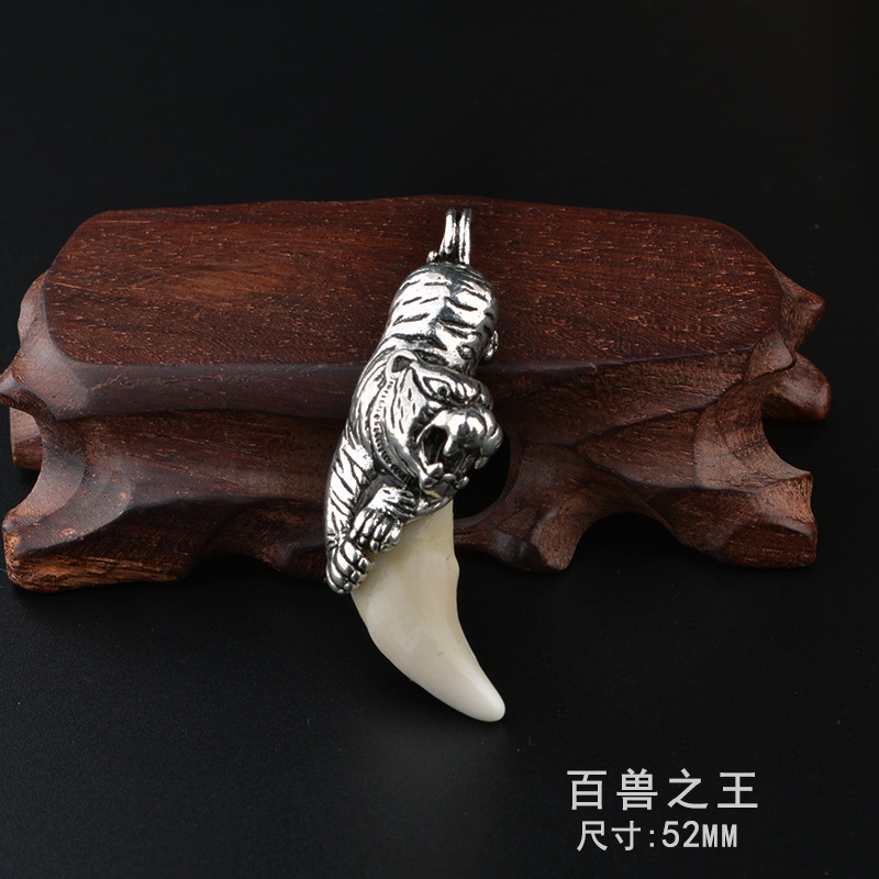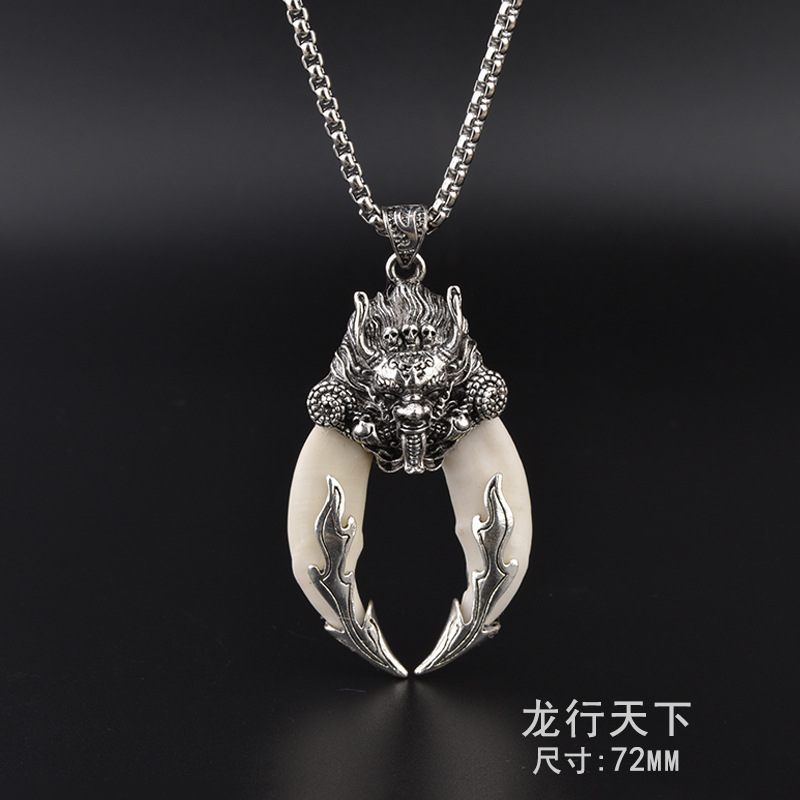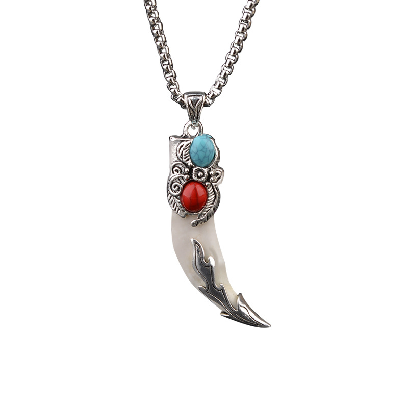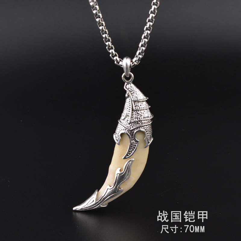Wholesale Xizang Silver Plated Set with Accessories Dog Teeth Tip Women Necklace Xizang Mastiff Wolf Head Ethnic Style Spike Pendant Men