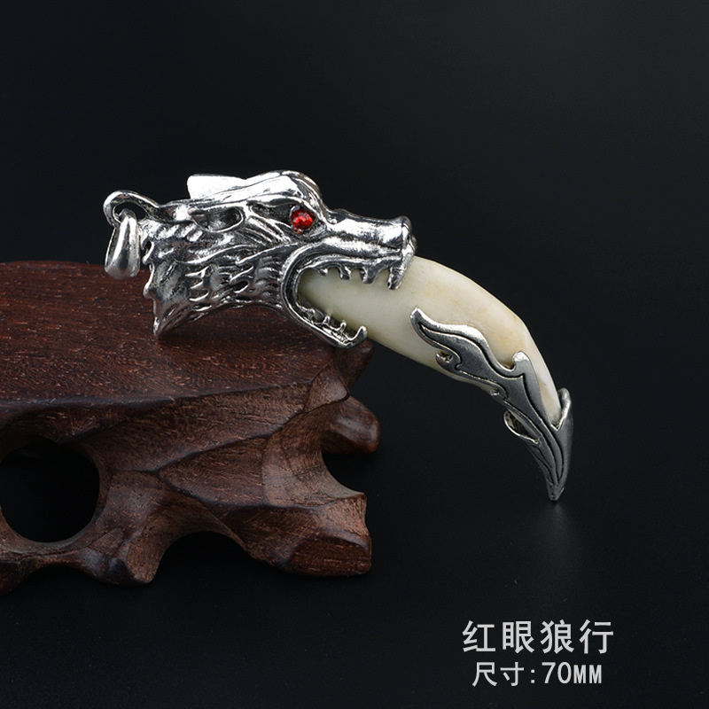 Color: Red-eyed wolf walking (comes with wax rope + titanium steel chain)