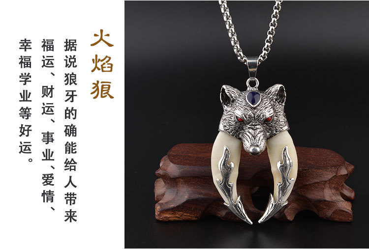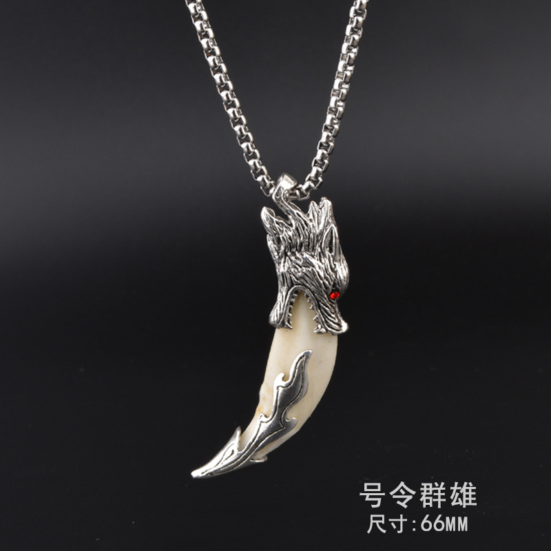 Color: Double-tooth wolf head (comes with wax rope + titanium steel chain)
