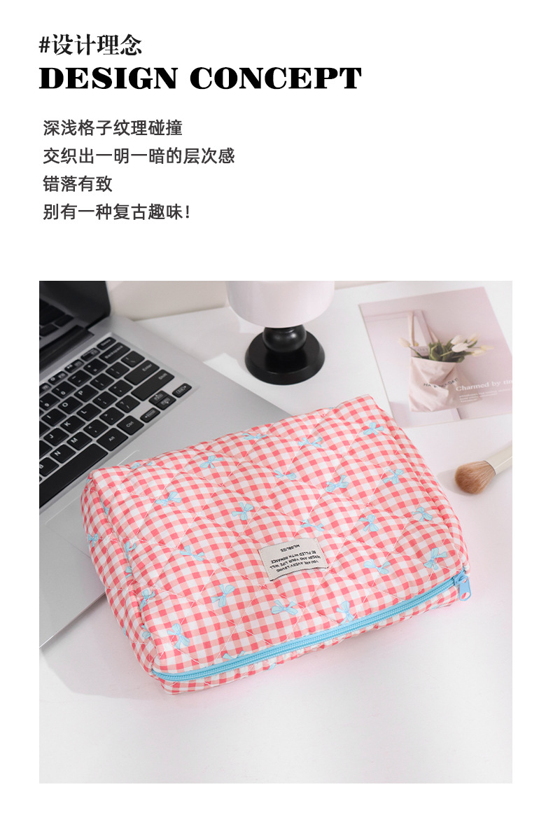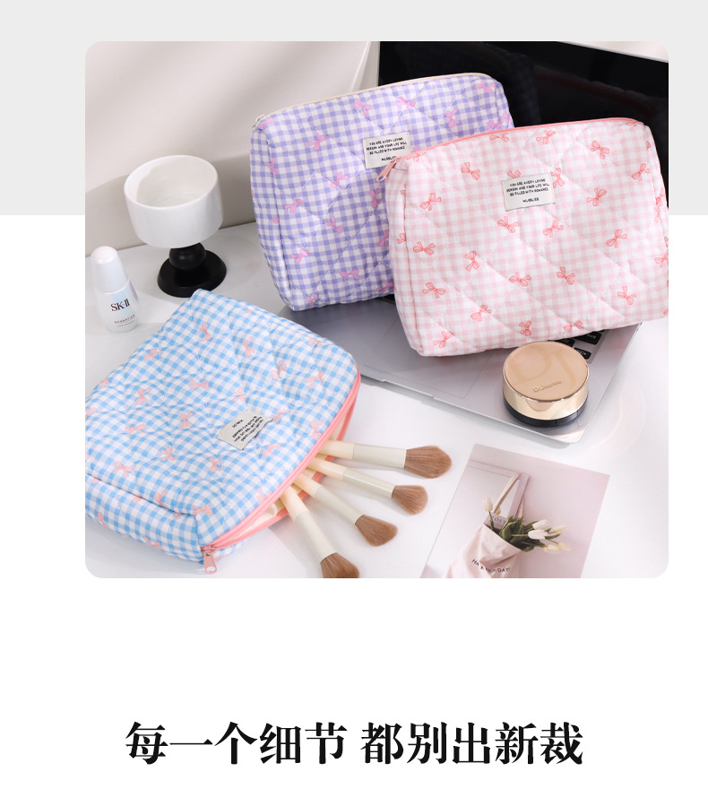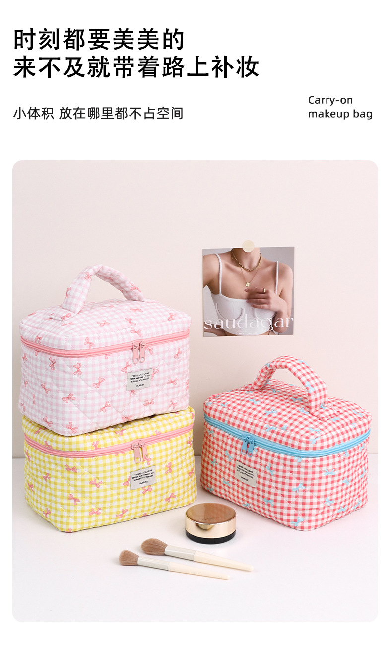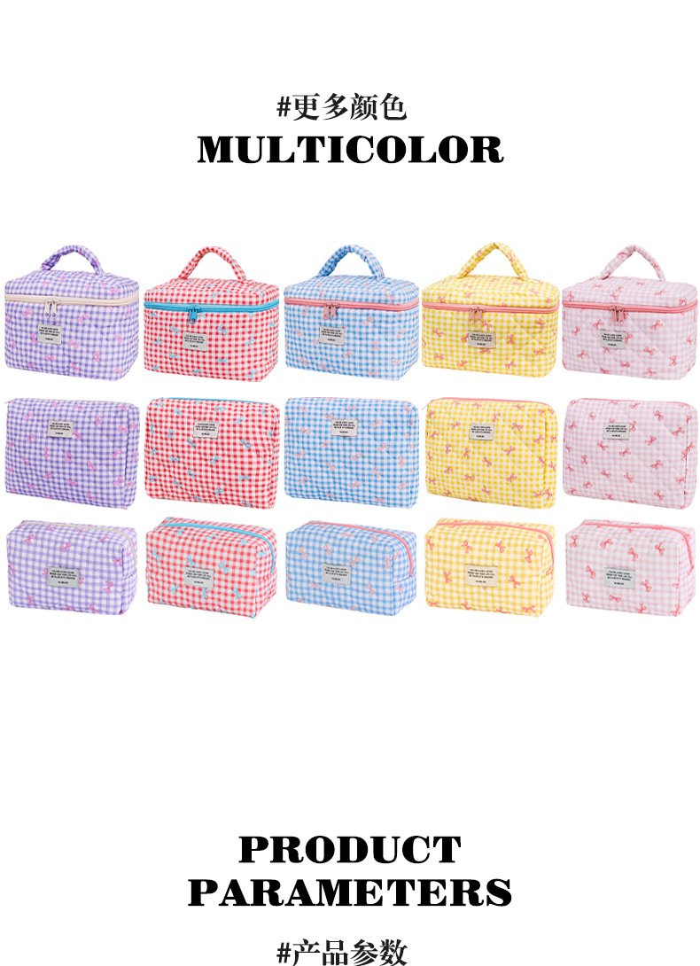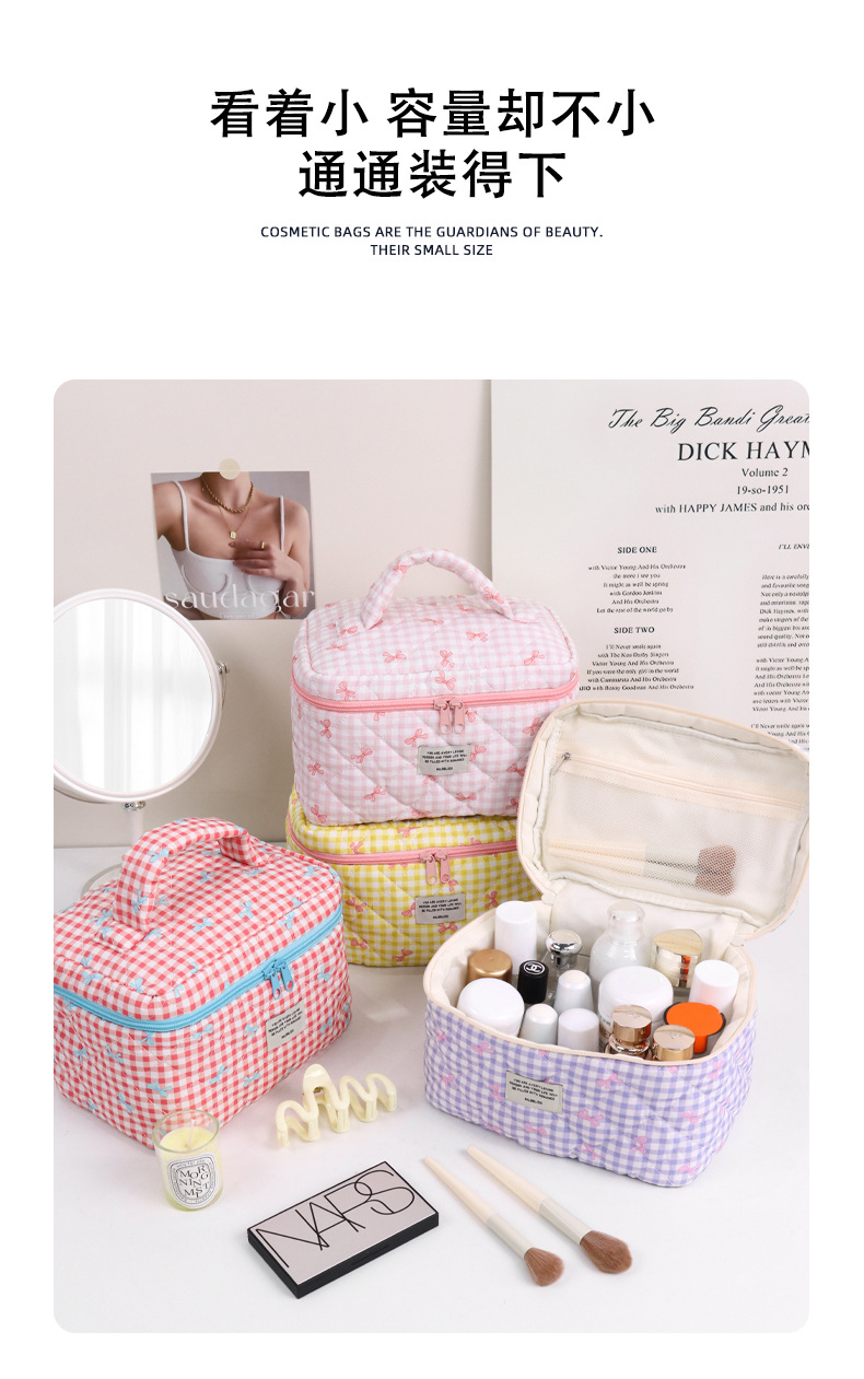 Hot-Selling Plaid Bow Cute Cosmetic Bag Large Capacity High-End Storage Bag Girls Toiletry Bag Pencil Case