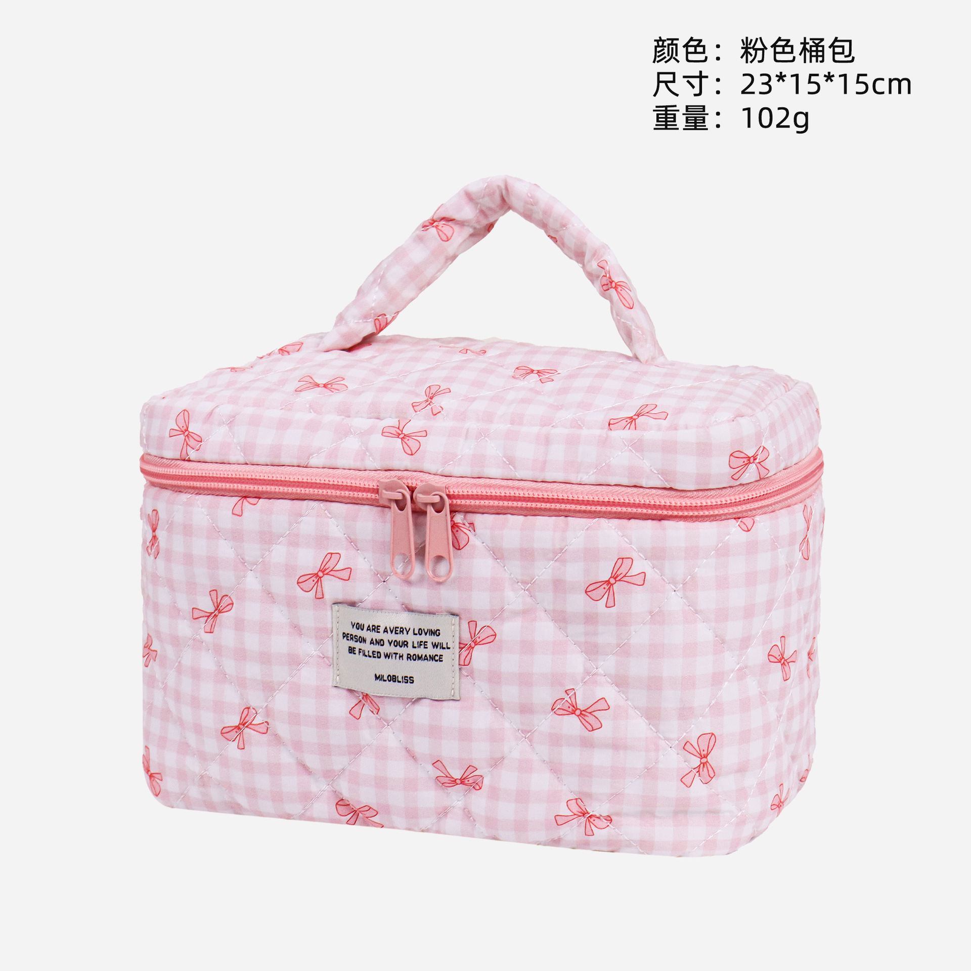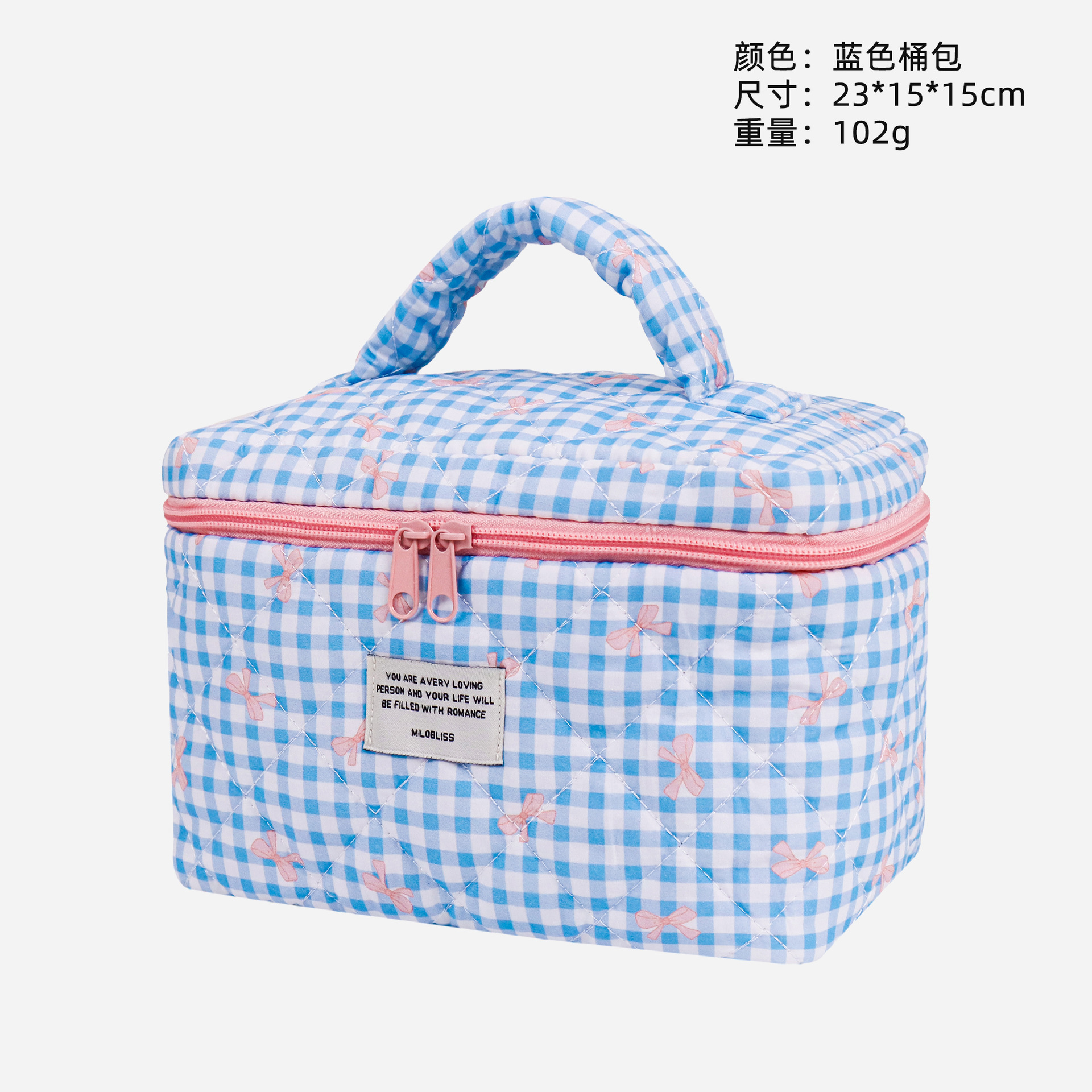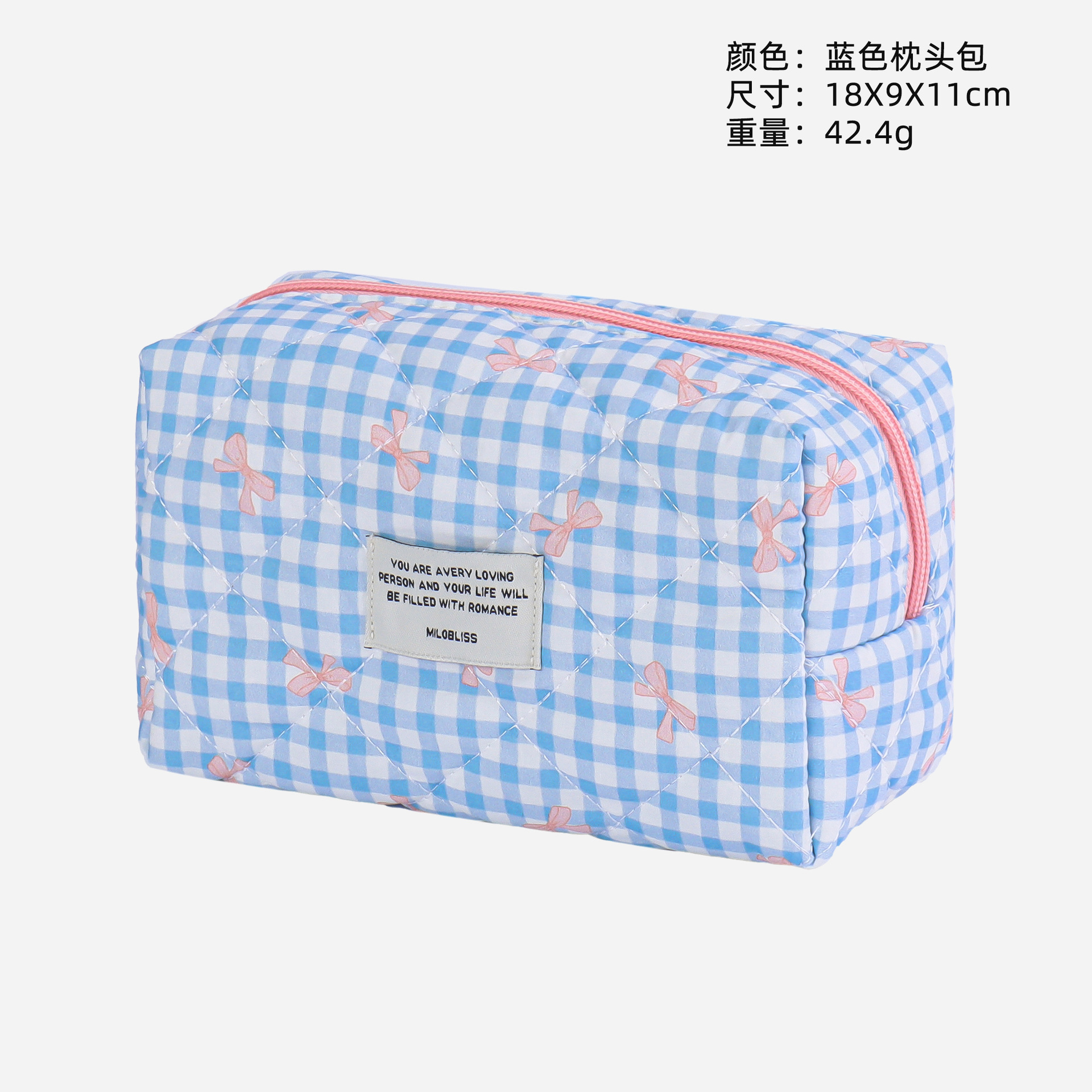 Hot-Selling Plaid Bow Cute Cosmetic Bag Large Capacity High-End Storage Bag Girls Toiletry Bag Pencil Case
