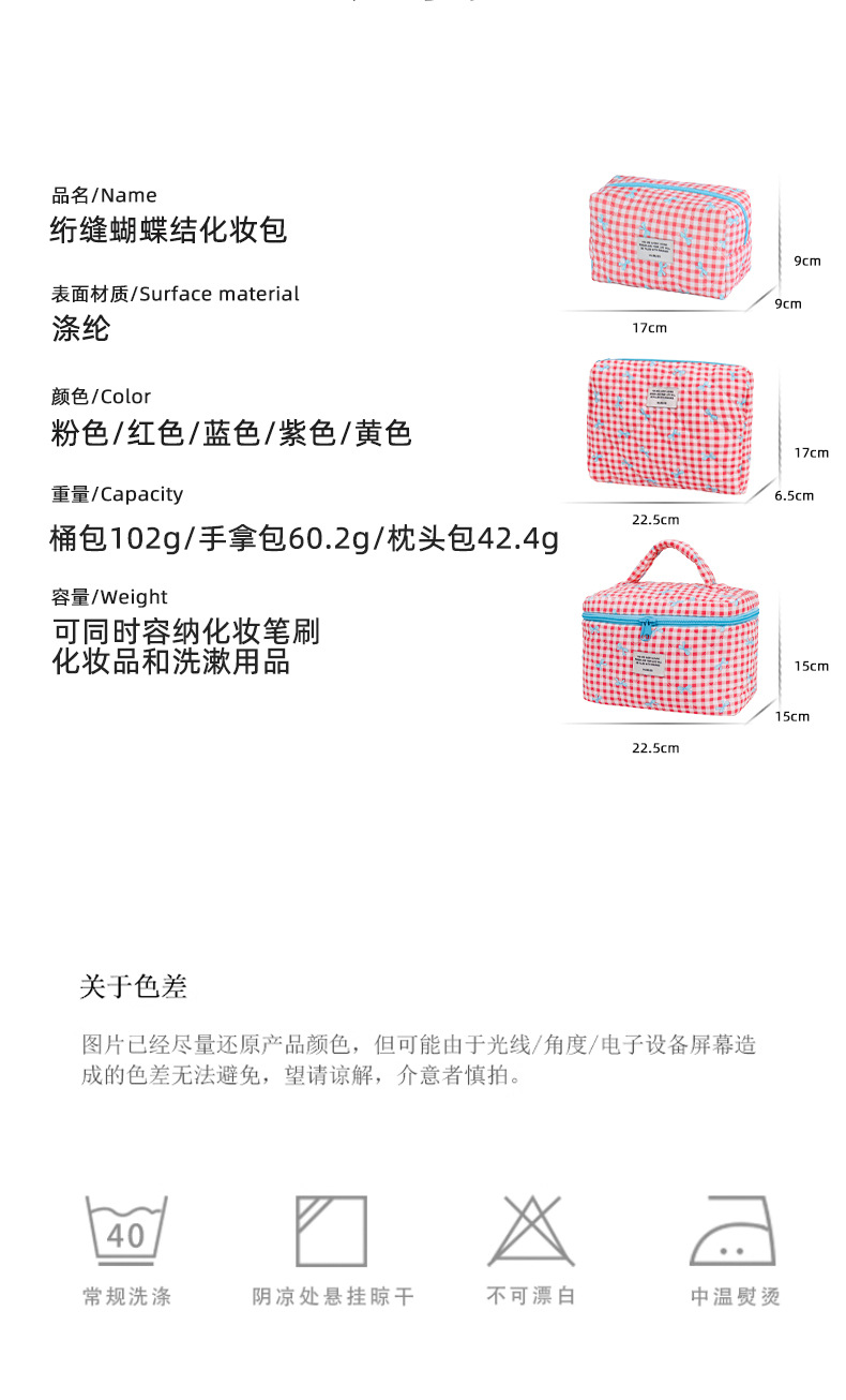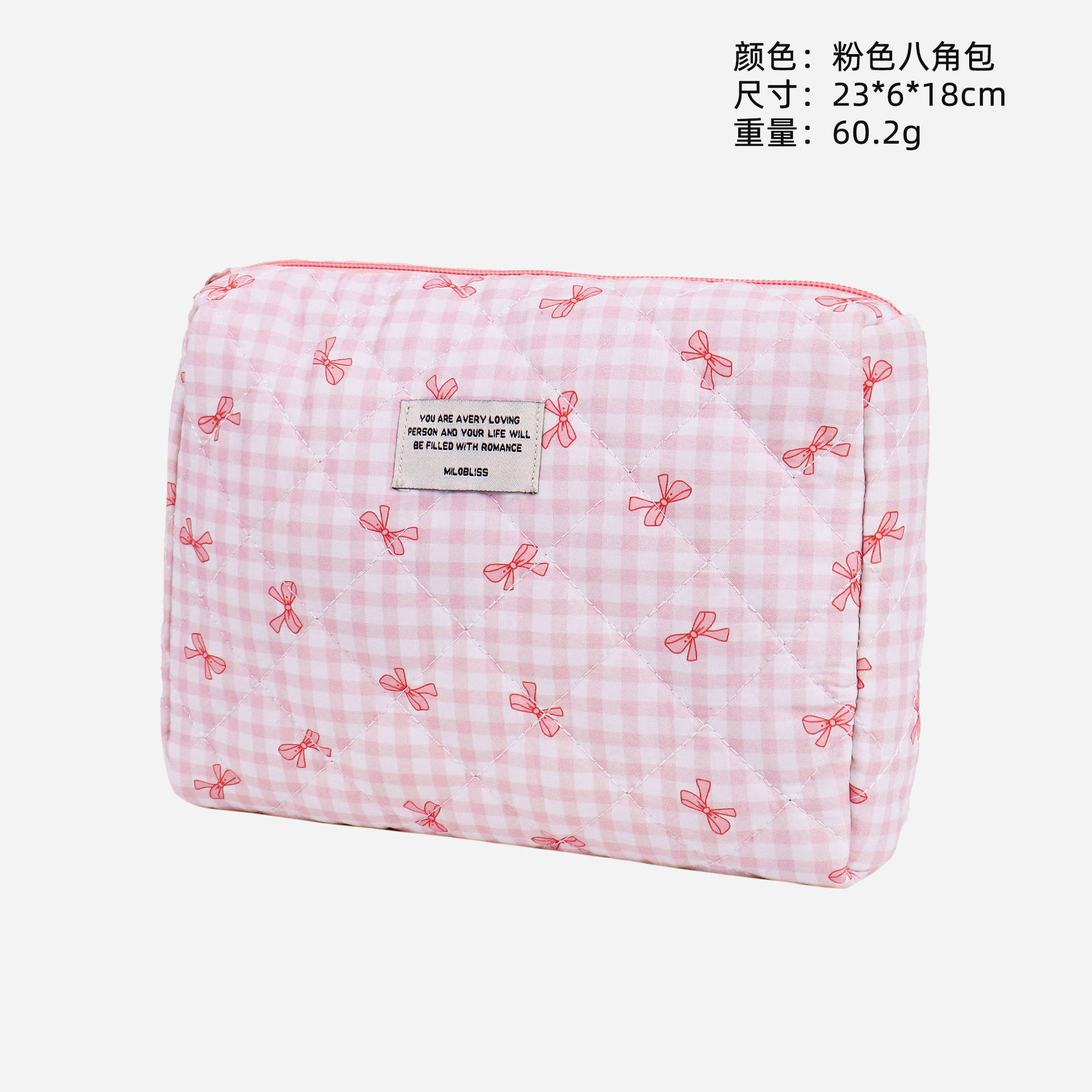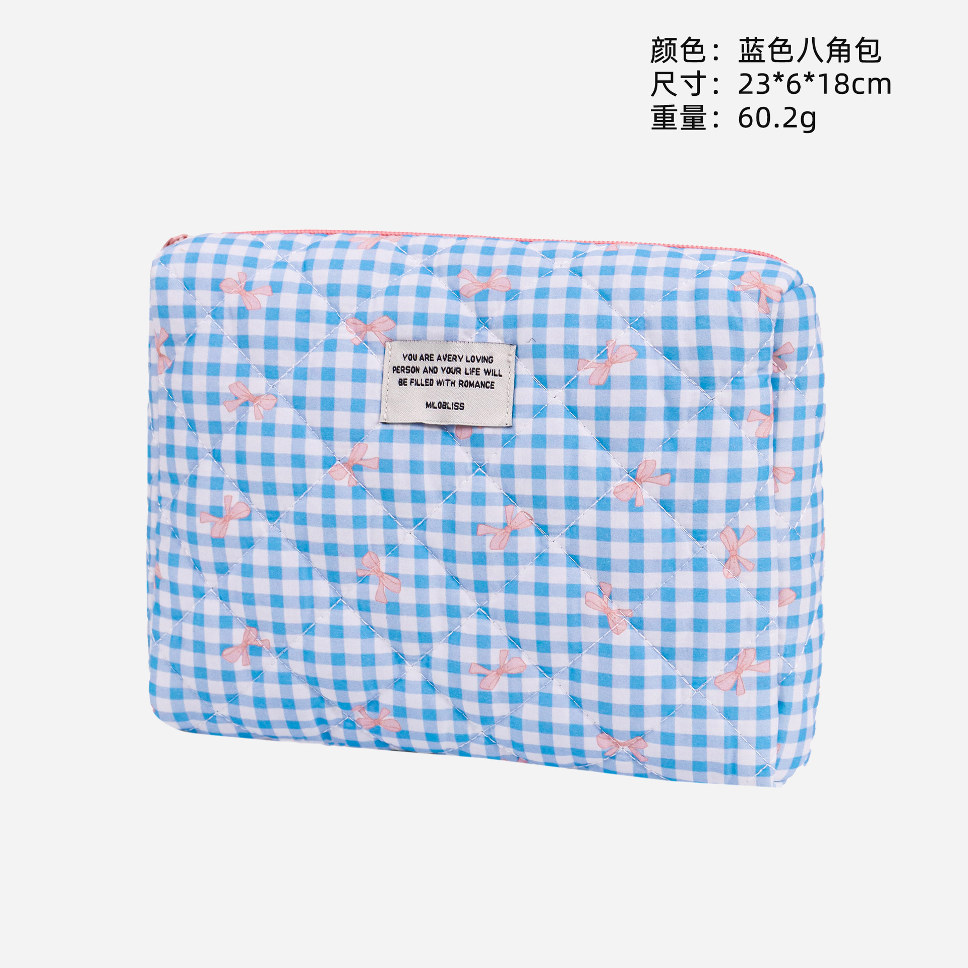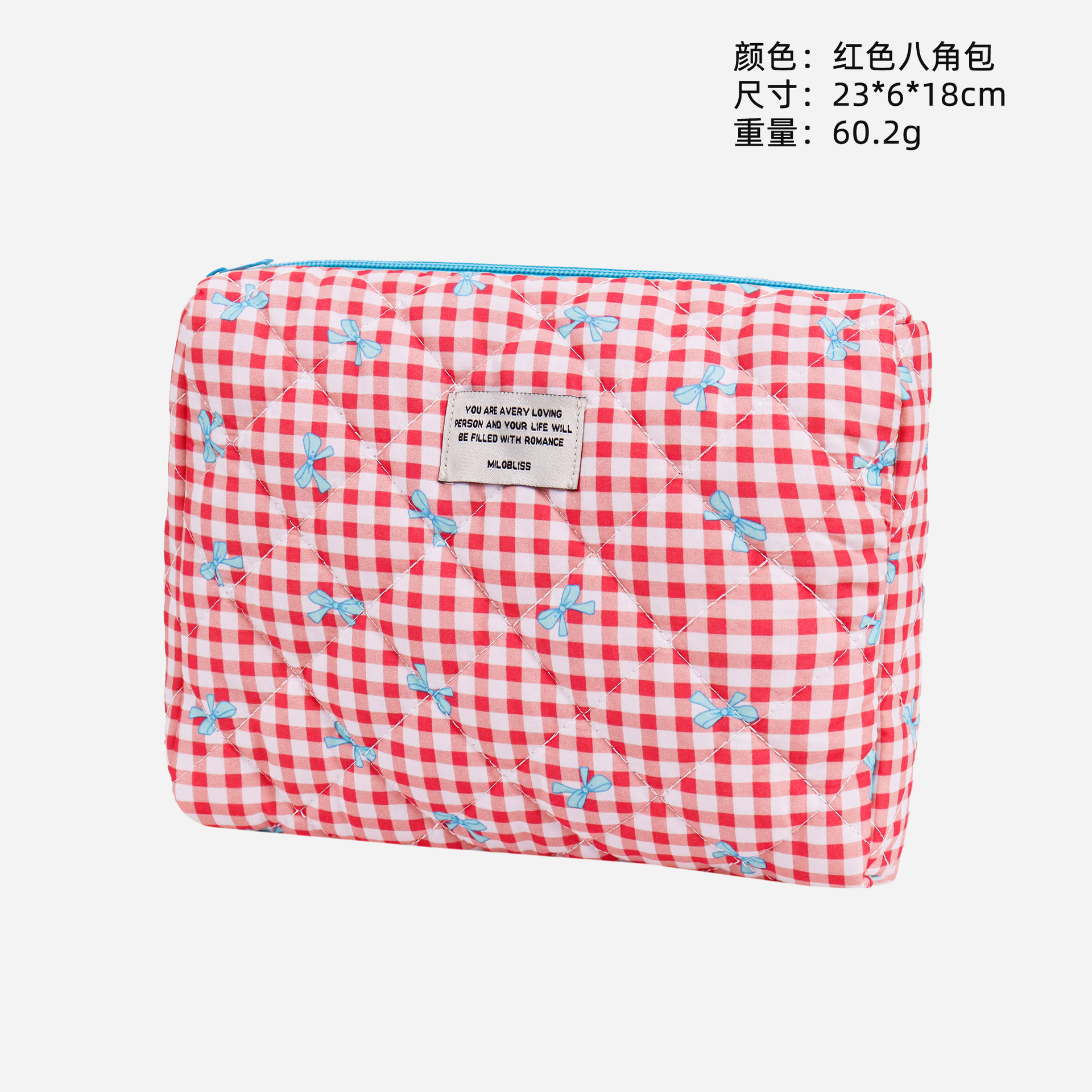 Hot-Selling Plaid Bow Cute Cosmetic Bag Large Capacity High-End Storage Bag Girls Toiletry Bag Pencil Case