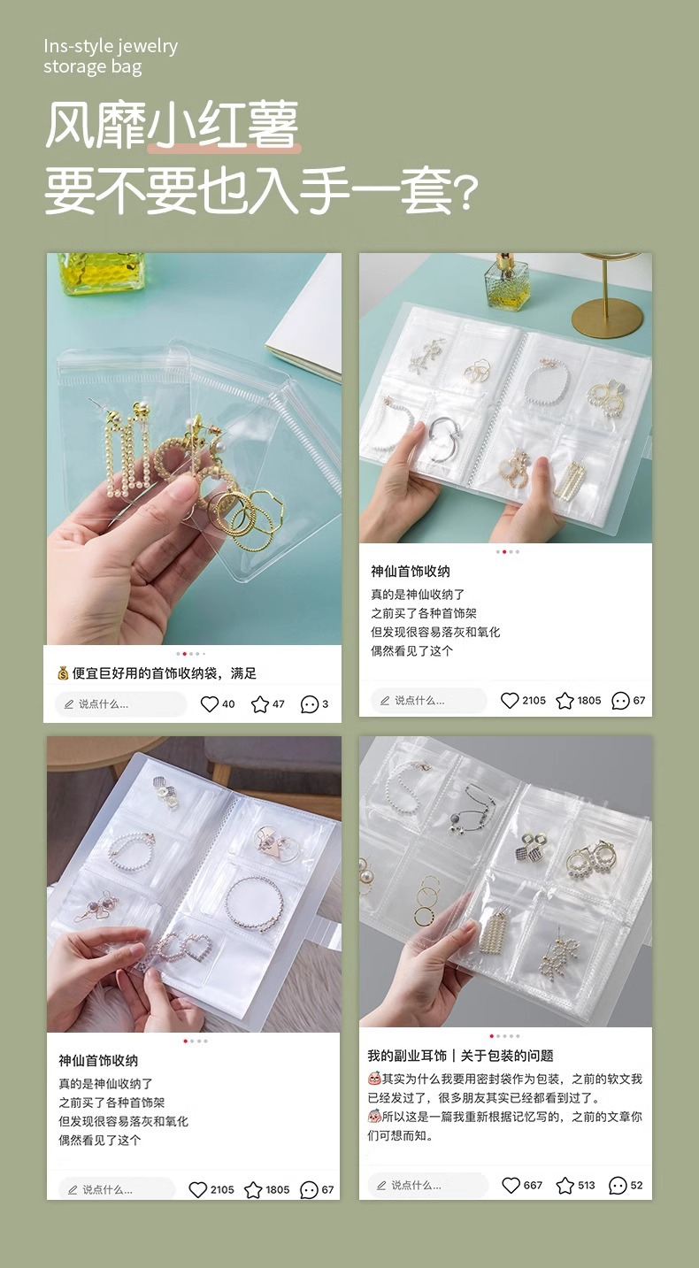 Anti-oxidation Jewelry Bag Earrings Necklace Jewelry Storage Book Sealed Transparent PVC Self-sealing Bag Portable Jewelry Bracelet