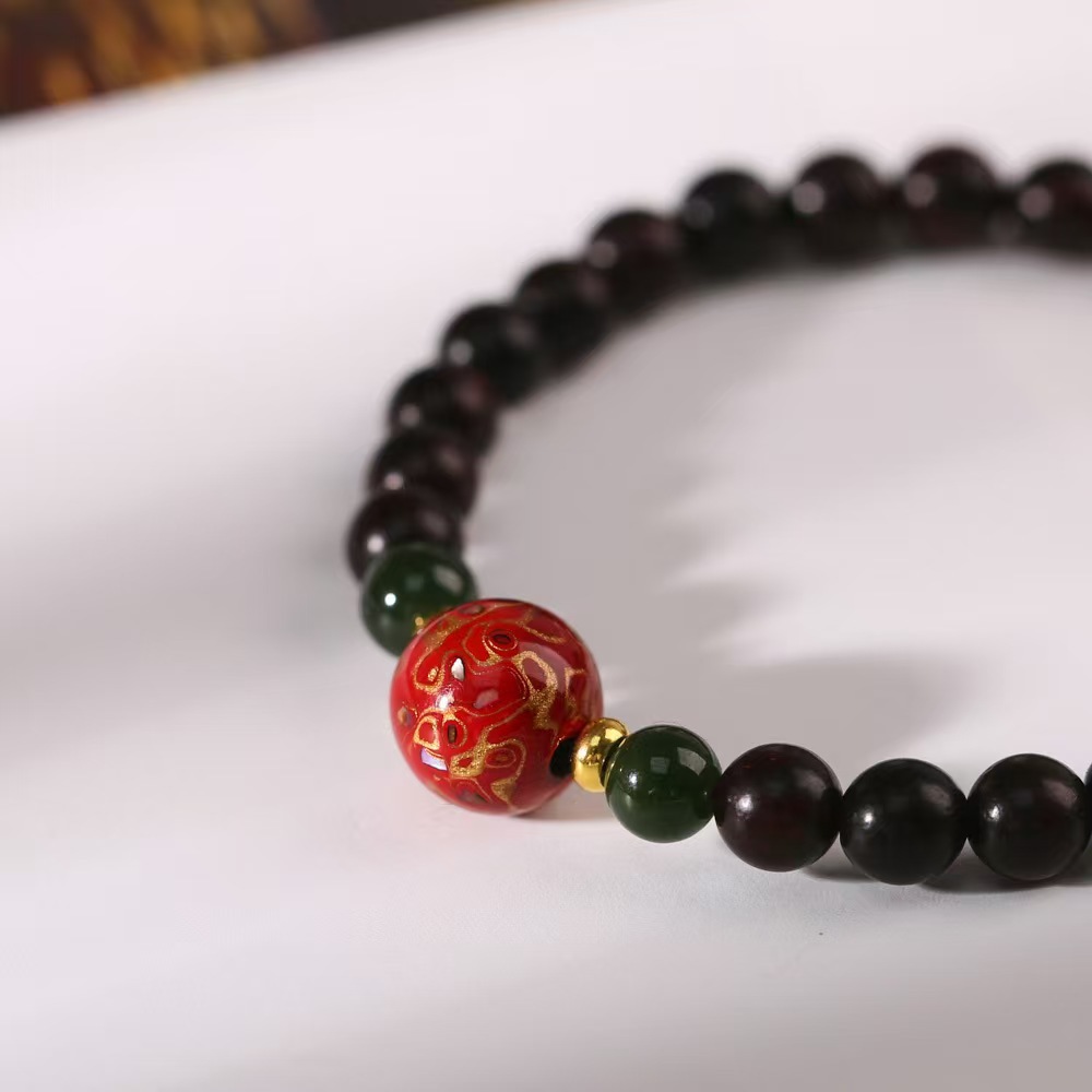 Color: Small leaf rosewood good luck bracelet-black gold