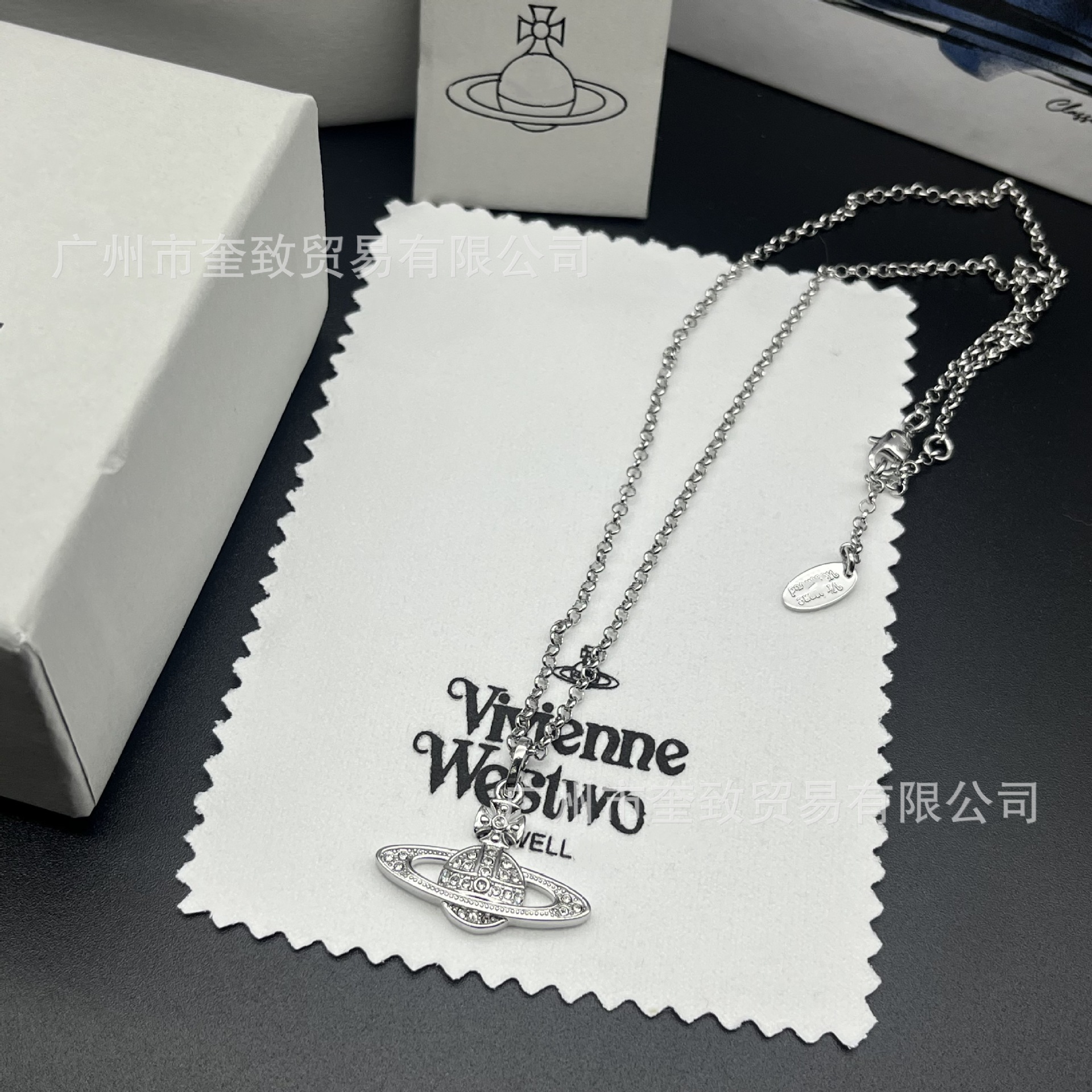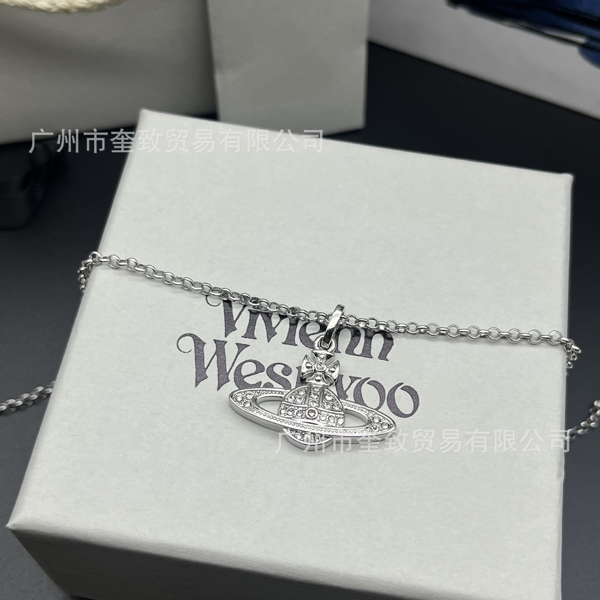Real Shot Xijia White Gold suit Earth Planet Necklace Women's Inlaid Full Diamond All-match Bracelet Simple Style Track Earrings