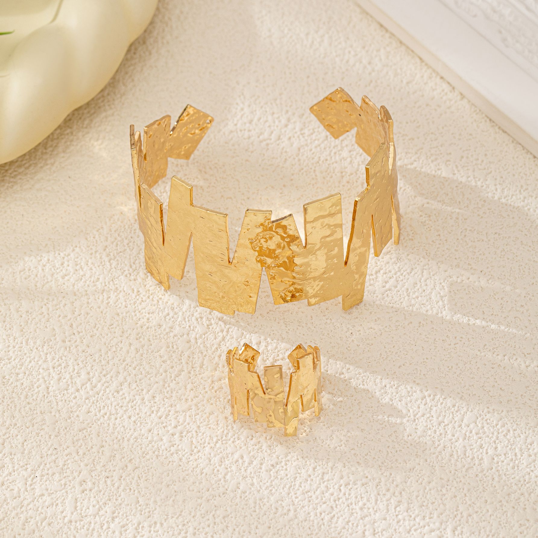 Europe and the United States cross-border two-piece simple style retro fashion irregular and geometric bracelet ring suit opening adjustable