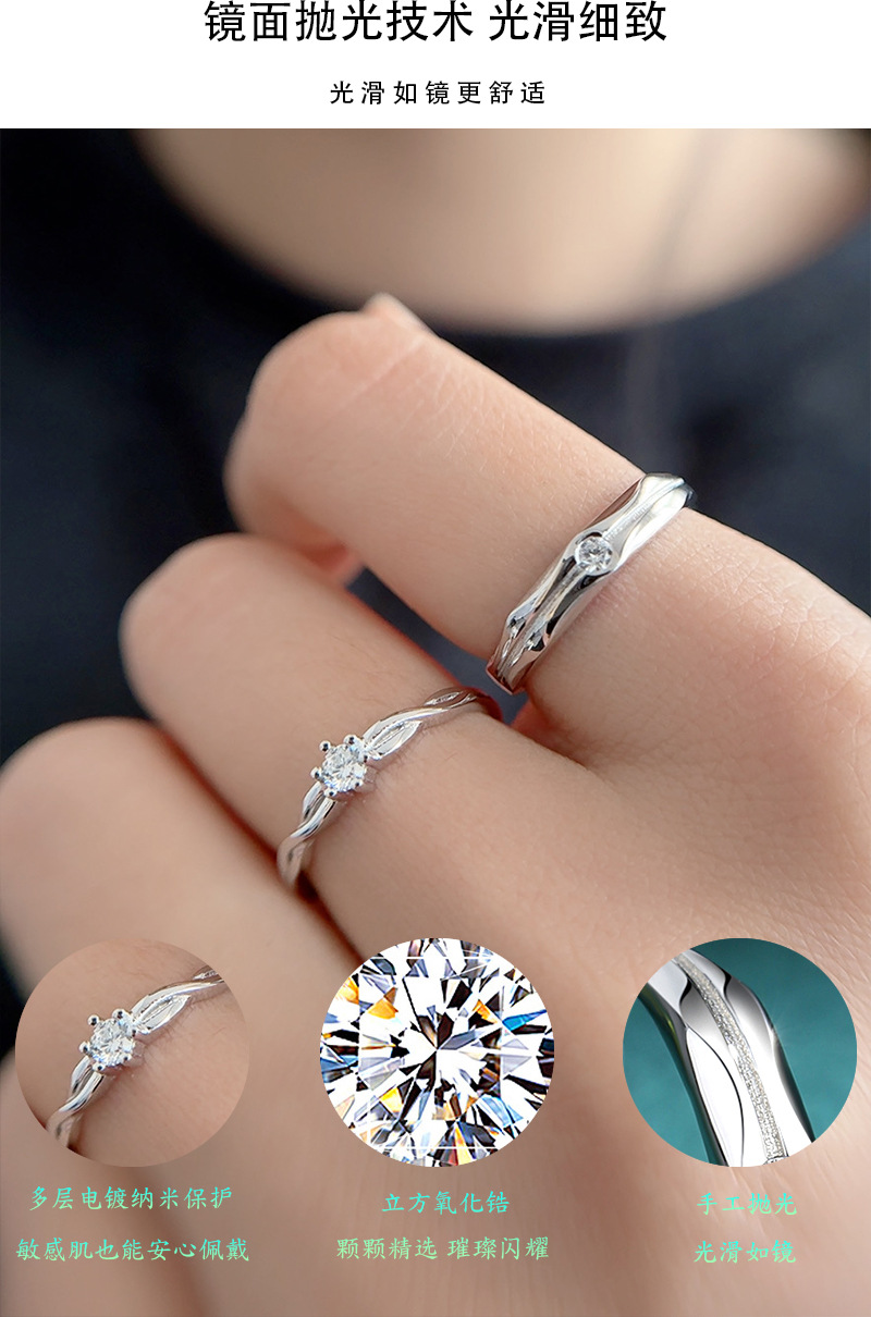 Affectionate Couple Ring Women's Light Luxury S925 Sterling Silver Proposal Engagement Ring Opening Ring for Girlfriend Gift