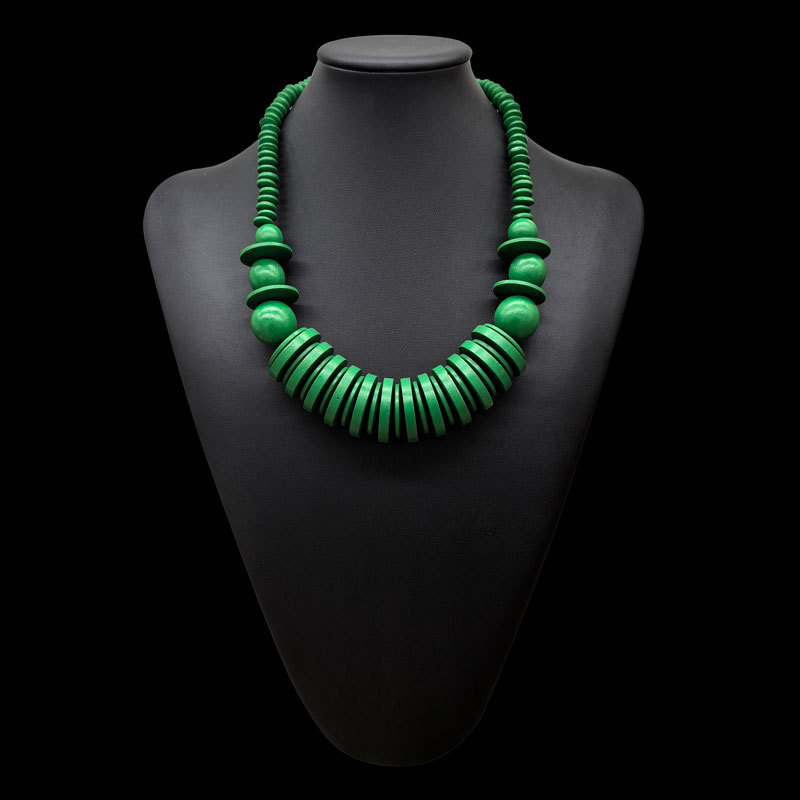 Vintage Single Layer Wood Bead Ball Chain Bohemian African Multicolor Necklace necklace women wood