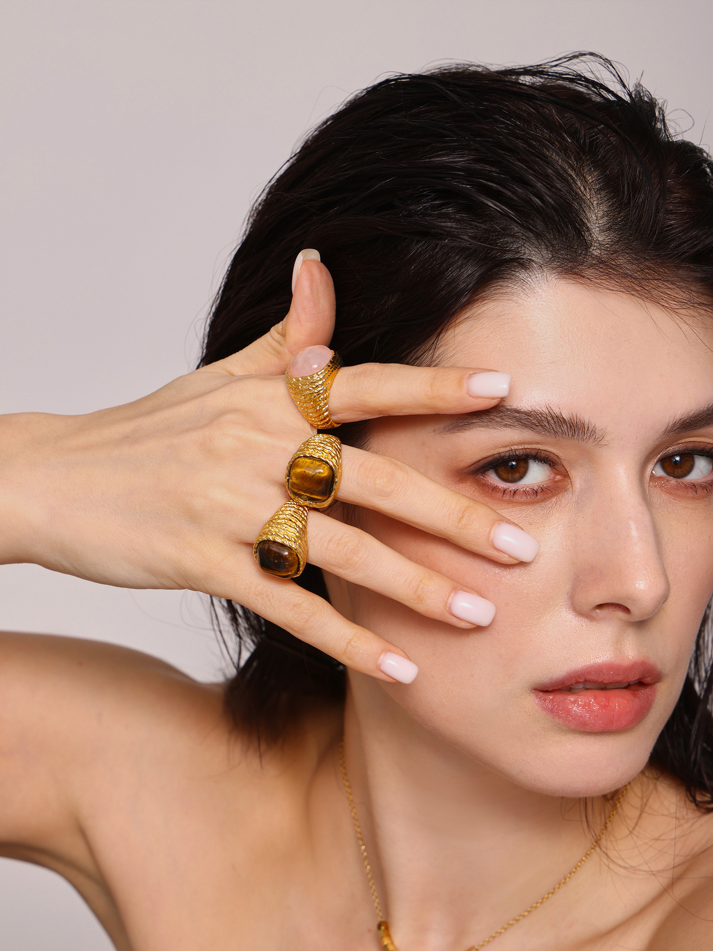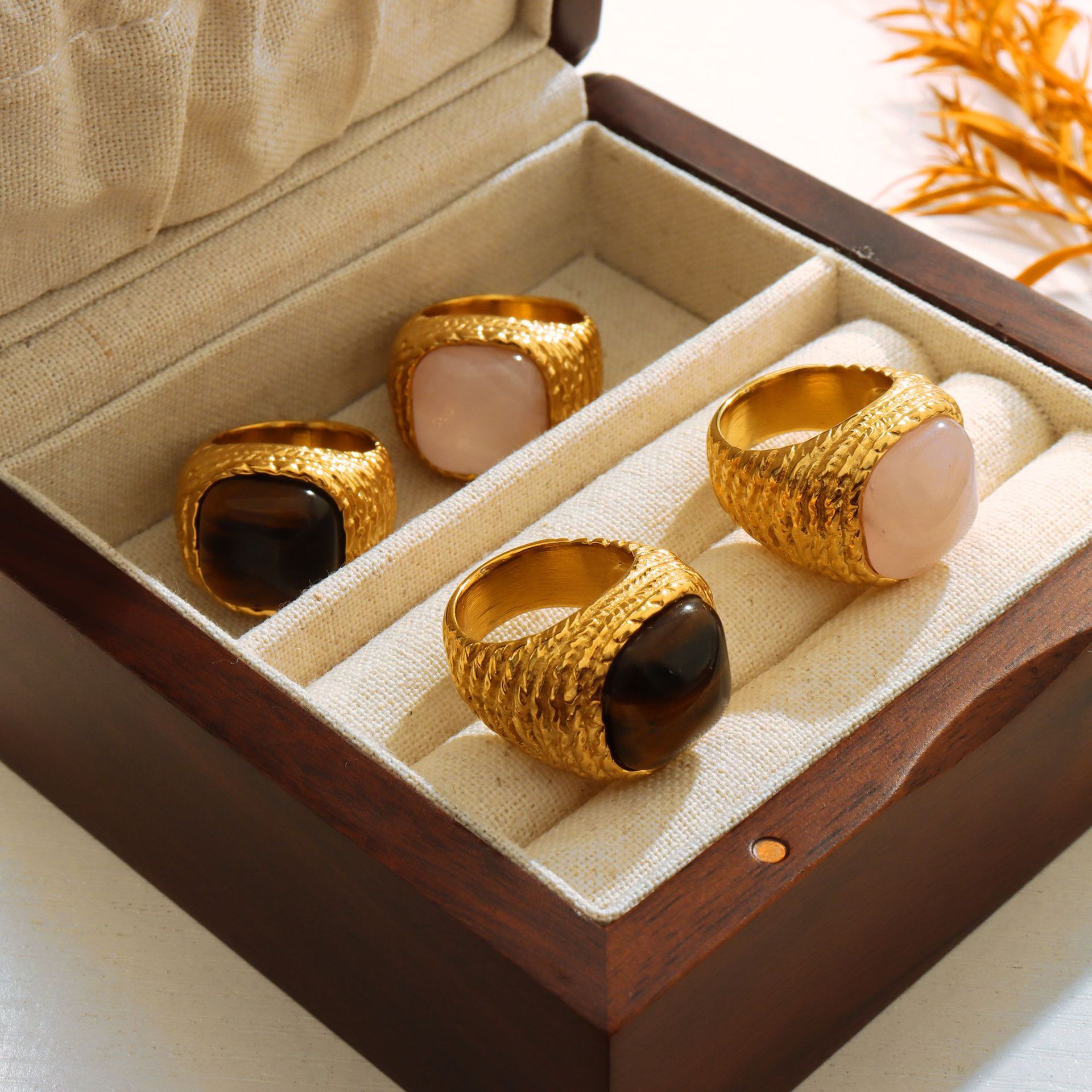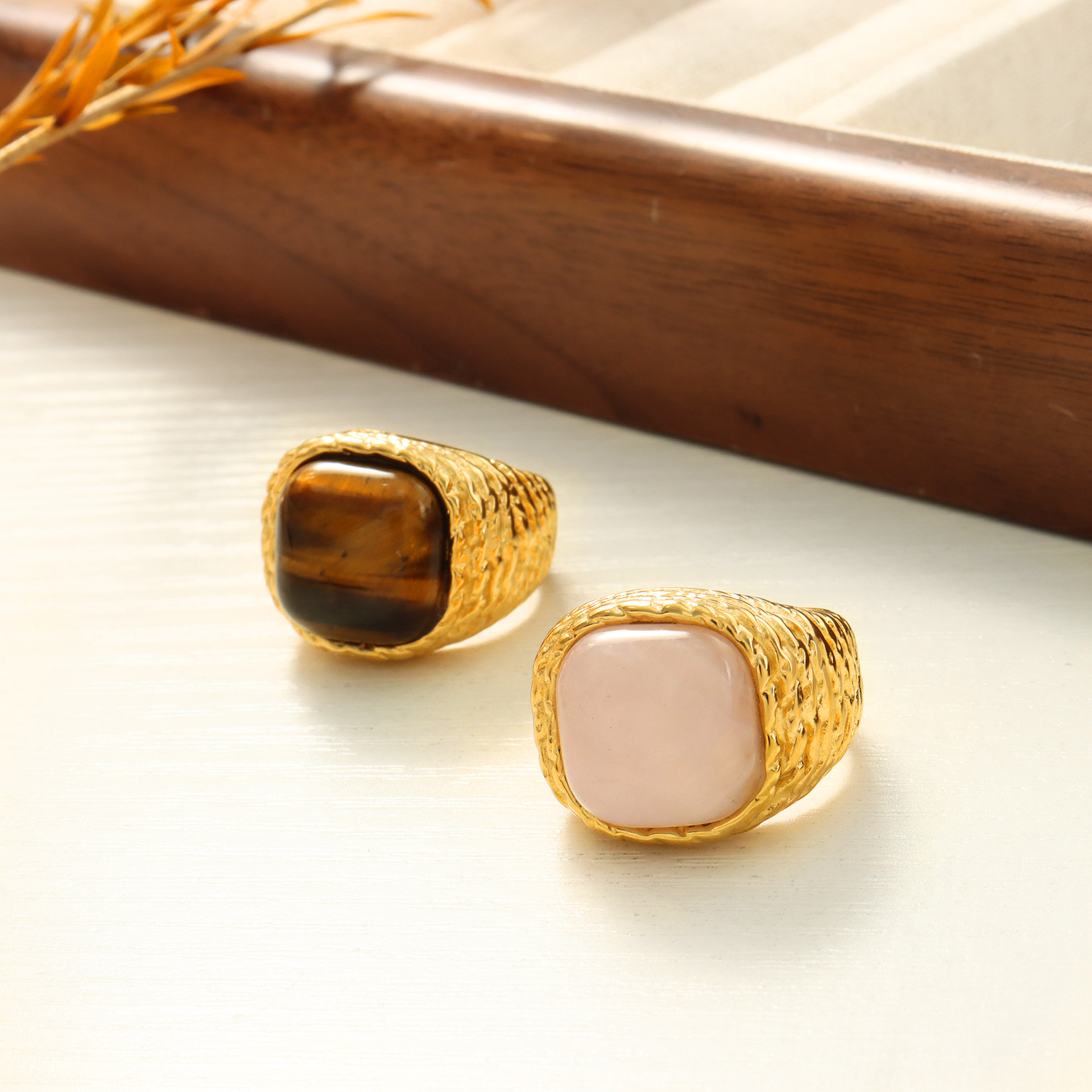 Ferris wheel Maillard tiger eye stone ring medieval precision stainless steel 18K real gold show jewelry wholesale