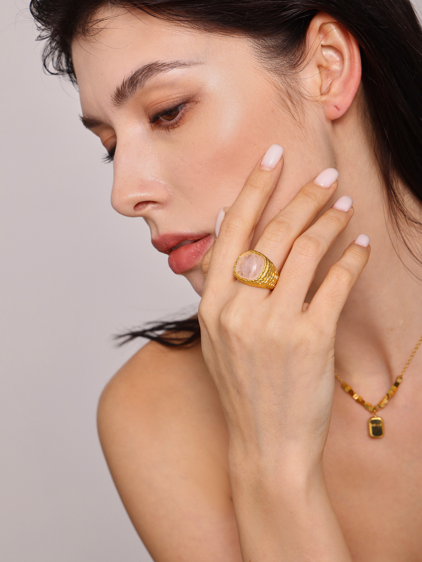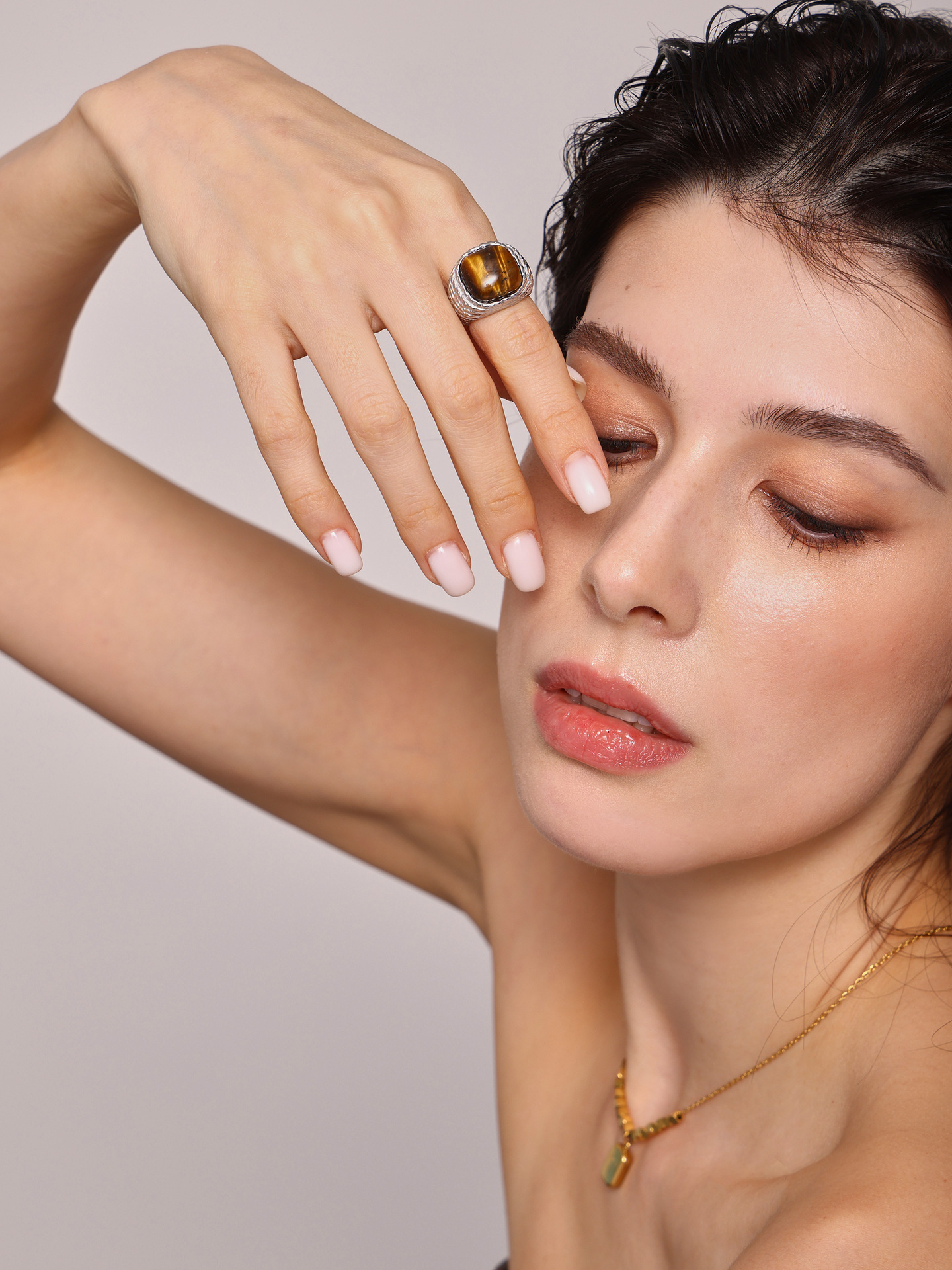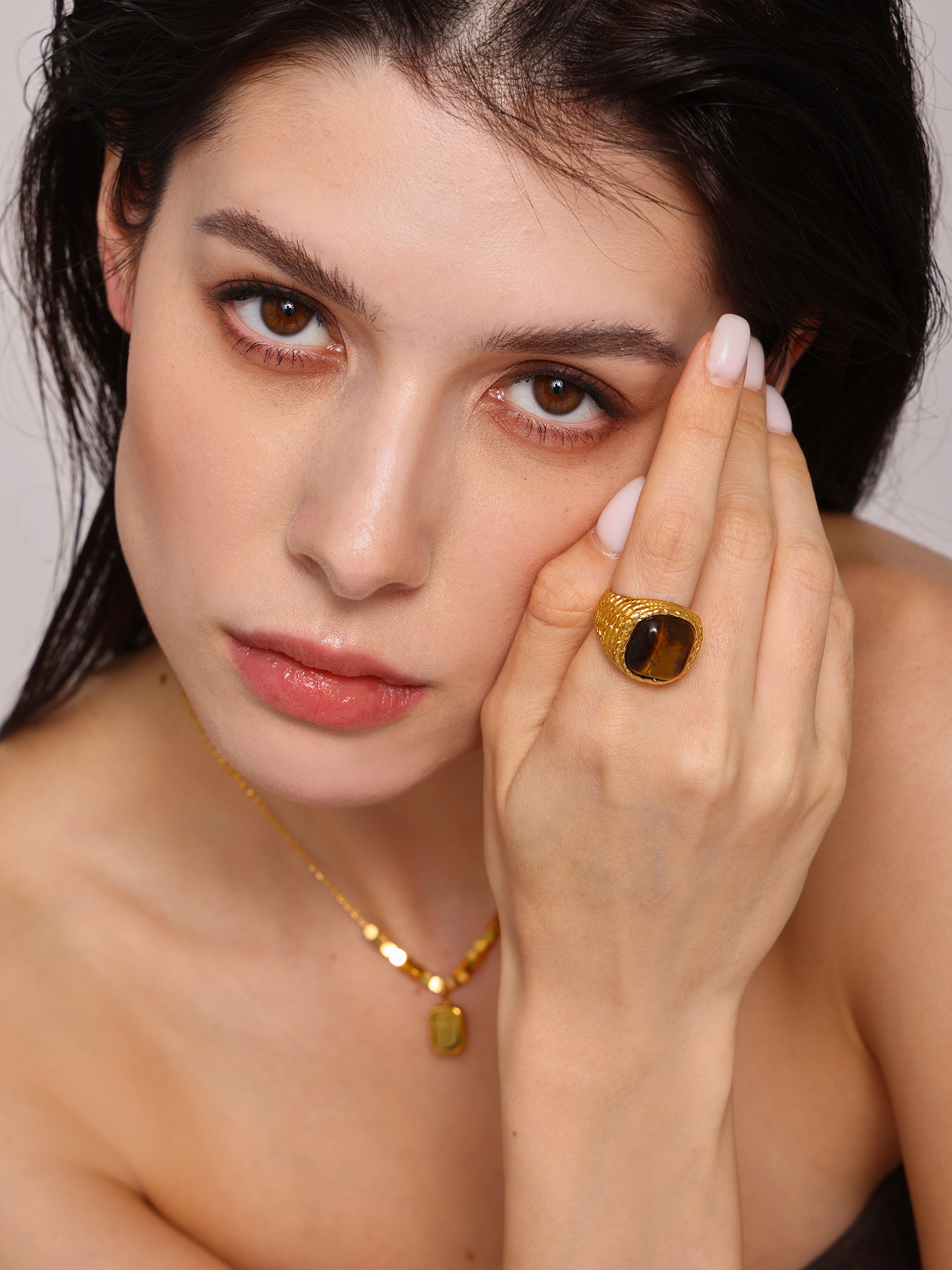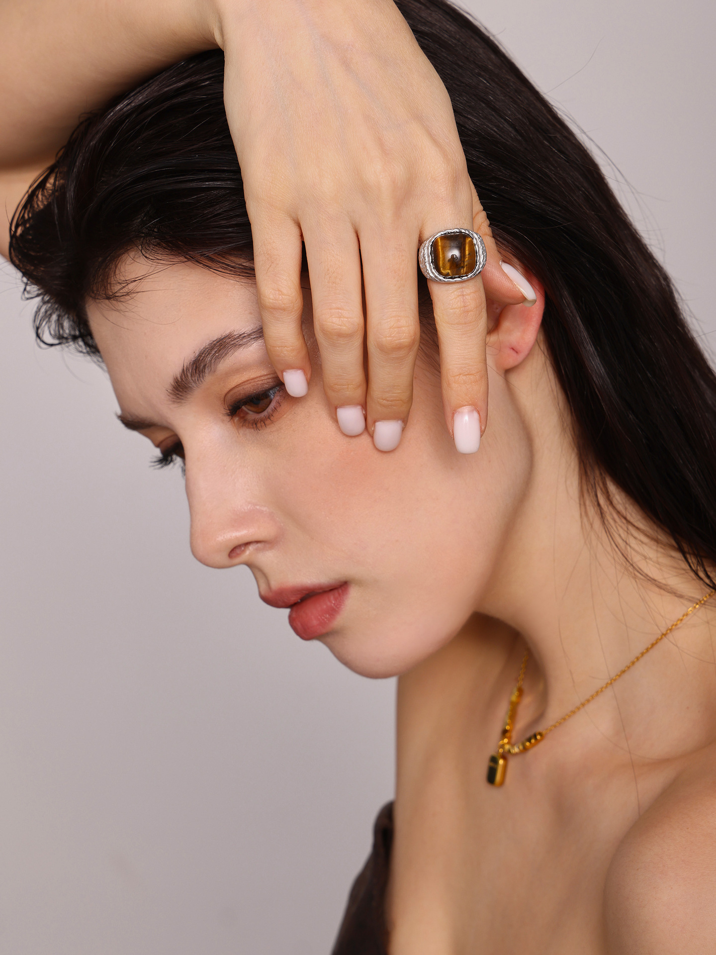 Ferris wheel Maillard tiger eye stone ring medieval precision stainless steel 18K real gold show jewelry wholesale