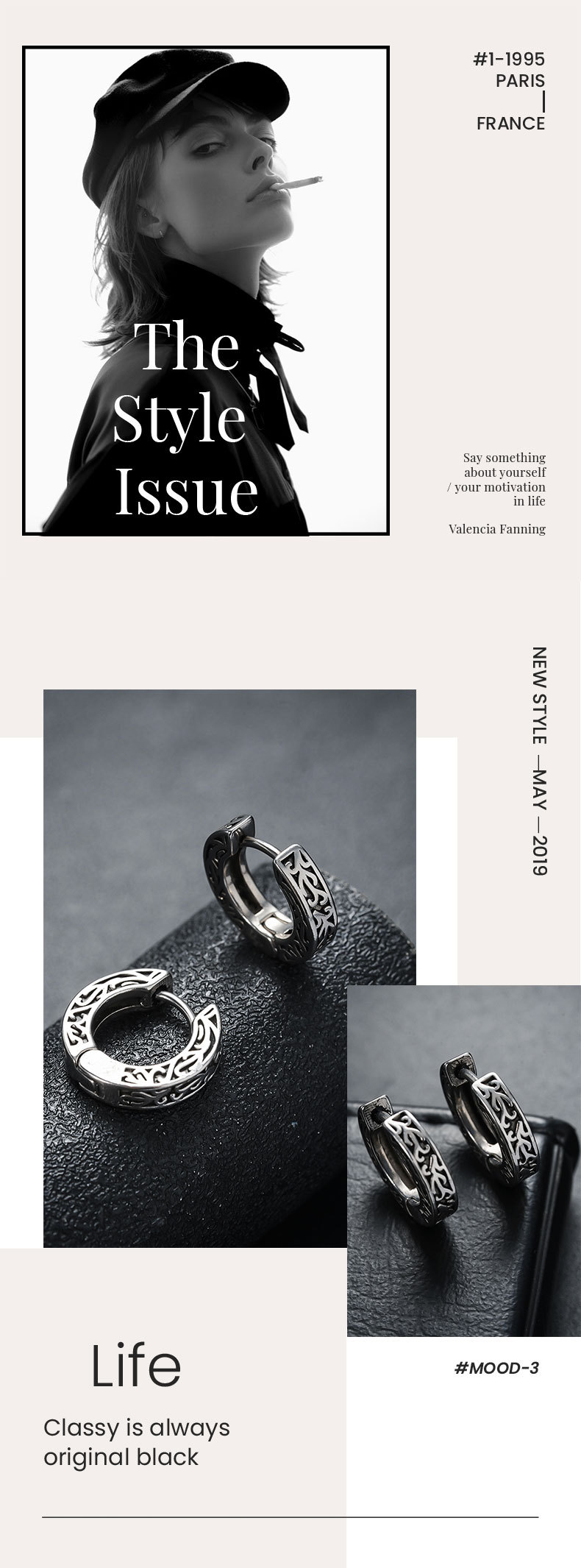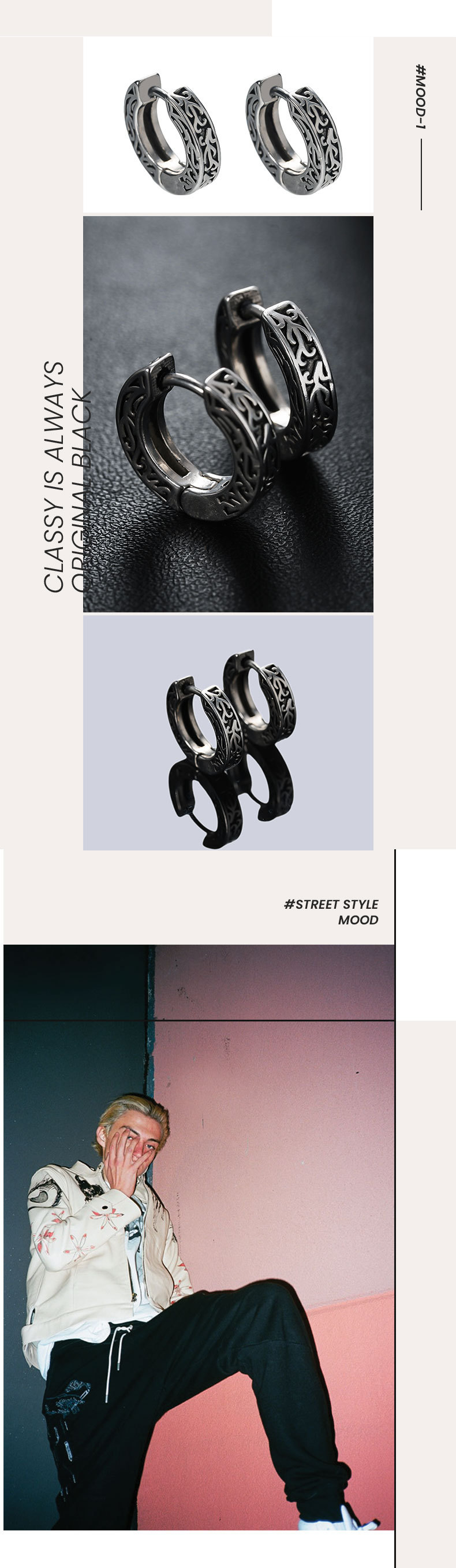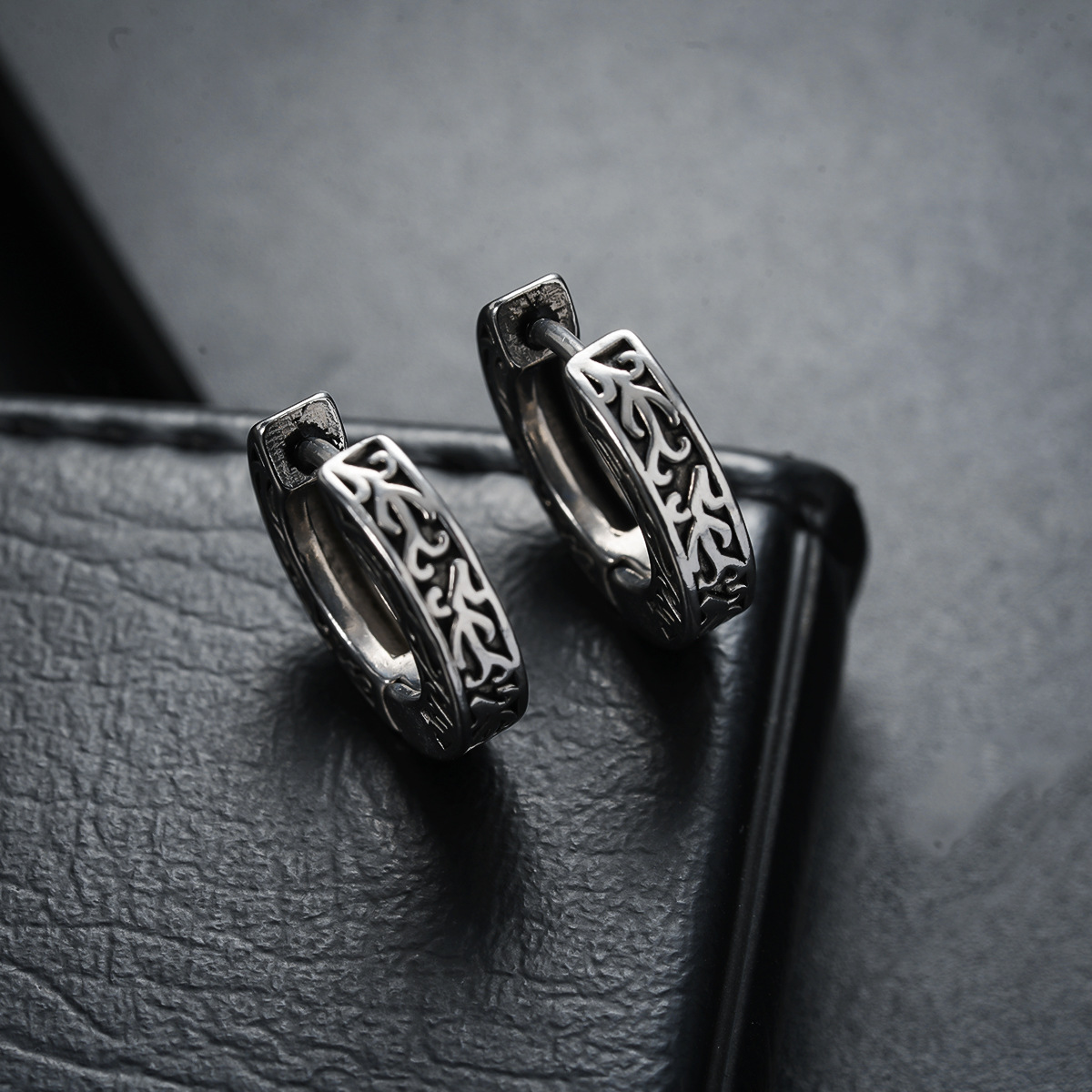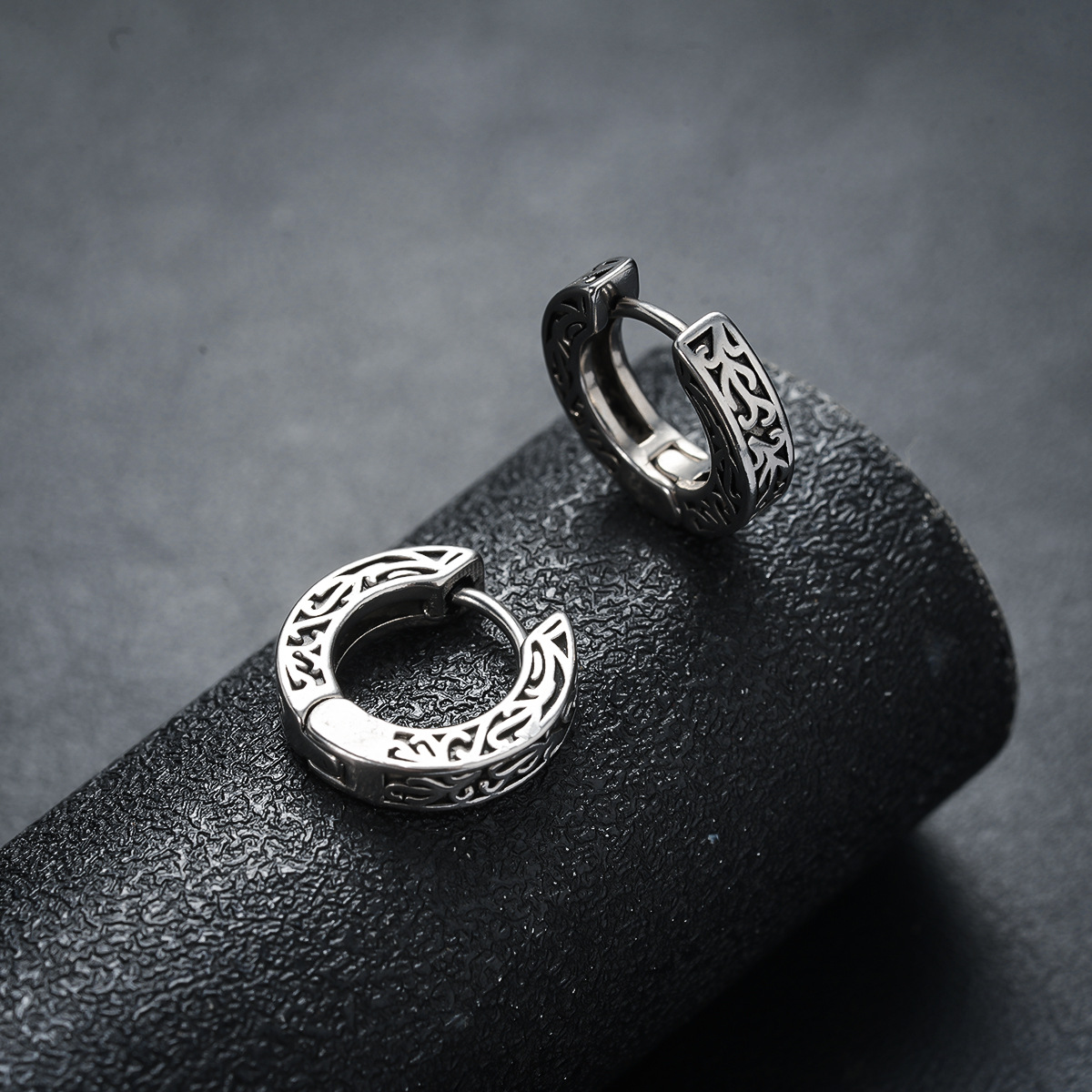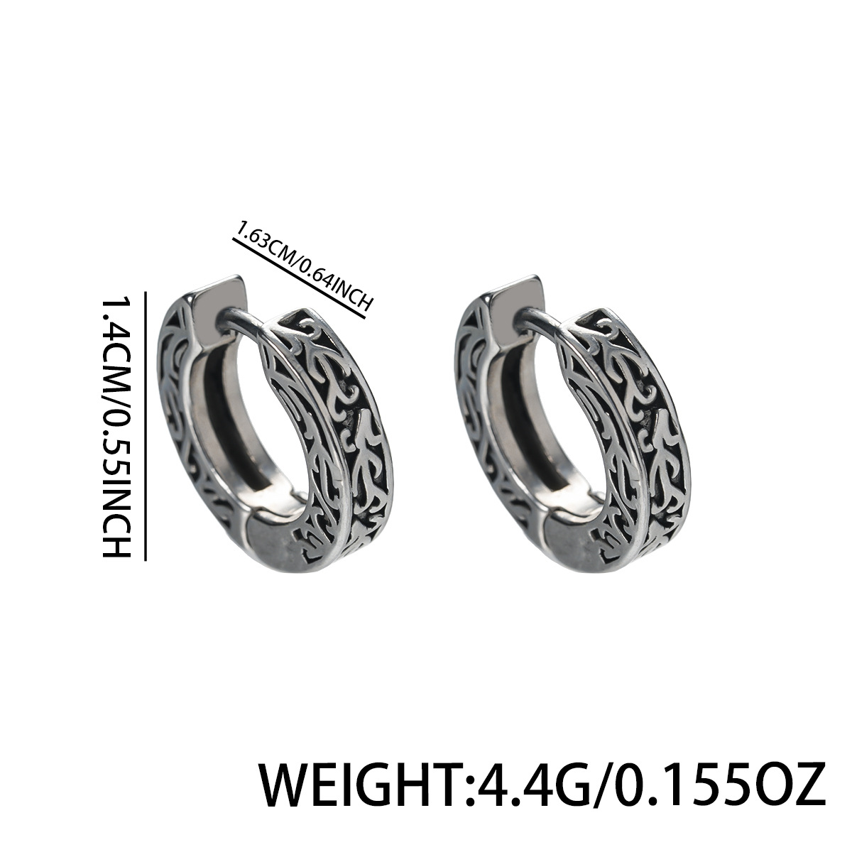 Vintage Pattern Earrings Men's Titanium Steel Ethnic Style Ear Stud Fashion High-end Ear Accessories Women's Trendy Design Ear Buckle