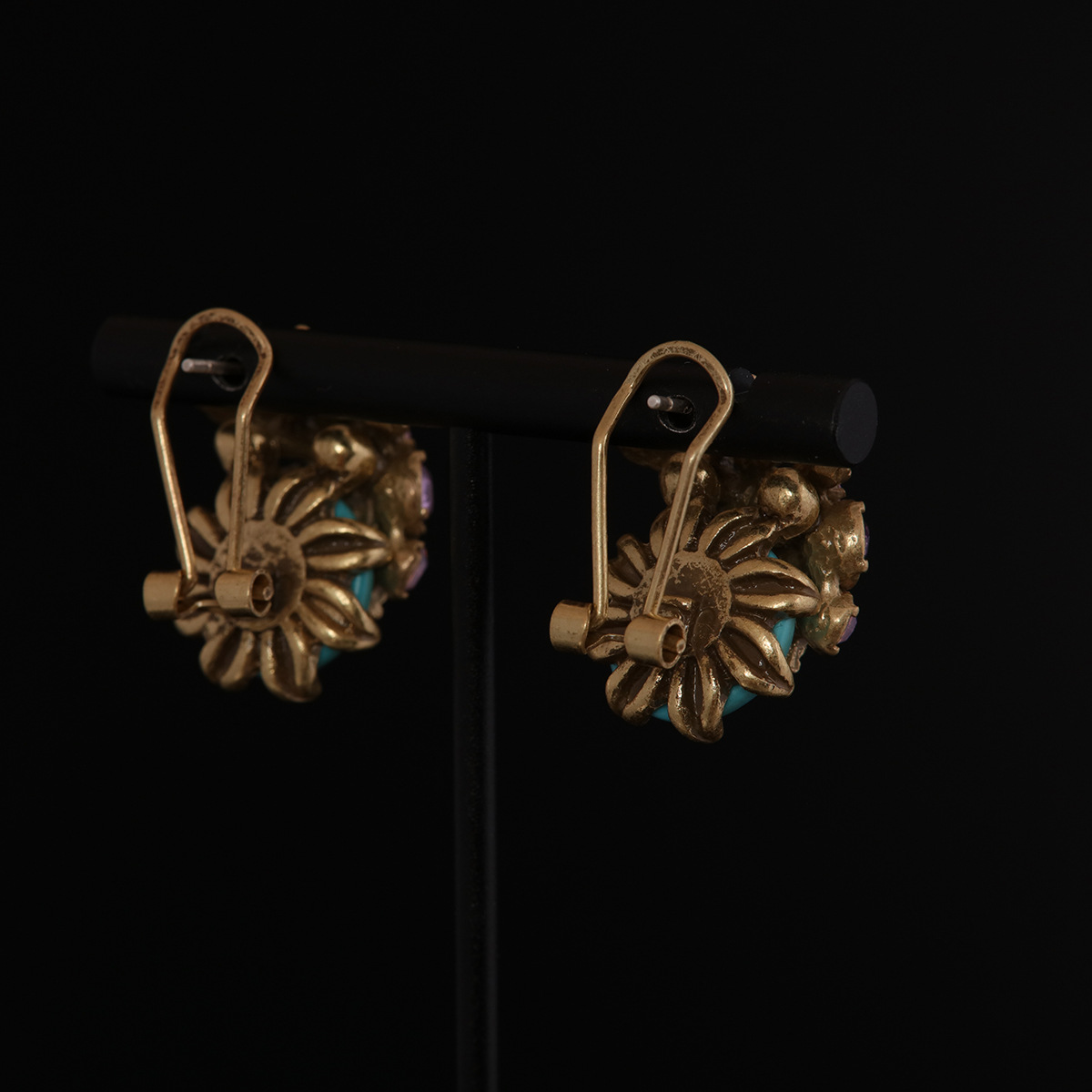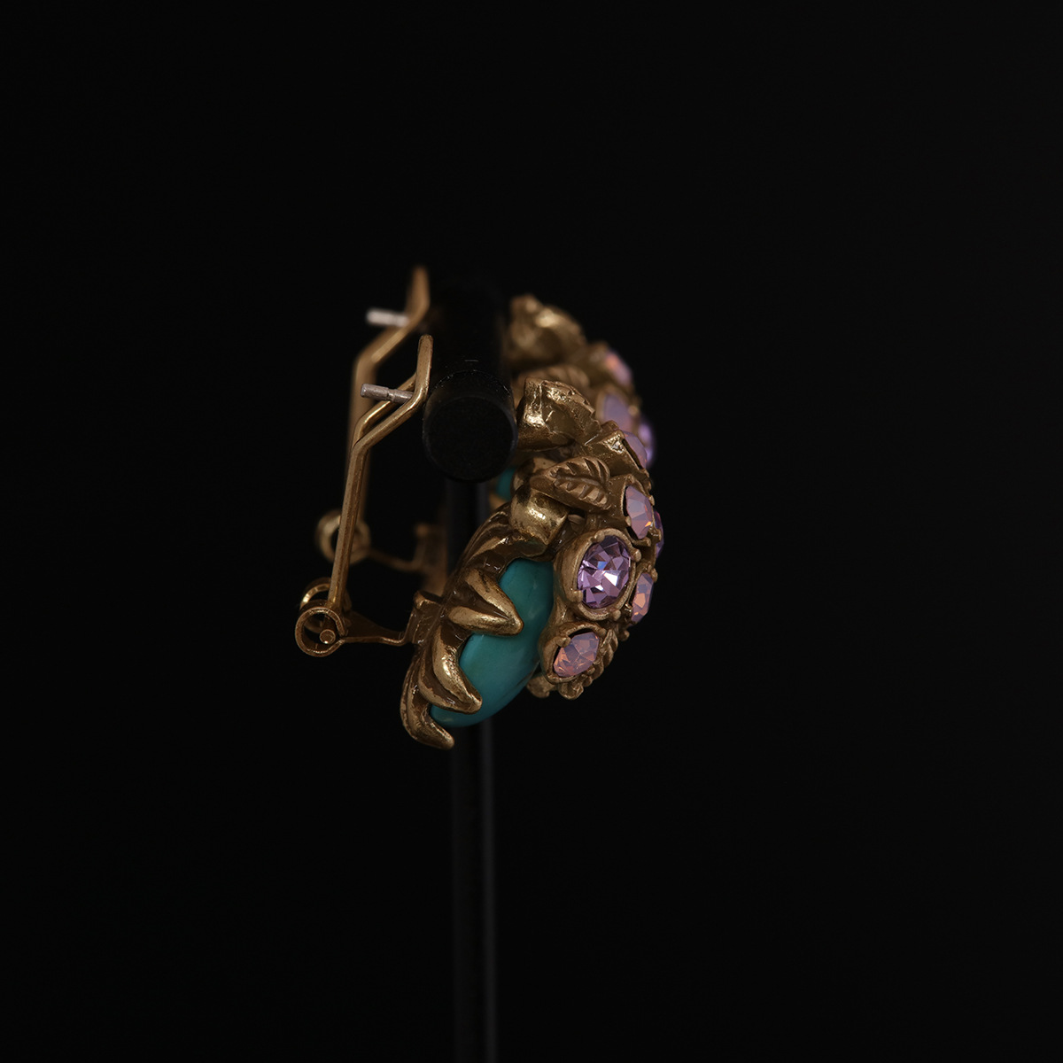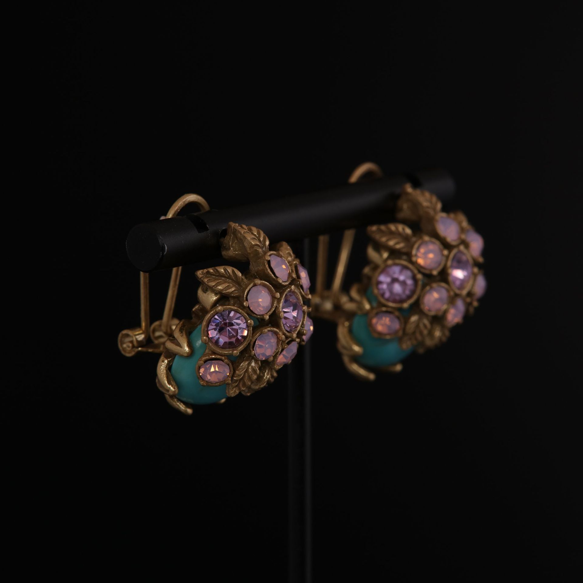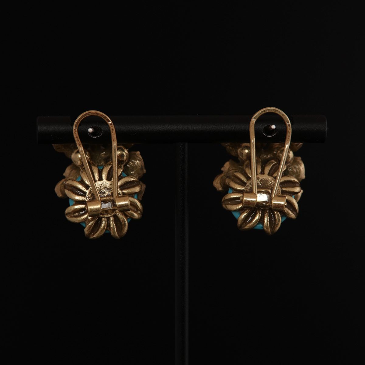 Middle Ancient vintage High-grade European and American Style Temperament Copper Plated Copper Alloy Blue Pine Flower Ball Necklace Earrings suit